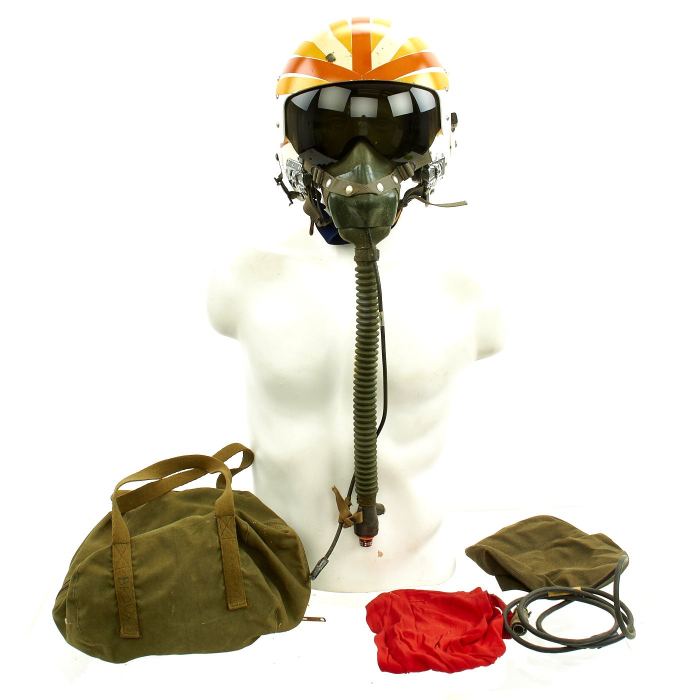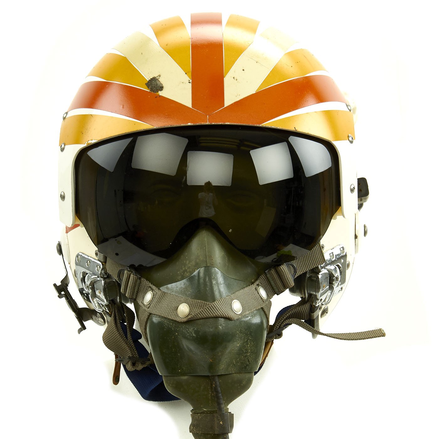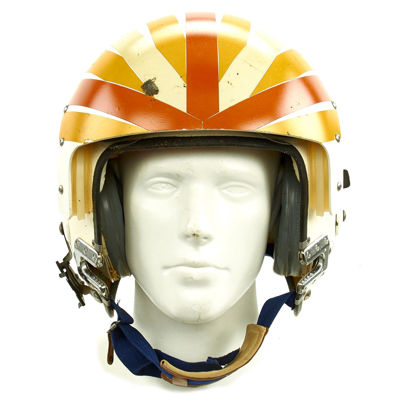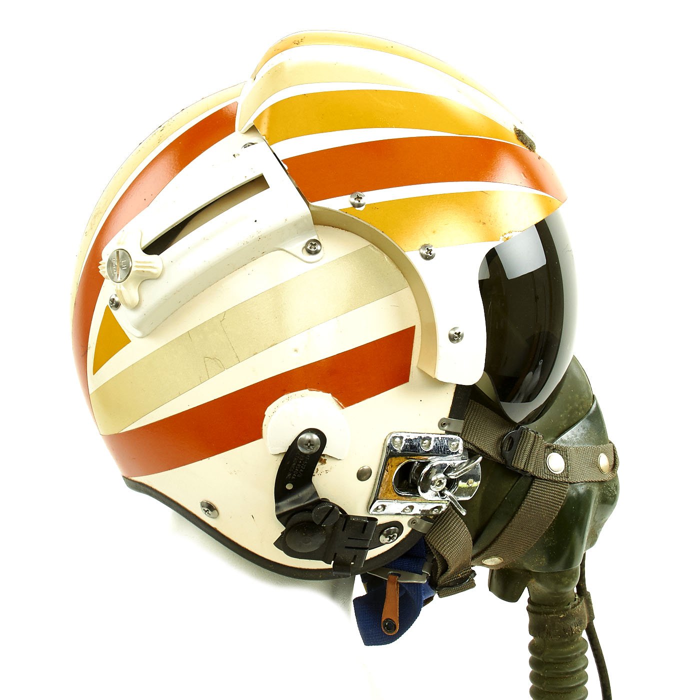 Original Item: Only One Available. At the end of the 50's the APH series helmets introduced a new generation of flight helmets characterized by the external visor covered with a protective shield. Improvement of the communication system, internal liner and oxygen mask retainers was also made and in some versions the dual dark and transparent visors system was installed. These types of helmets were the US Navy and USMC standard jet aircraft headgear during the 60's and throughout the 70's. In this period the first development of a flight helmet incorporating the Visual Target Acquisition System (VTAS I) was also made.