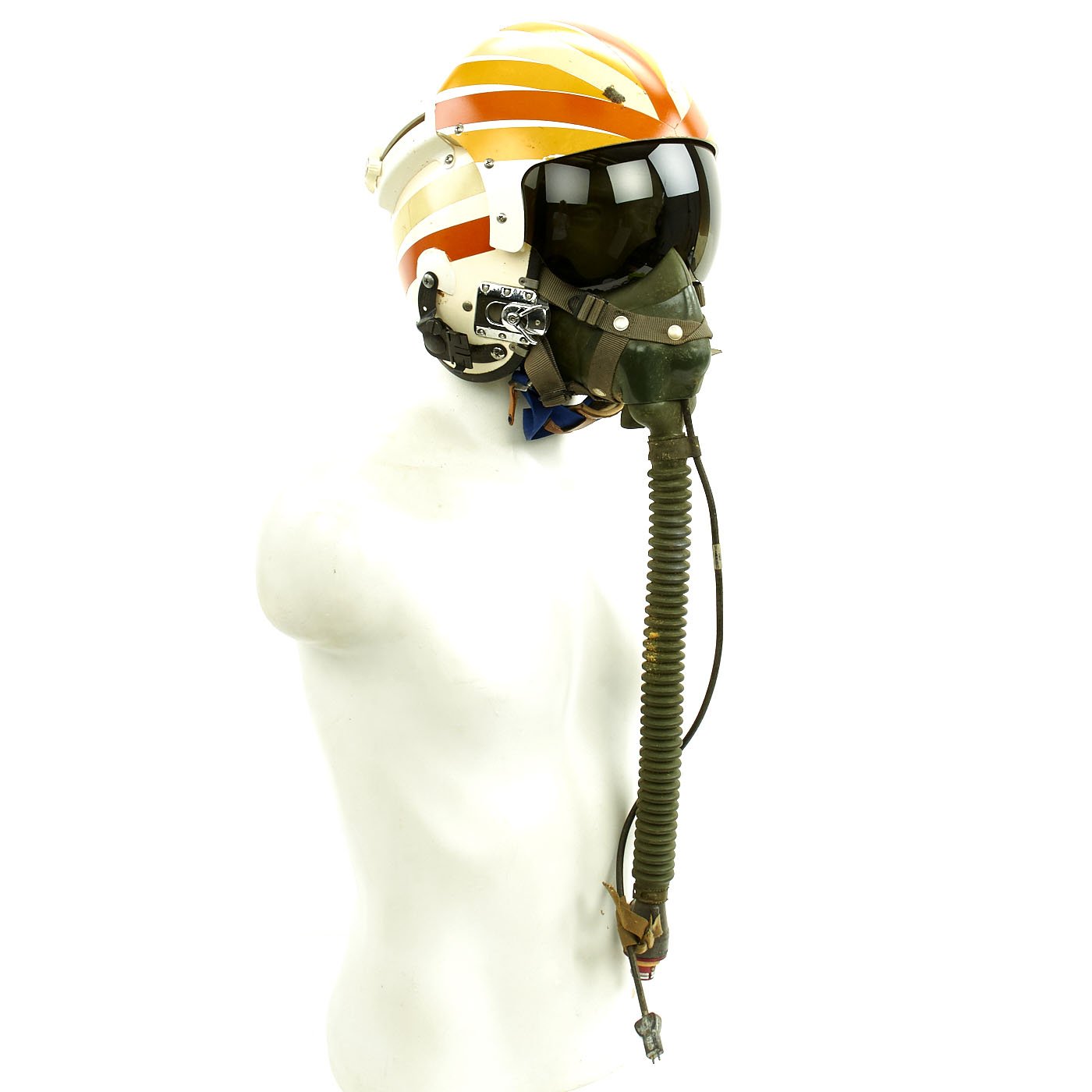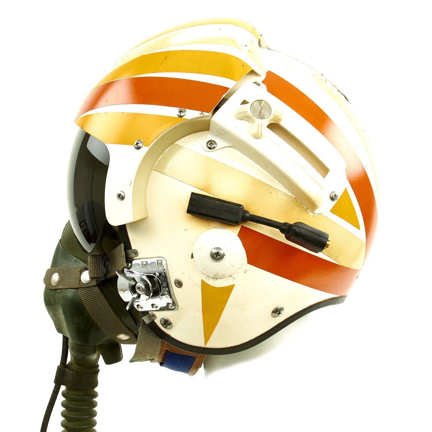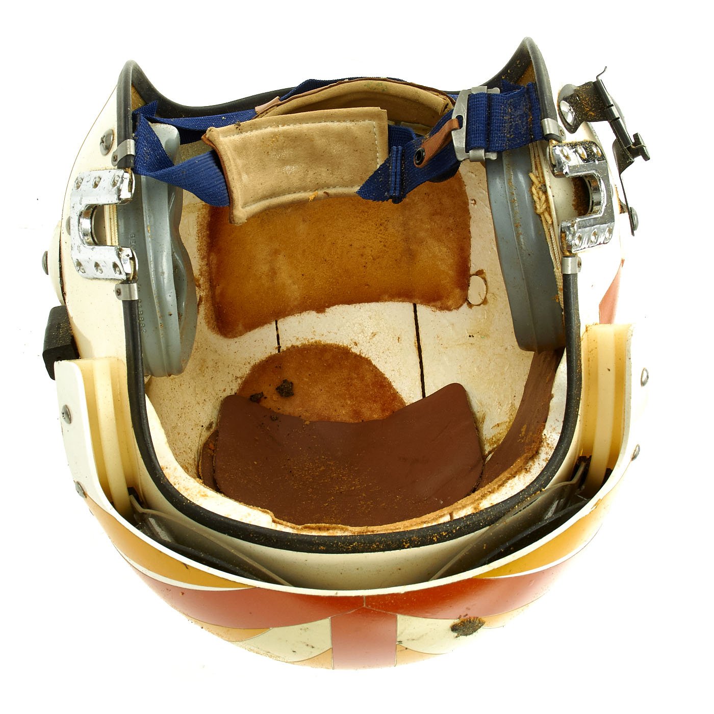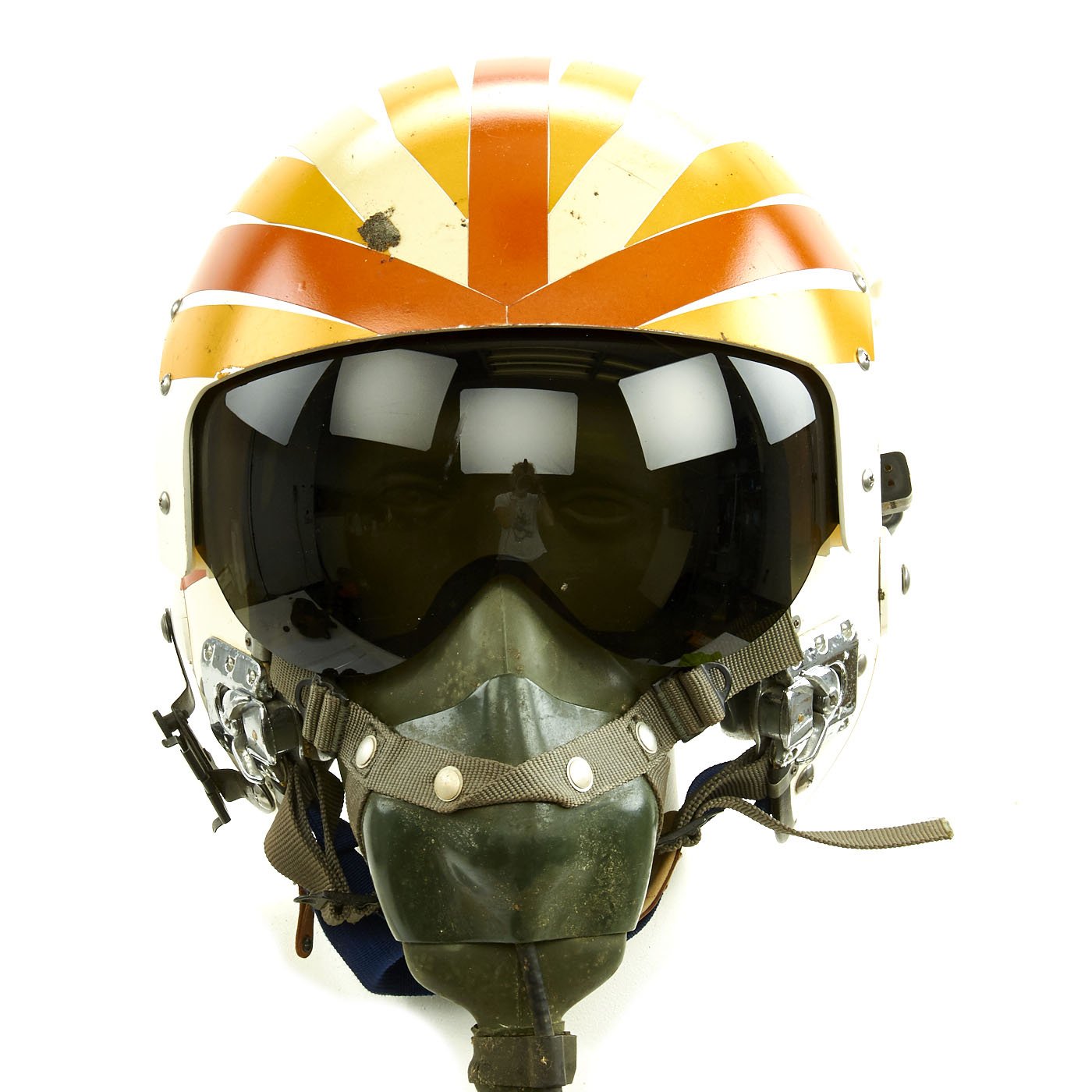 Original Item: Only One Available. At the end of the 50's the APH series helmets introduced a new generation of flight helmets characterized by the external visor covered with a protective shield. Improvement of the communication system, internal liner and oxygen mask retainers was also made and in some versions the dual dark and transparent visors system was installed. These types of helmets were the US Navy and USMC standard jet aircraft headgear during the 60's and throughout the 70's. In this period the first development of a flight helmet incorporating the Visual Target Acquisition System (VTAS I) was also made.