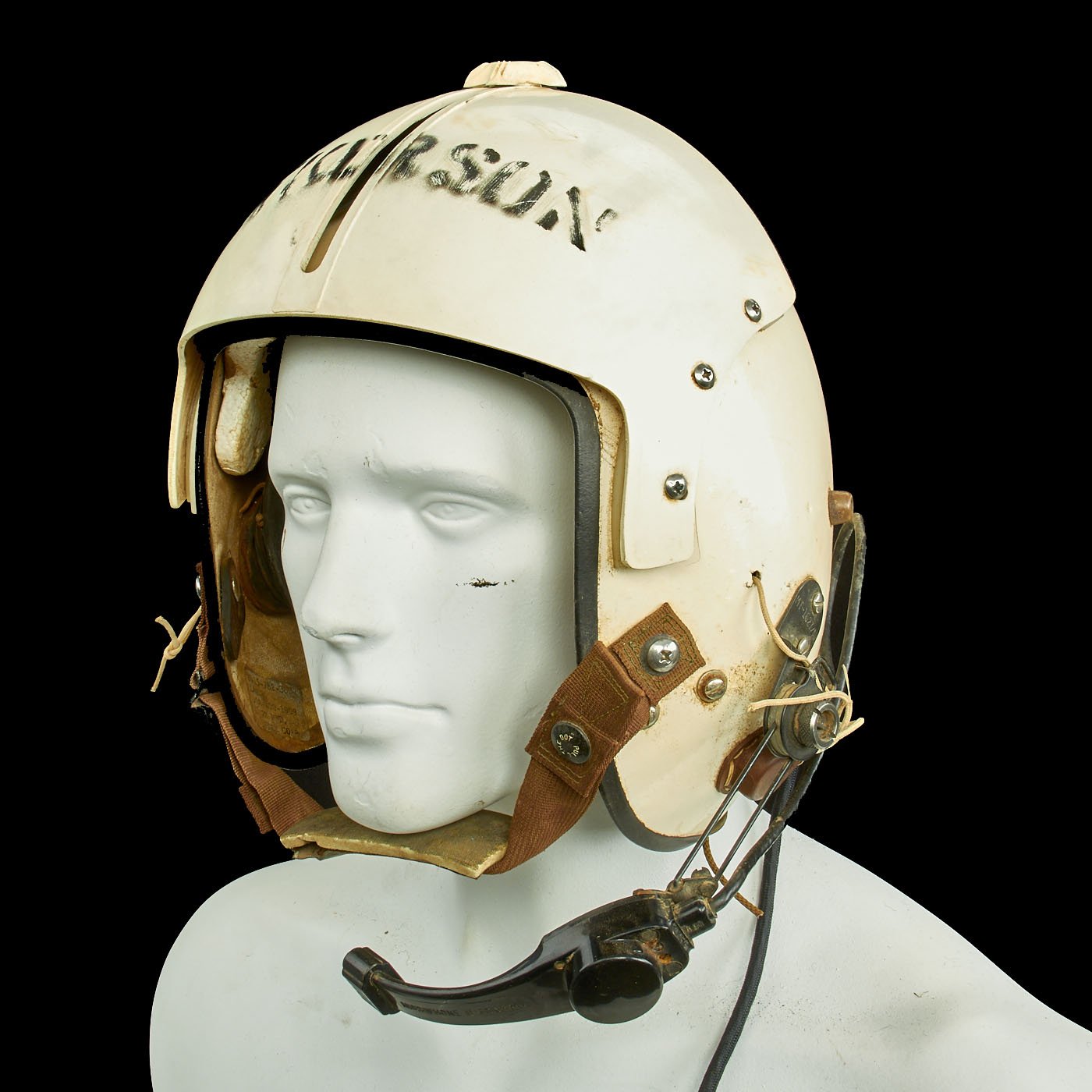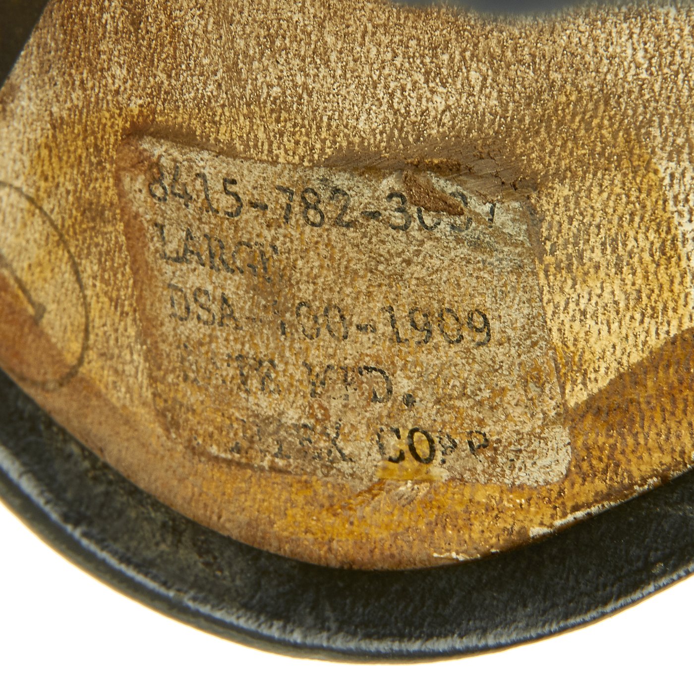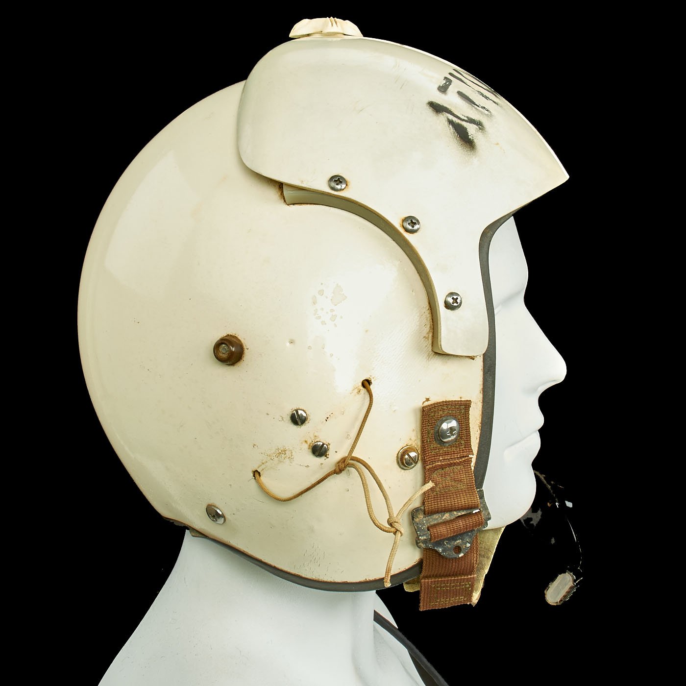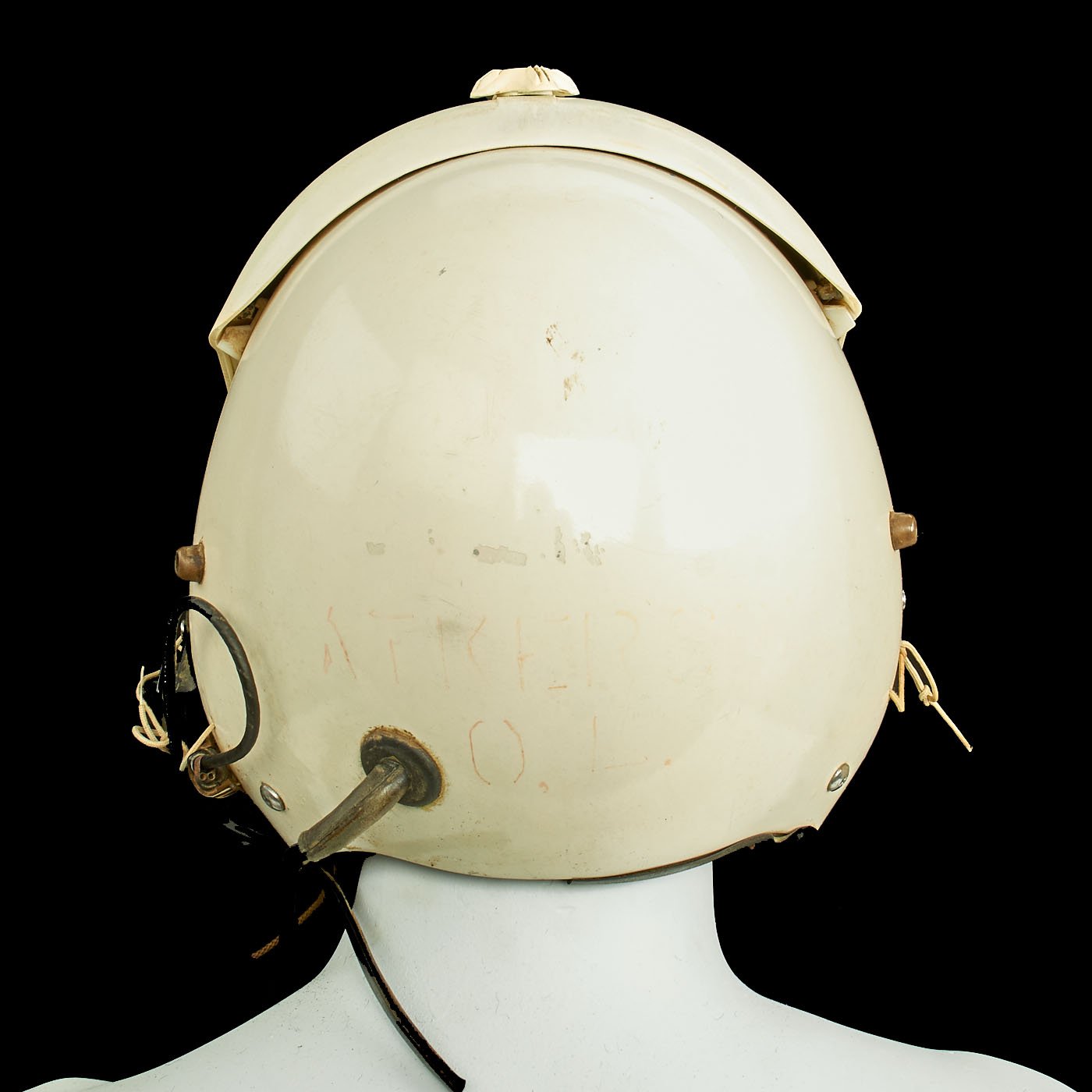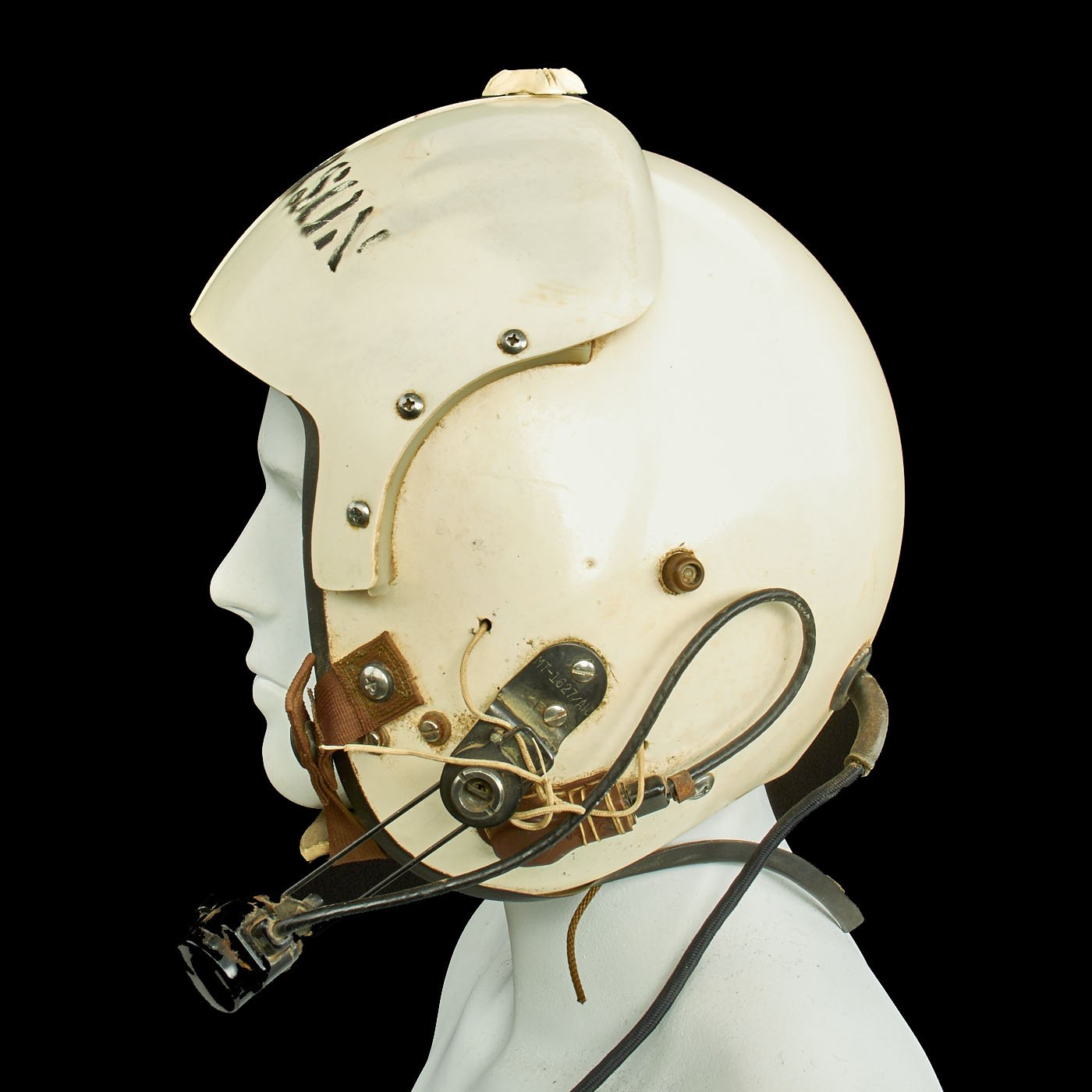 Original Item: Only One Available. This is a Vietnam War era United States Navy Helicopter Flight Helmet type APH-5 Helmet manufactured by GENTEX in size Large. The helmet is in overall very good condition with headset, boom mic, functional retractable tinted visor and felt storage bag with functional zipper. Interior helmet liner has been removed. The white Navy issue helmet is stenciled with black paint across the front ATKERSON. The original data tag is faded but still present inside the shell and reads: