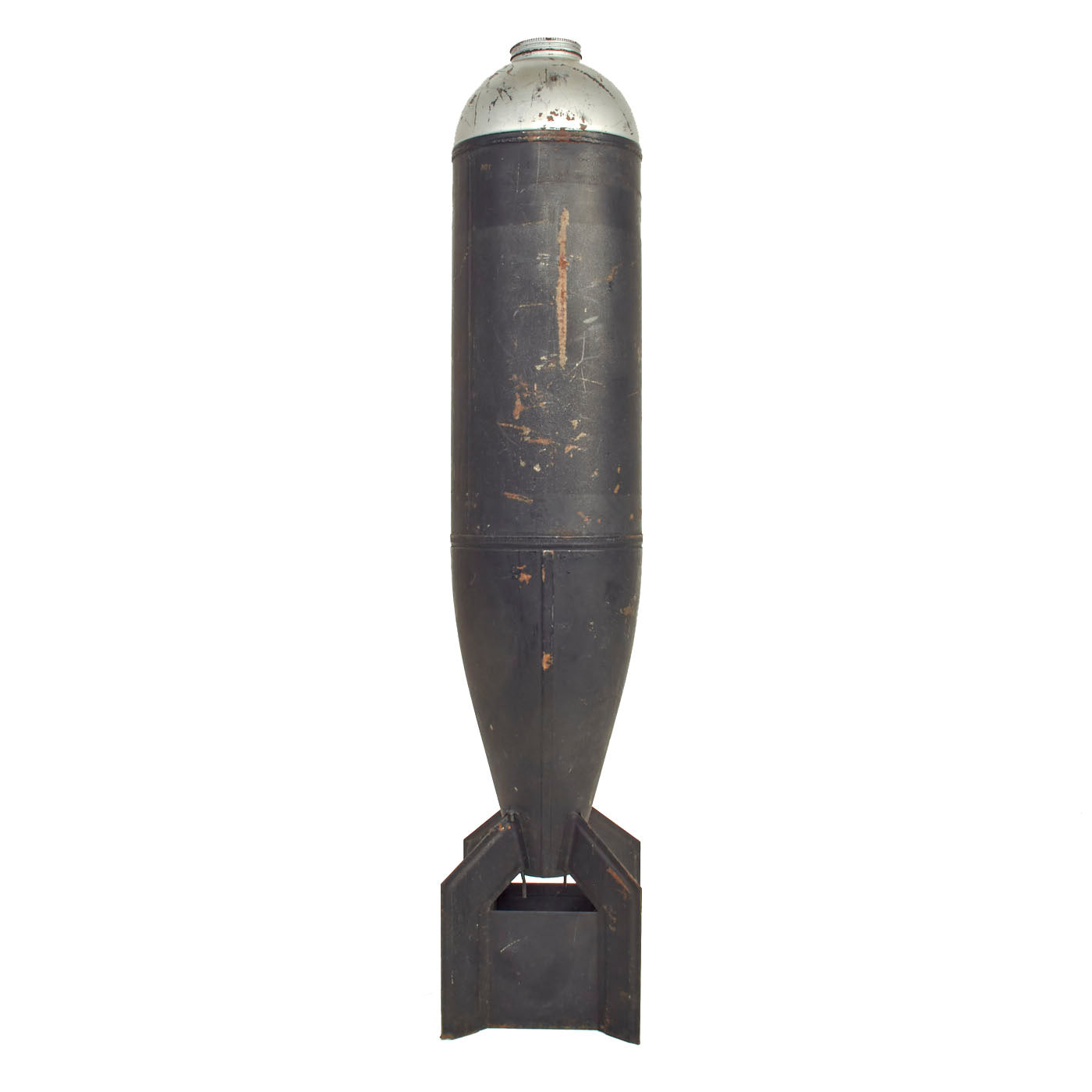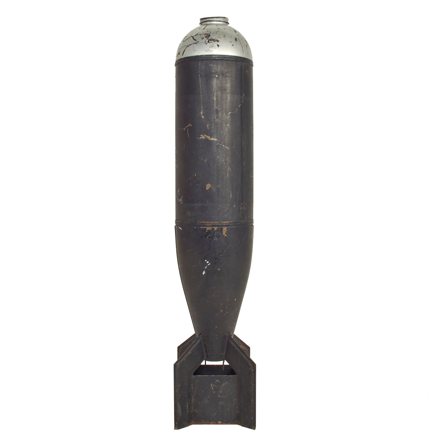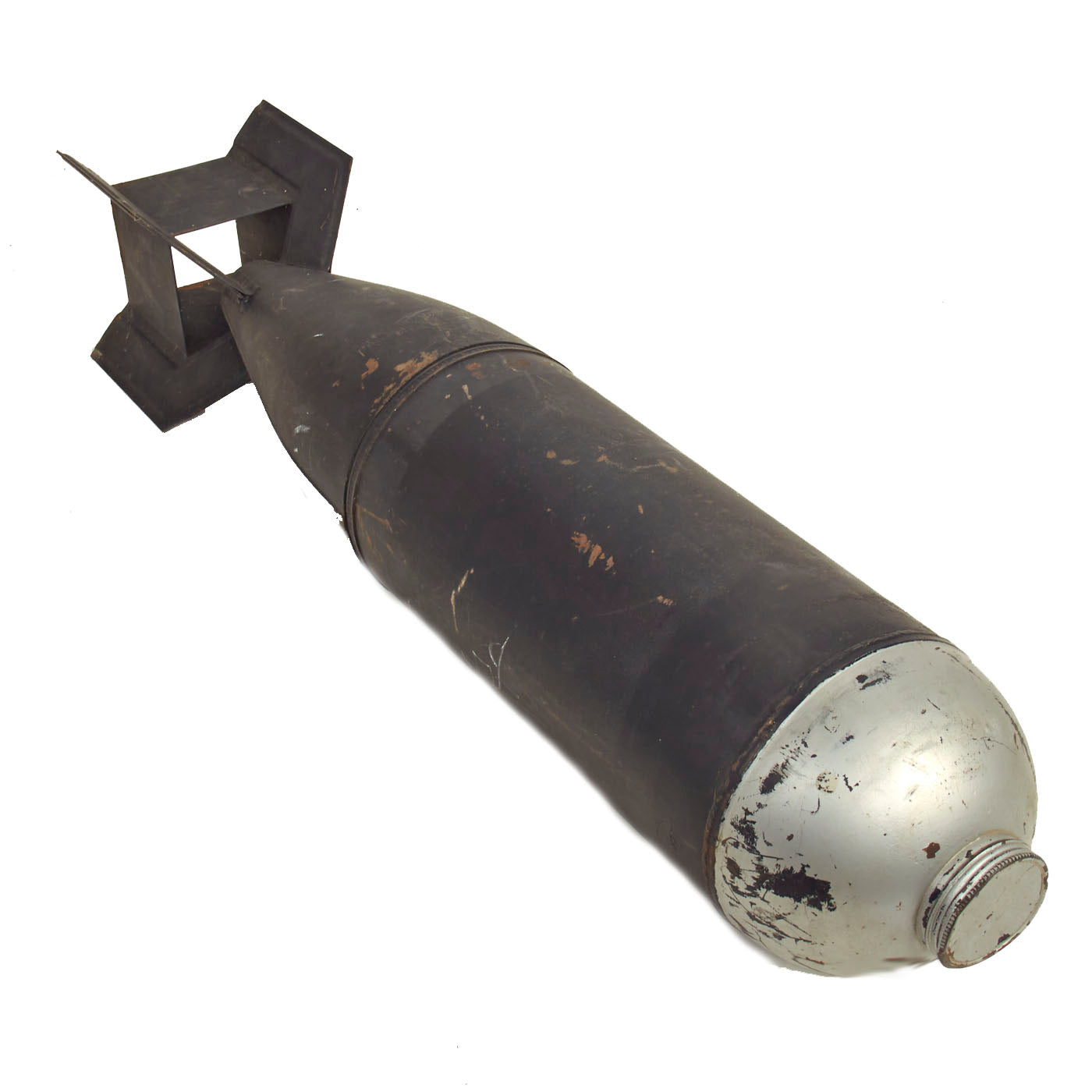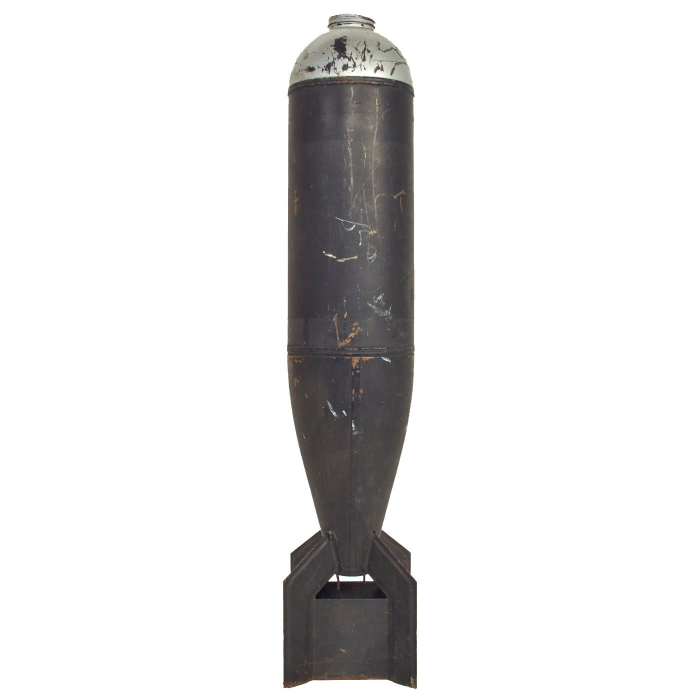 Original Item: Only One Available. This bomb is totally inert and deactivated following guidelines provided by the ATF. It cannot be converted to an explosive device and is not available for export. This example is offered in good condition and has been repainted. It measures approximately 41 inches long, and the square tail fins measure 8 inches per side.