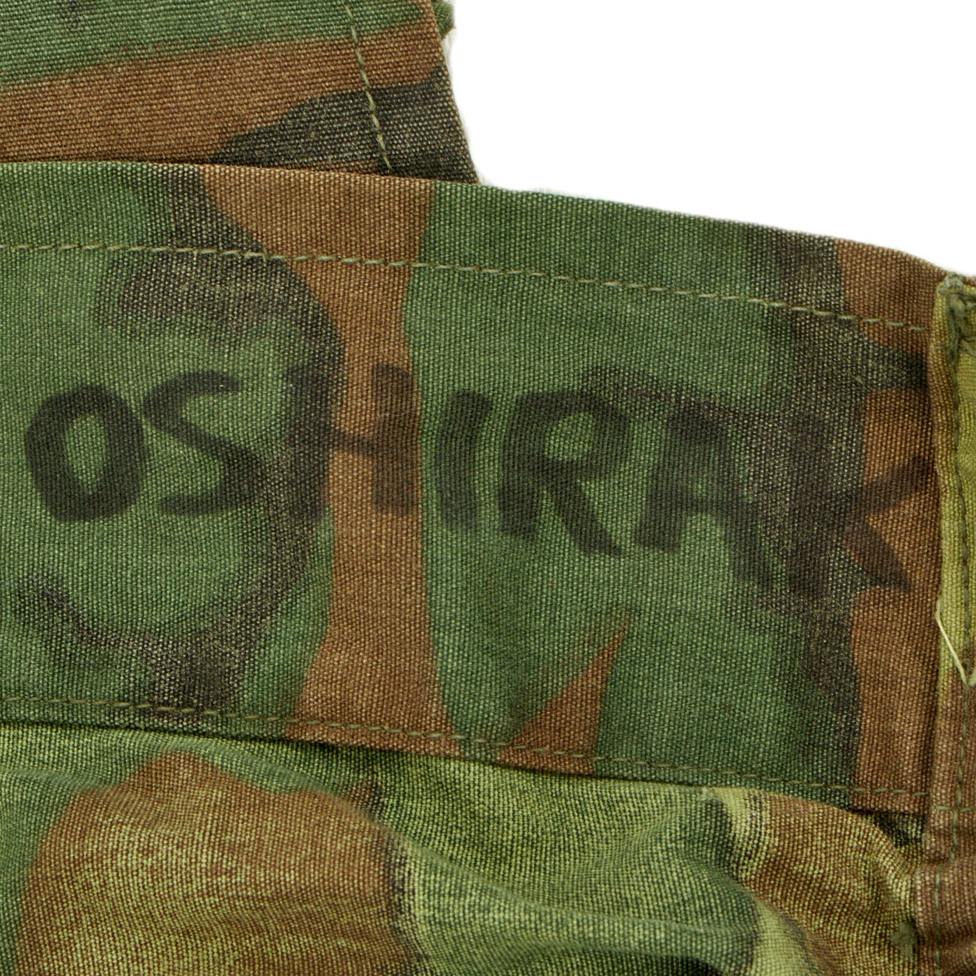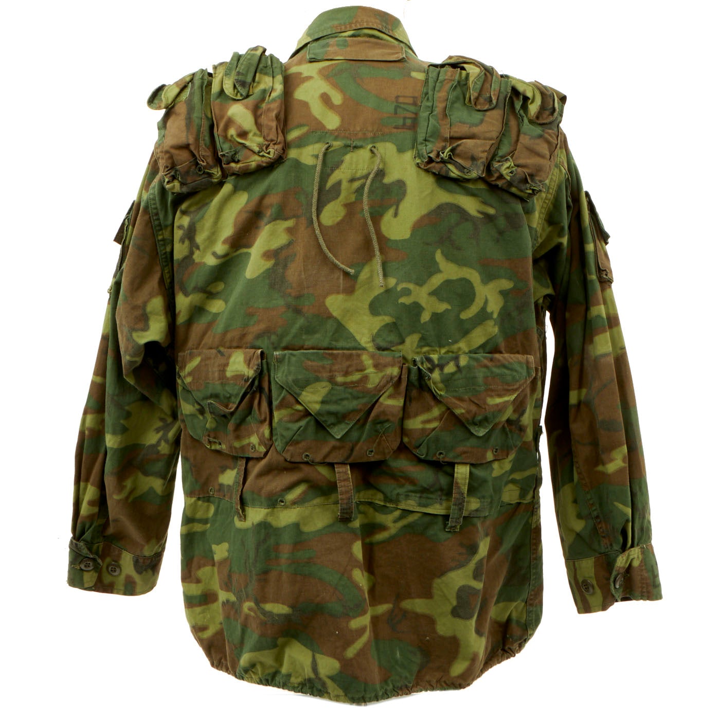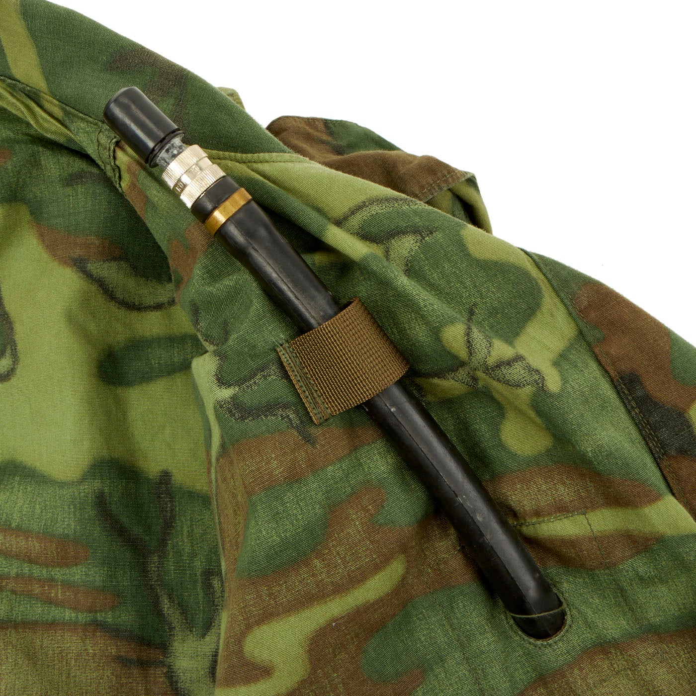 Lime Green rip-stop ERDL variant for a Grenadier with multiple pockets for double magazines and grenades and as well as other instruments. All velcro is in excellent condition. There are no tears, holes, rips or poor stitching that we can find. All buttons are present and are in excellent condition. All pockets and pouches are clean and don't appear to have ever had anything in them. All pull straps in pouches are perfect and in great condition.