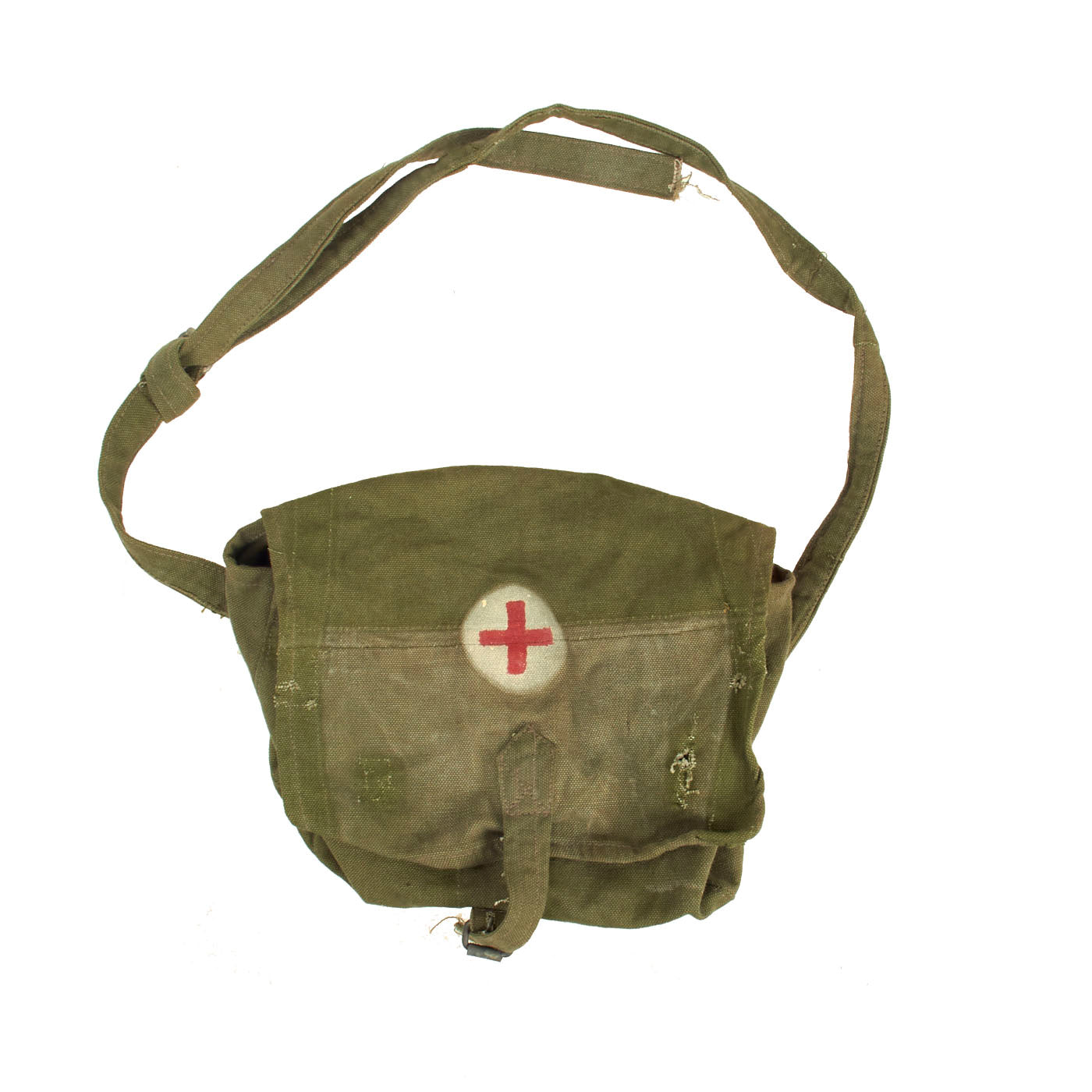 Medic Bag: This appears to be Vietnamese made and is unmarked. The white circle and red cross does appear to be period applied and is in great condition. A guerilla force is most times always outnumbered, surrounded and unable to evacuate wounded men, so the medic was a valued asset to these small teams. They trained their own medics, relied upon their own resources and upon the technical support of nations sympathetic to them. The Vietcong overcame their shortages of medics by establishing a 12 month long school for “medical officers” in safe, hidden areas of the jungle. In the school they are taught the structure and function of the organ systems, basic diagnosis and treatment and traumatic surgery.