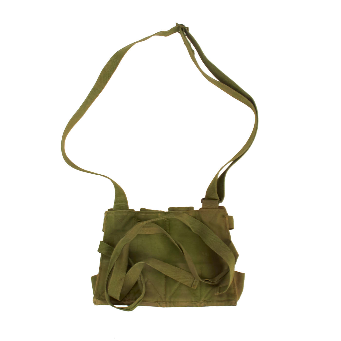 - Vietnamese Made Rifle Grenade Pouch: We believe this to be Vietnamese made and meant for rifle grenades after comparing it to other known examples. It appears to be complete and still in functional condition.