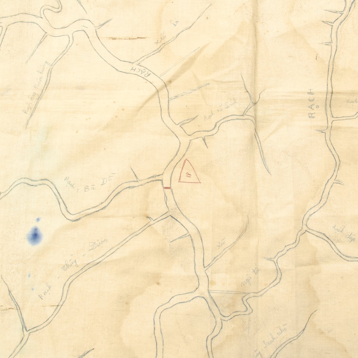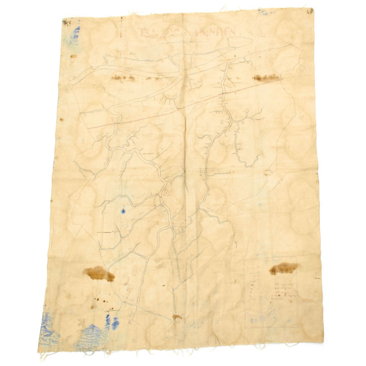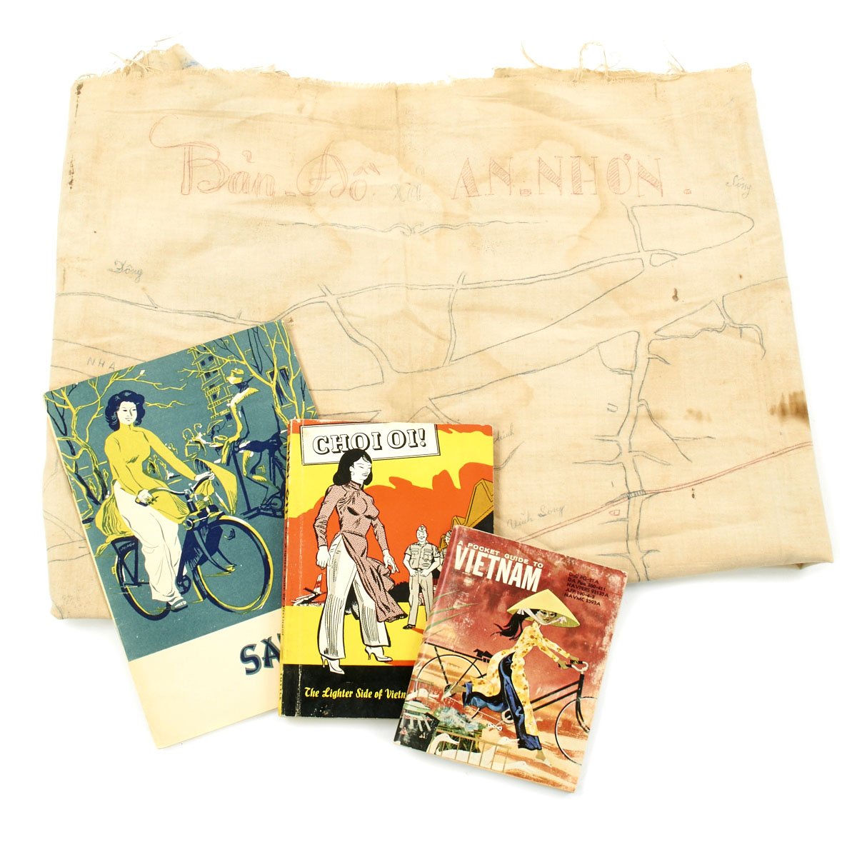 Original Item: This is an incredible map, it was captured by an American soldier who was able to bring it home as a trophy of war. A letter is also included describing how the soldier captured it and how he had to" argue with the intelligence guys" in order to be able to keep it. The map is hand made on a large piece of cotton fabric.