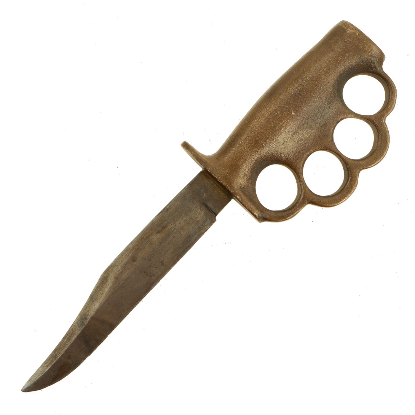 A machined brass knuckle grip with fitted finger holes was attached. The knife for all intents and purposes was almost identical to the trench knives used in World War I.