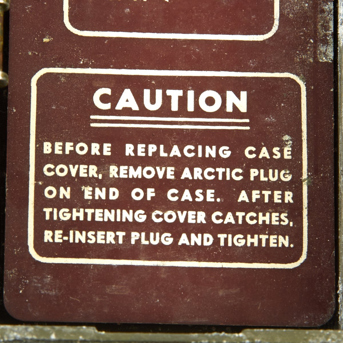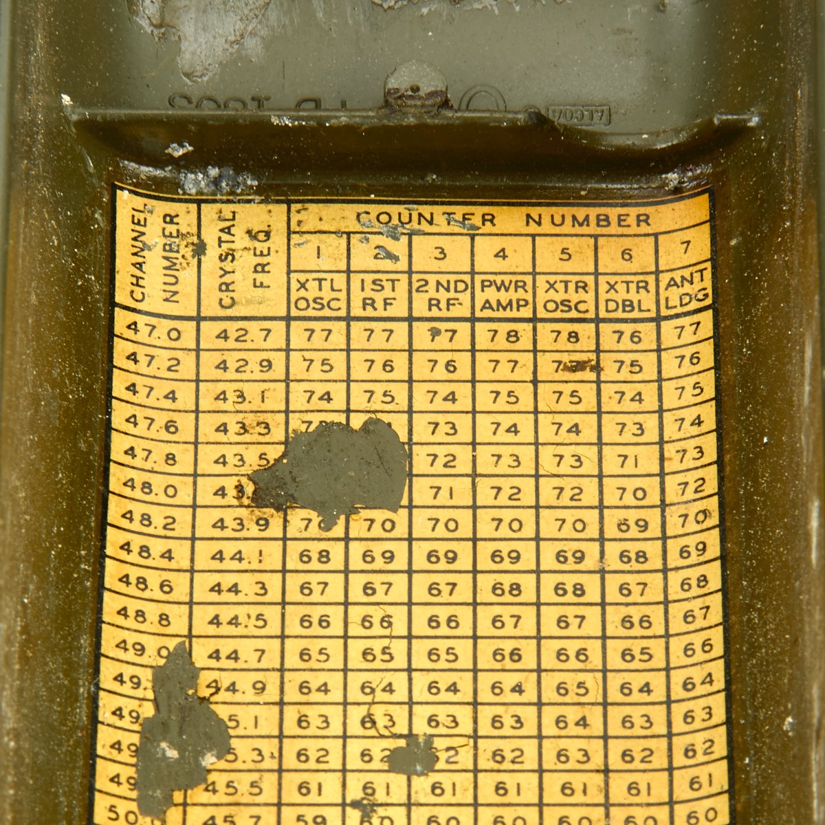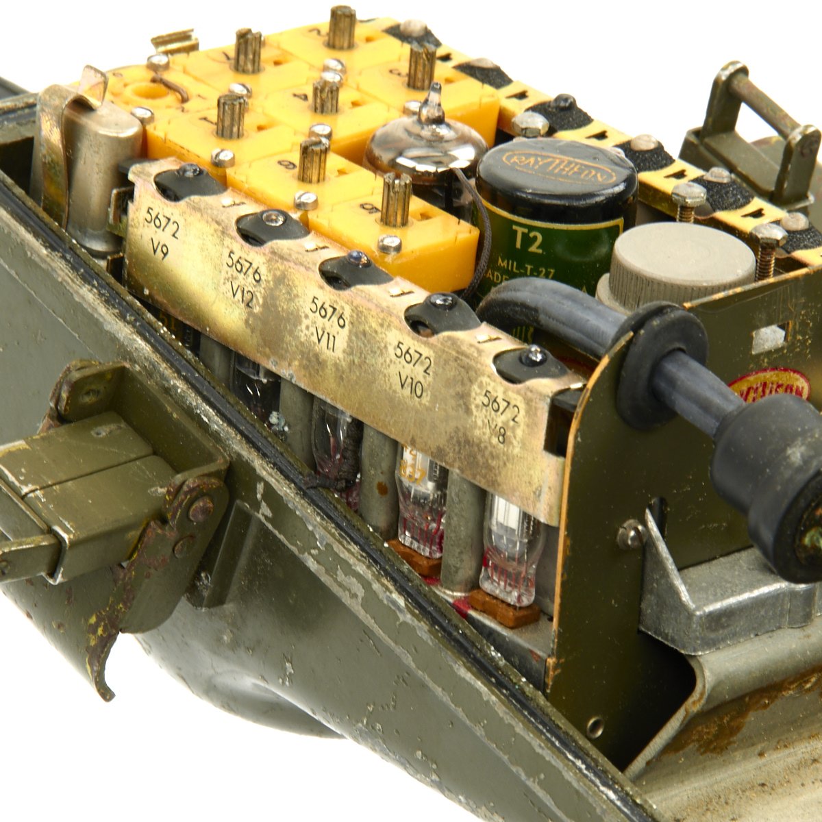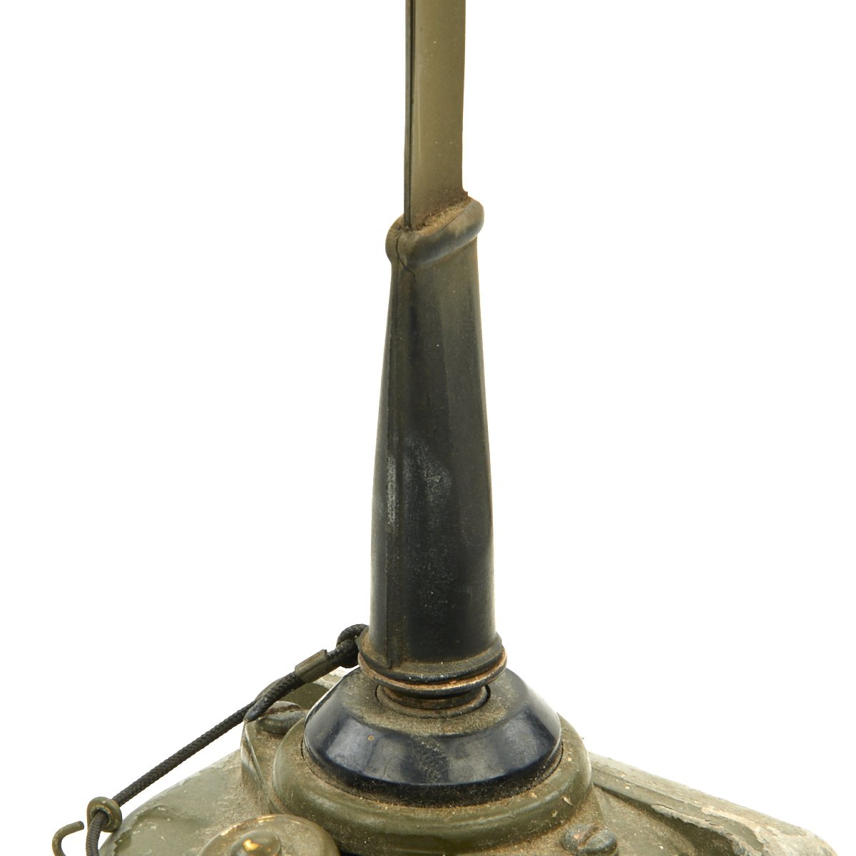 This example appears complete, though it definitely does show some service wear. The paint has worn off in places, so that the alloy body material can be seen. The spring steel "whip" antenna has almost all the original paint, and folds up easily. There are some markings painted on the exterior by the microphone. The rear sling is in good condition and is fully adjustable. The various connectors appear serviceable.