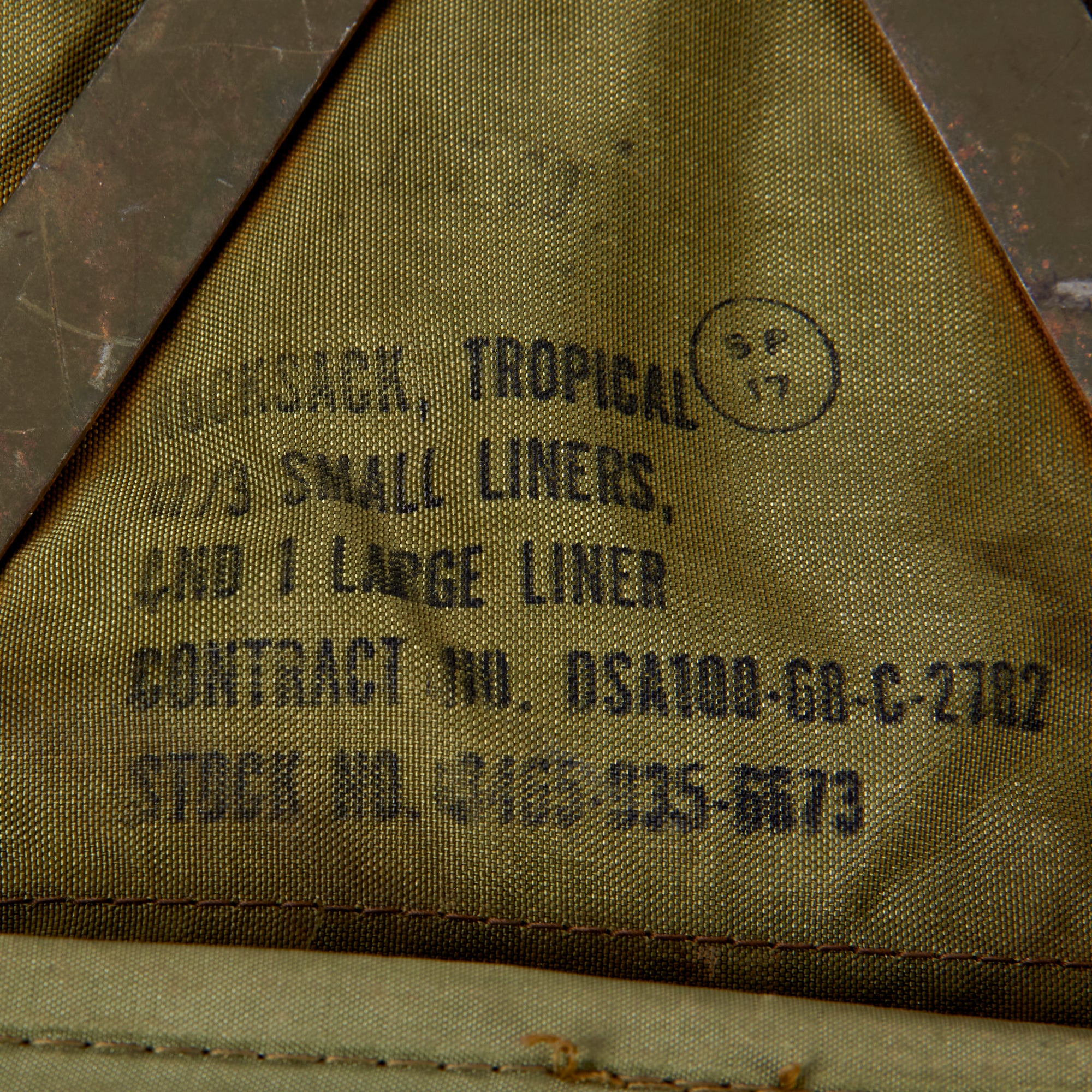 Original Item: Only One Available. Development of the Tropical Rucksack (a.k.a. Jungle Rucksack) began in 1965 when MACV requested a nylon version of the ARVN pack from Natick Labs for evaluation purposes. However, after initial testing the rucksack had to be significantly redesigned in order to strengthen the pack and round off the corners of the frame. The redesigned rucksack was assessed against three Cresson H. Kearny modified Gurkha-Australian packs, before being finally approved for procurement in early 1968.