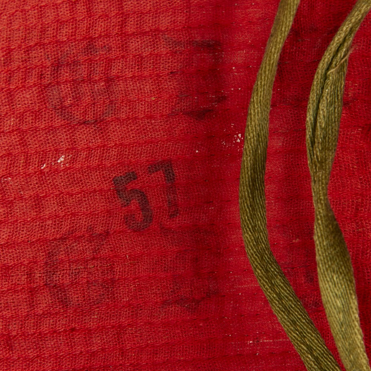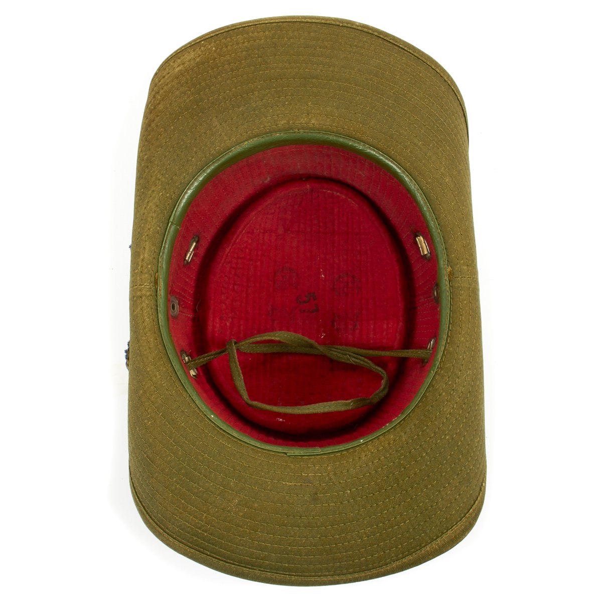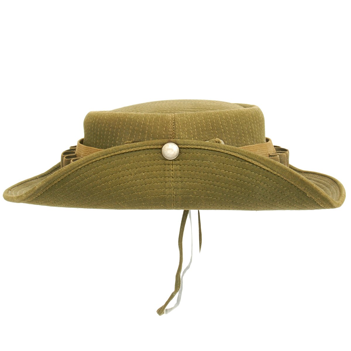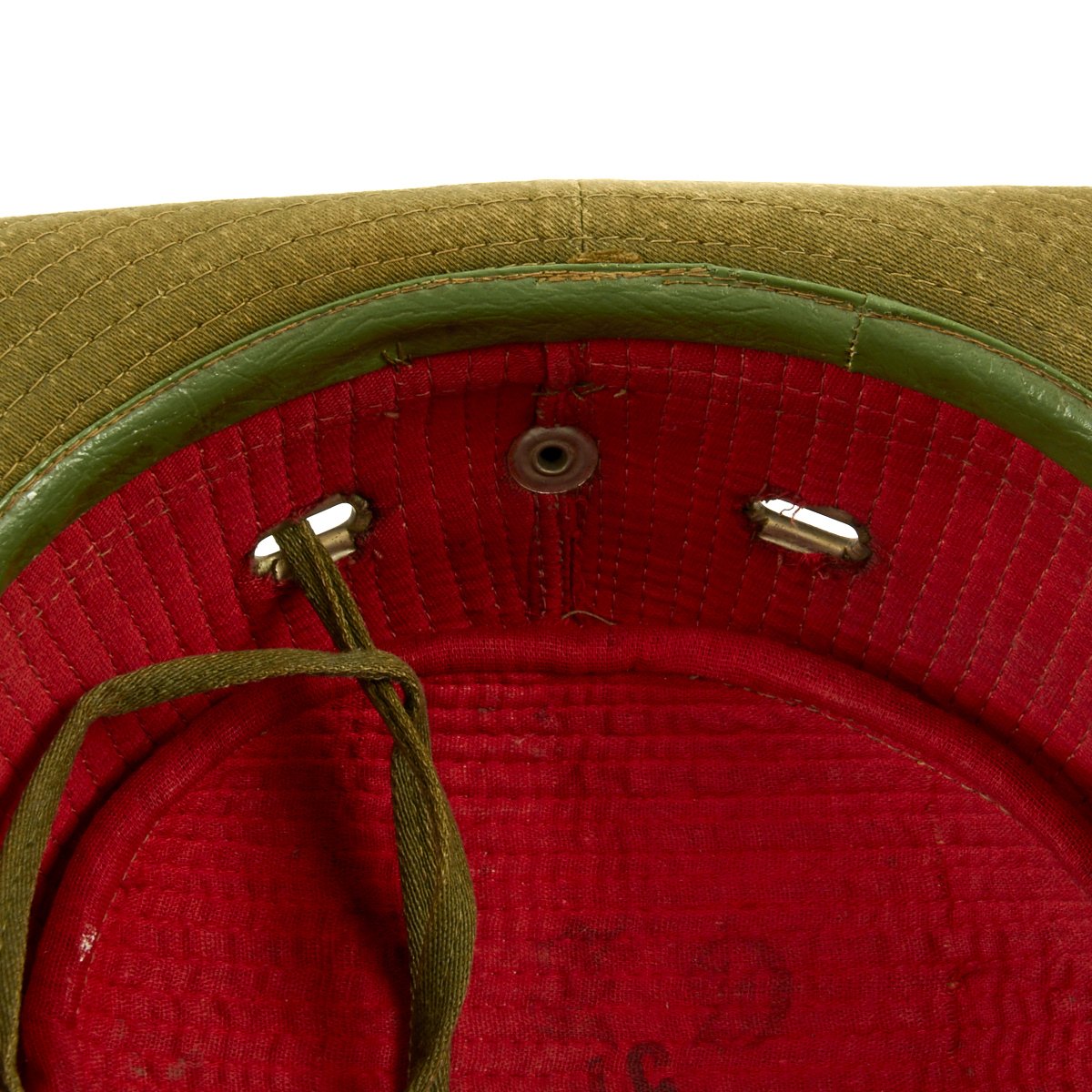 The hat itself is heavy gauge canvas construction with green exterior and red interior and is a size 57 (US 7 1/8). Overall condition is excellent.