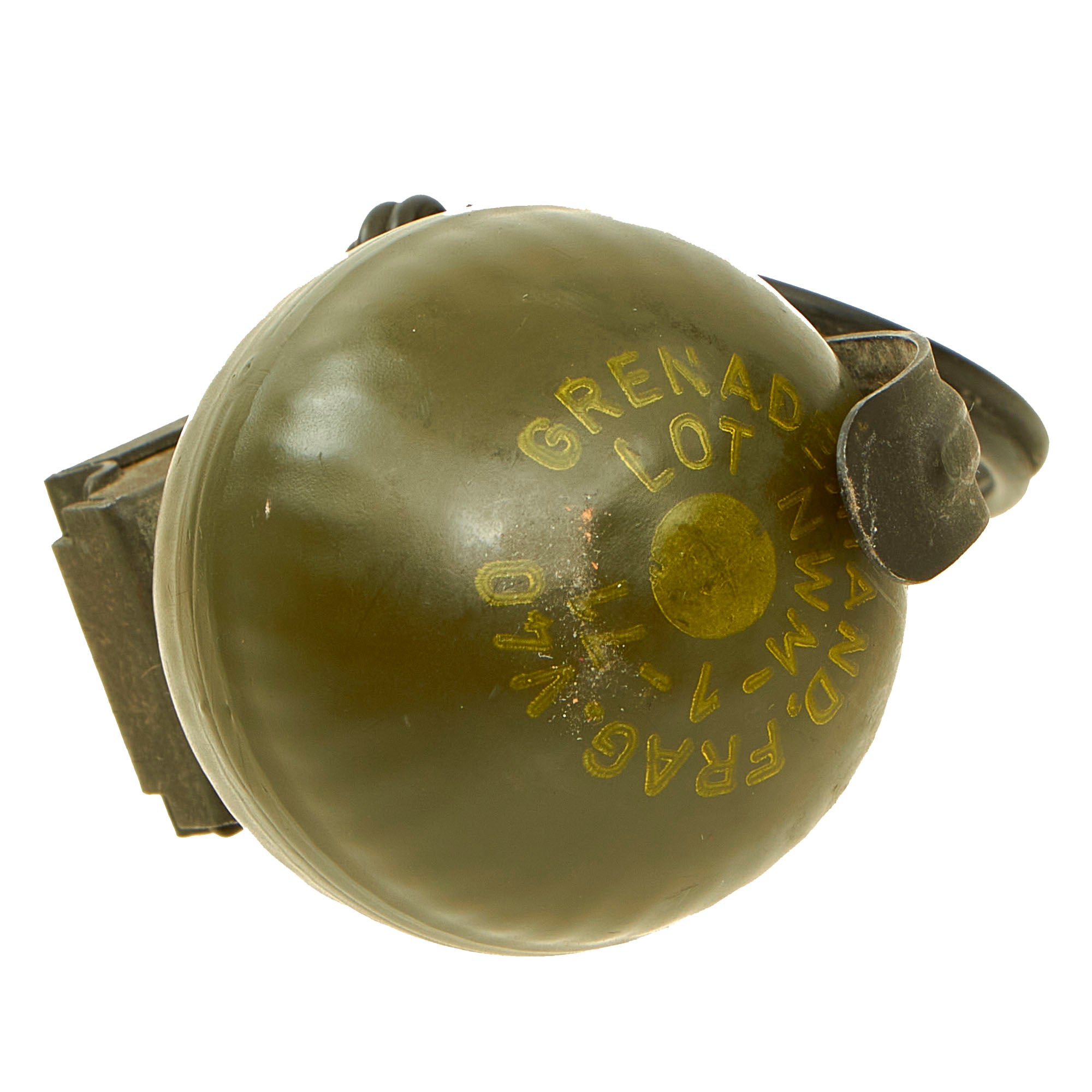 Original Item: Only One Available. Now this is a first for us here at IMA! What we have to offer here is the V40 Mini Fragmentation Hand Grenade, affectionately known as the “hooch popper” due to its casualty radius of 5 meters. The V40 is totally inert and is unable to be used as an explosive device and is in total compliance with the current BATF standards governing ordnance.