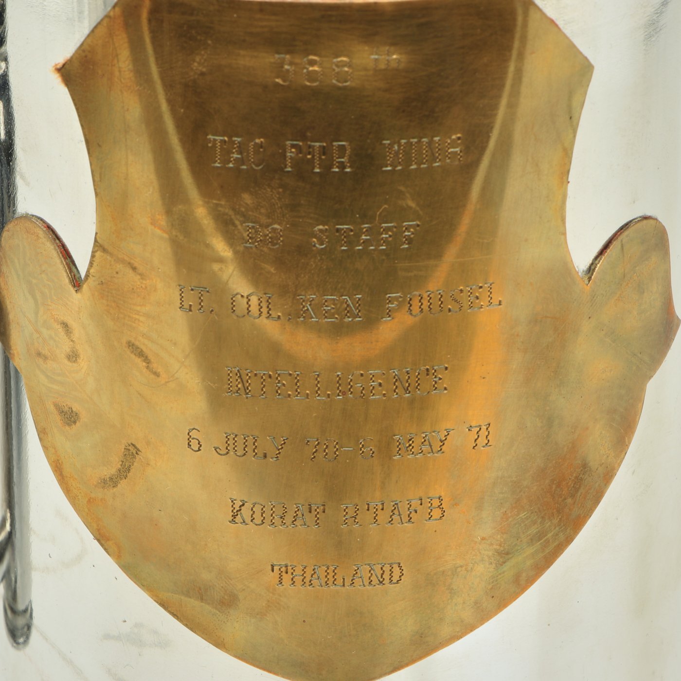 Original Item: One-of-a-kind. "Trench Art" has a long and storied history, originally arising from items made during the long periods of inactivity in the Trenches of WWI. The name still continues to be used for items such as this, a presentation mug made to commemorate an officer's service in Vietnam.