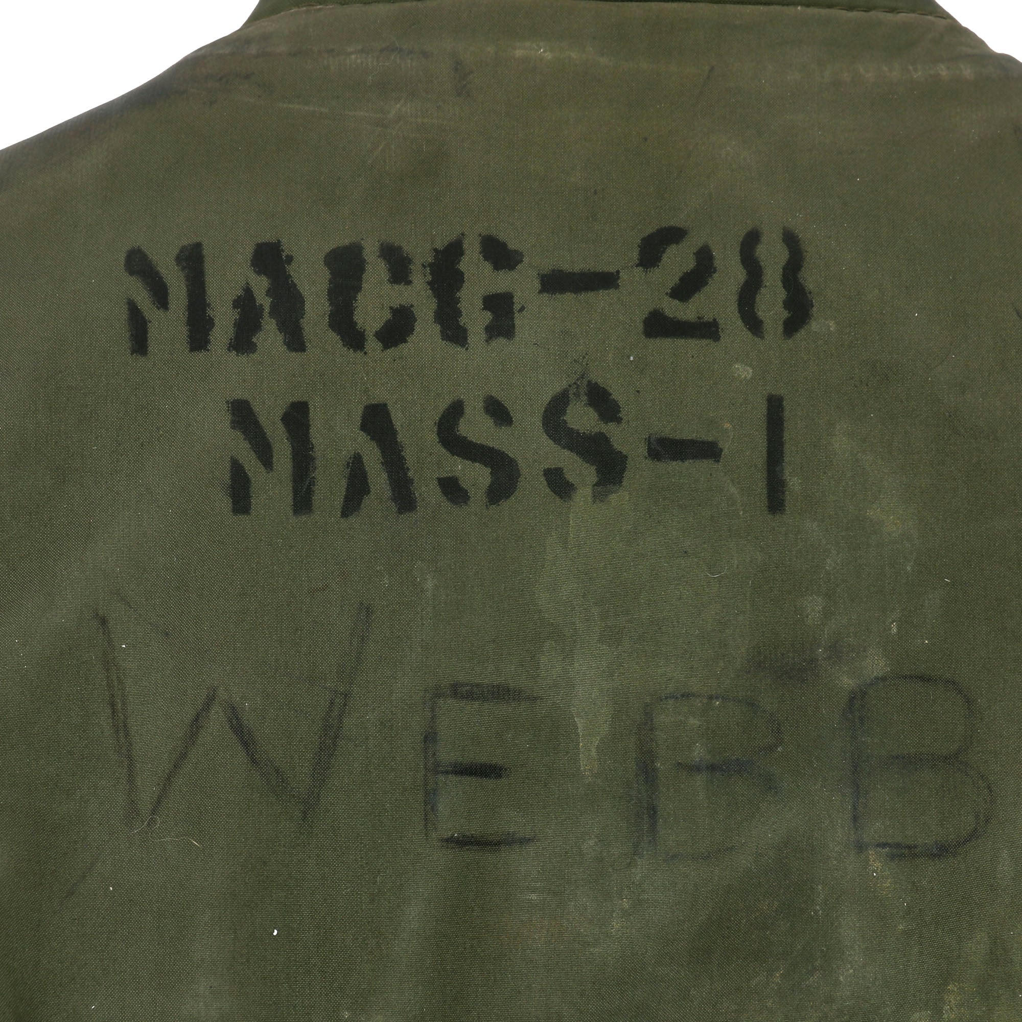 The label is present and the bottom of the label is marked U.S. MARINE CORPS / SIZE MEDIUM. There is also contract information, and the label is DATED 7 MAY 1968.