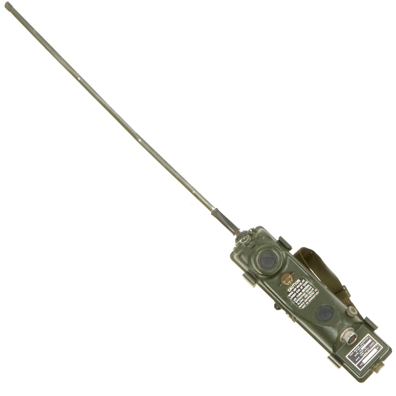 The AN/PRC-6 is a walkie-talkie used by the U.S. military in the late Korean War era through the Vietnam War. Raytheon developed the RT-196/PRC-6 following World War II as a replacement for the SCR-536 "handy-talkie". The AN/PRC-6 operates using wide-band FM on a single crystal controlled frequency in the 47 to 55.4 MHz low band VHF band. Rated power output is about 250 mW. The range is about one mile (1.5 km), but much less in jungle.