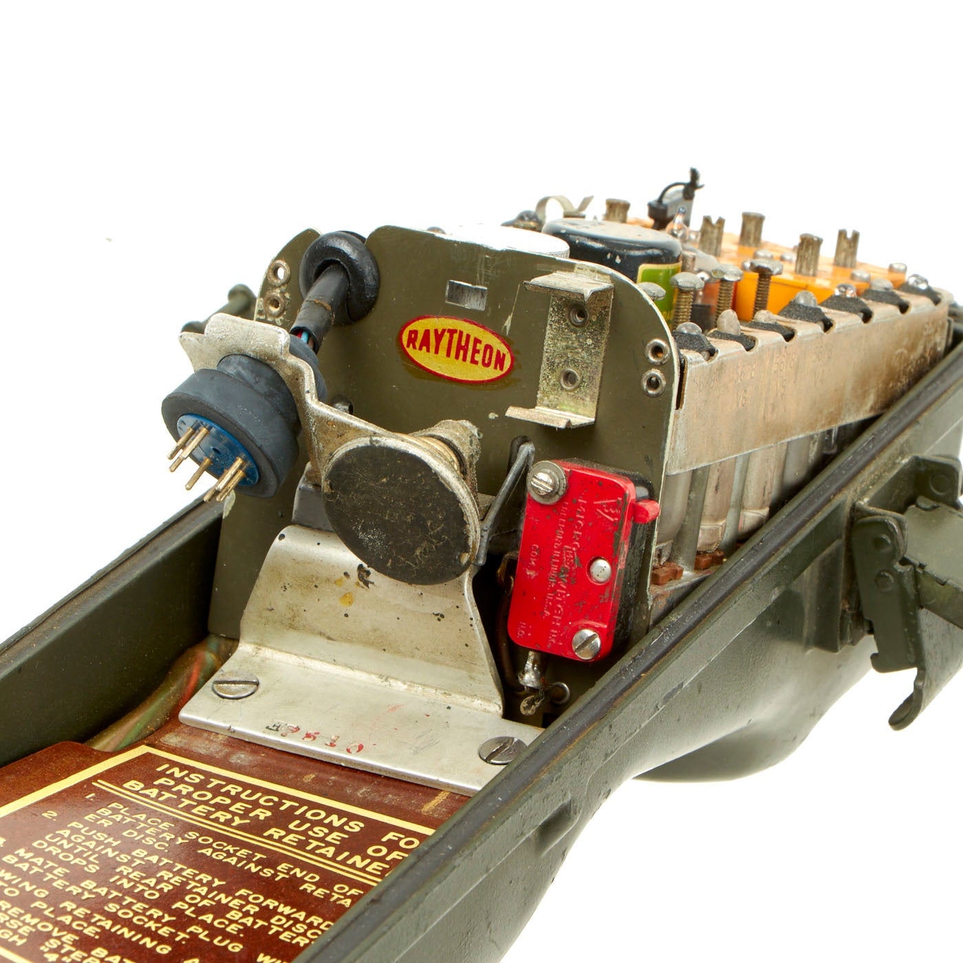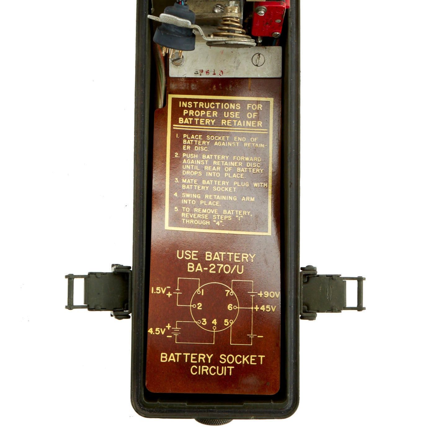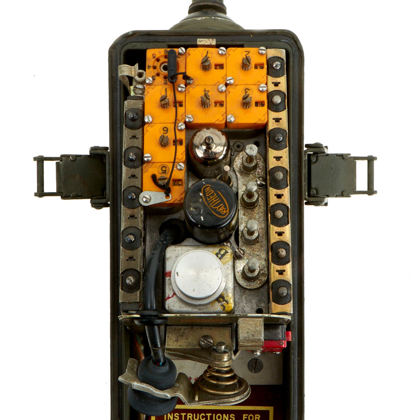 The internals on this example also look to be fully intact, with all of the subminiature vacuum tubes still in place. The main tube and other components are also still present. It still has the original carry strap on the back and flex antenna.