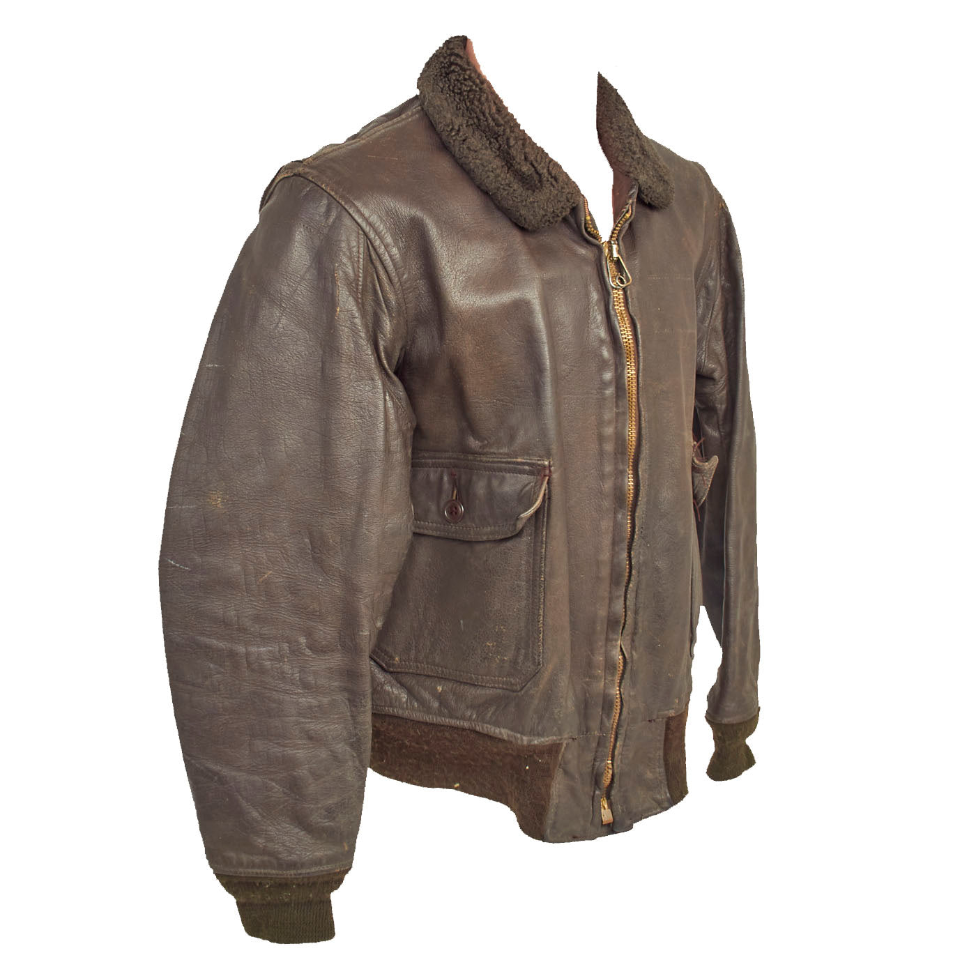 Original Item: Only One Available. This is a very nice condition G-1 “Military Flight Jacket” in near mint condition at a size 44. The "G-1" military flight jacket is the commonly accepted name for the fur-lined-collar World War II-era flight jacket of the United States Navy, Marine Corps, and Coast Guard. A similar jacket used by the United States Army Air Corps/United States Army Air Forces was usually called the A-2 jacket.
