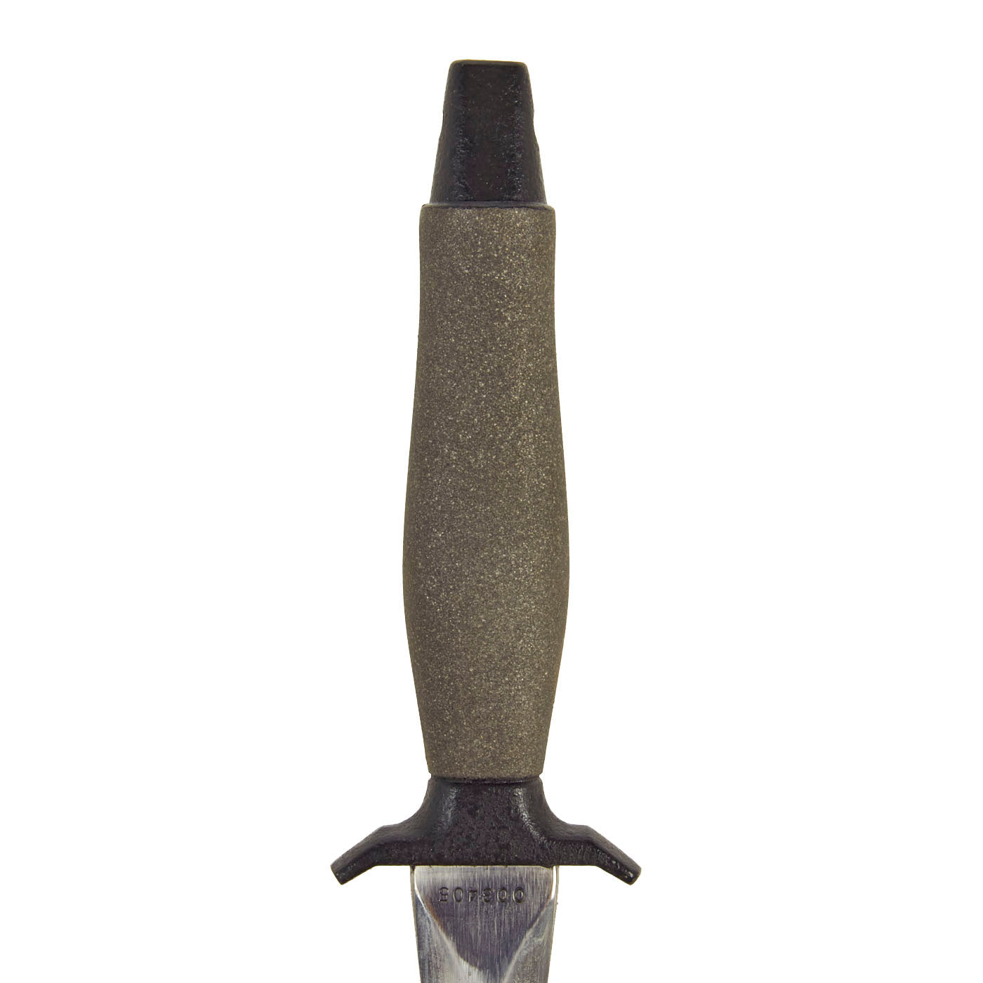 At 12.75 inches (32.39 cm) long it has a 6.5 inch (16.5 cm) 420 HHC stainless steel double edged spear point wasp-waisted blade, weighs 8 ounces, and has a die cast aluminum handle. It has a distinctive look similar to that of the Fairbairn-Sykes Fighting Knife developed during World War II for the British Commandos.