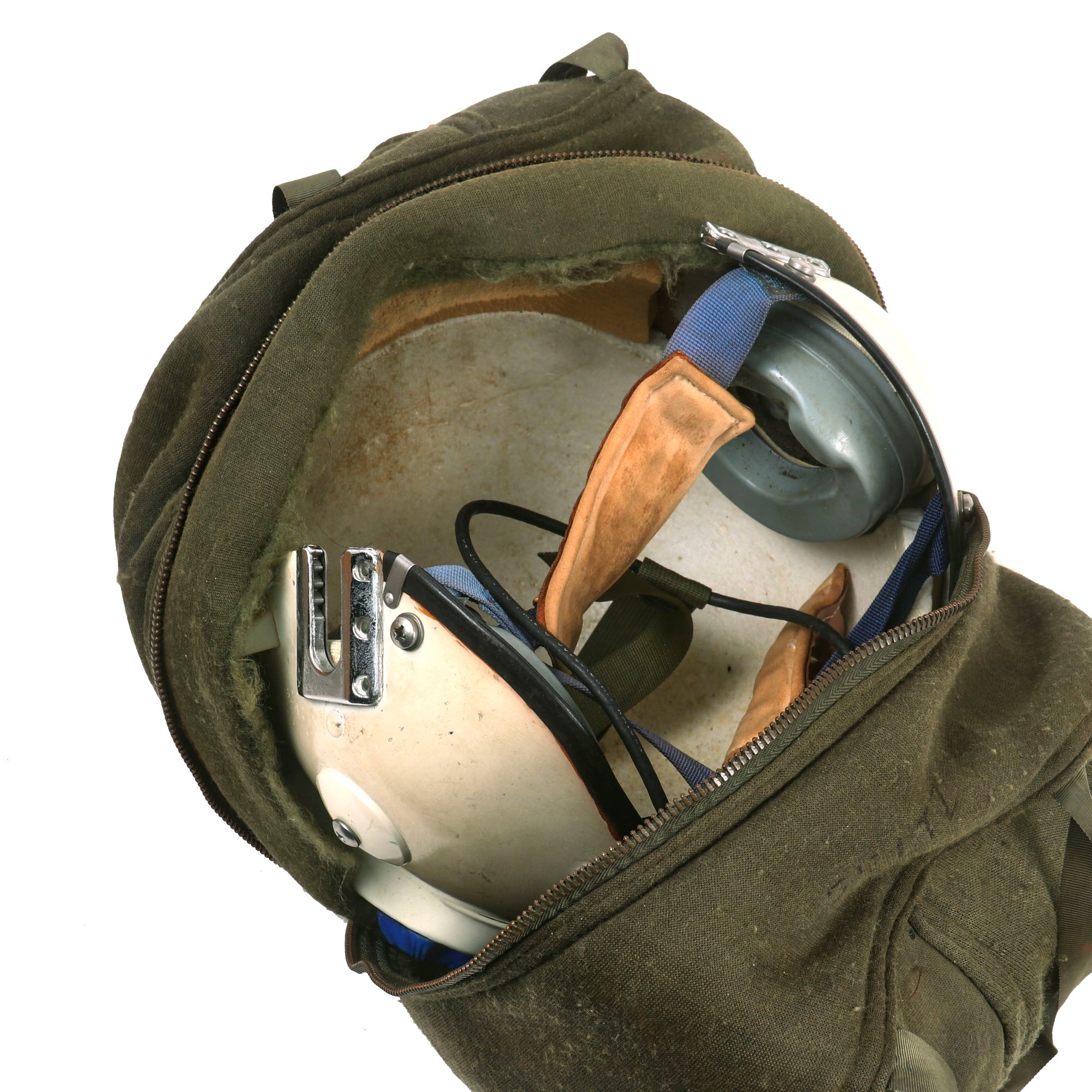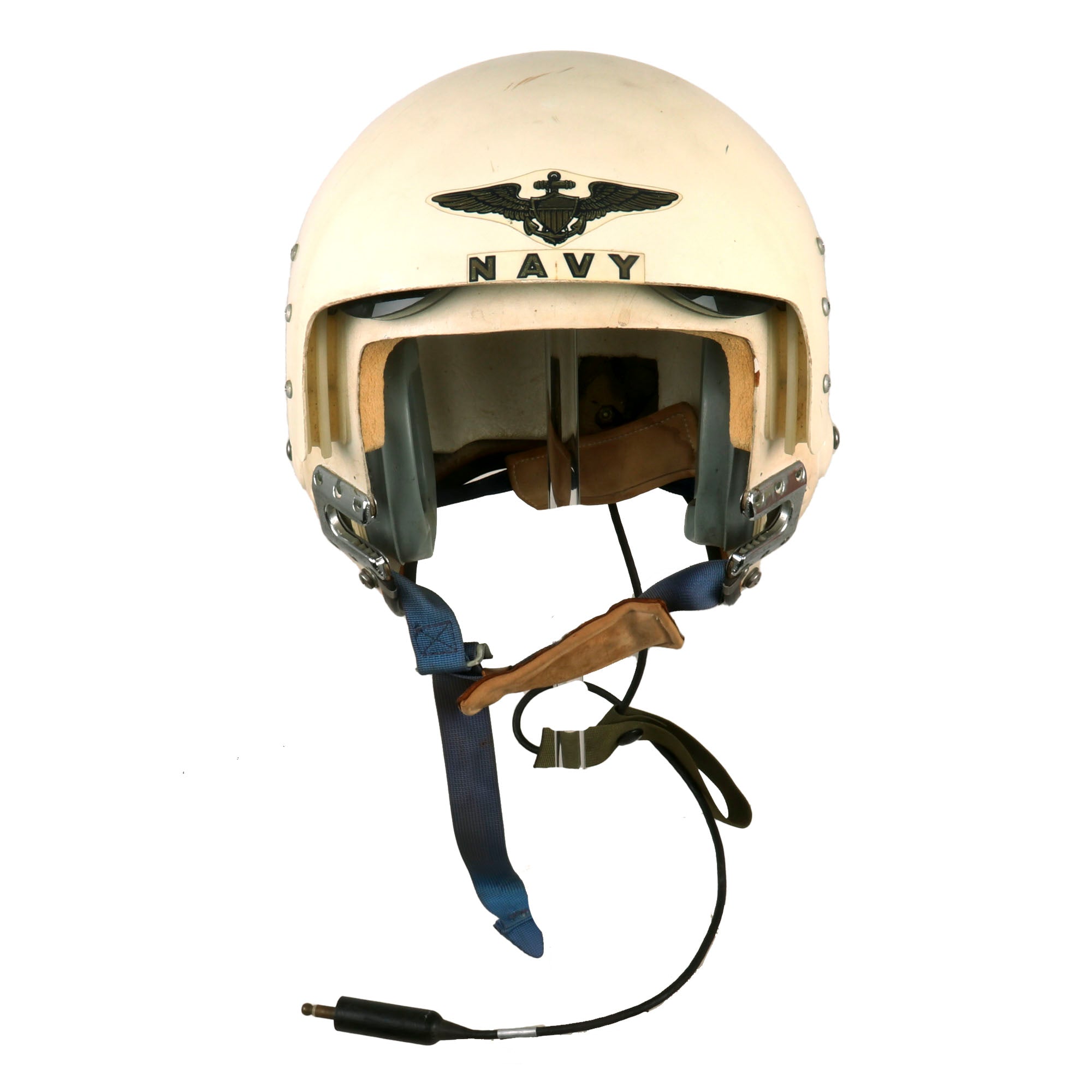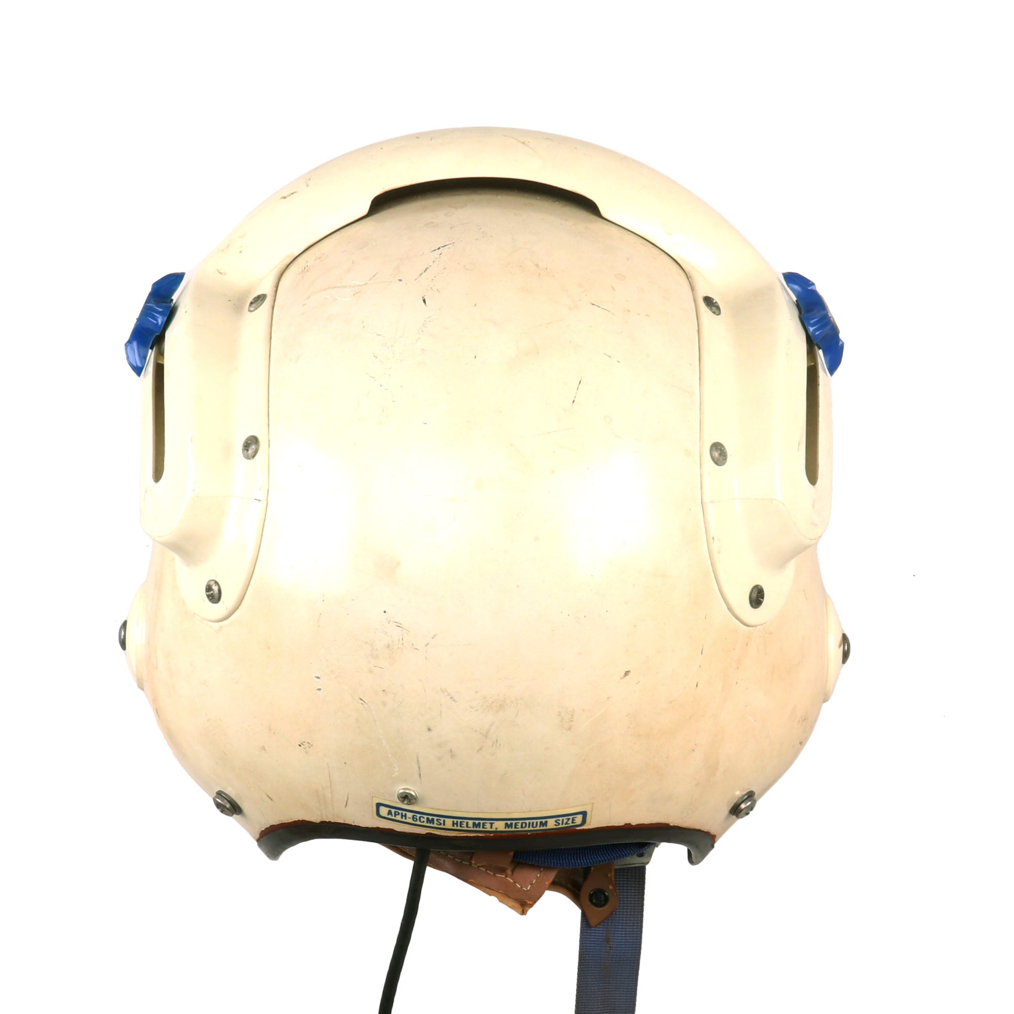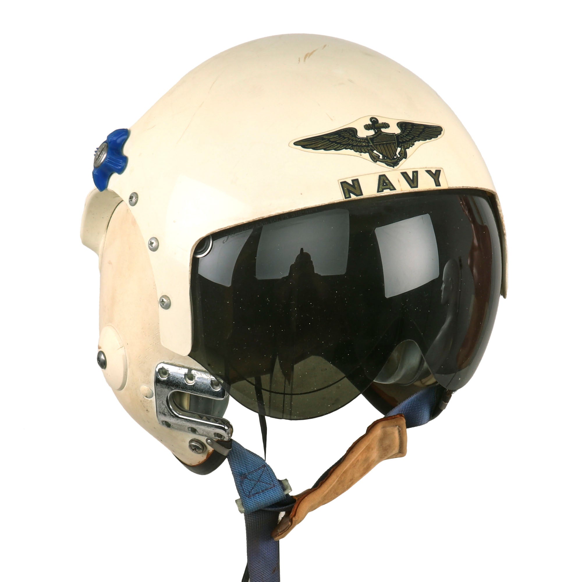 Original Item: Only One Available. At the end of the 50's the APH series helmets introduced a new generation of flight helmets characterized by the external visor covered with a protective shield. Improvement of the communication system, internal liner and oxygen mask retainers was also made and in some versions the dual dark and transparent visors system was installed. These types of helmets were the US Navy and USMC standard jet aircraft headgears during the 60's and throughout the 70's. In this period the first development of a flight helmet incorporating the Visual Target Acquisition System (VTAS I) was also made. Furthermore during the late 60's, flight tests were performed to verify the suitability of a full face "Clam Shell'' helmet designed to eliminate the oxygen mask and to give better protection during ejection.