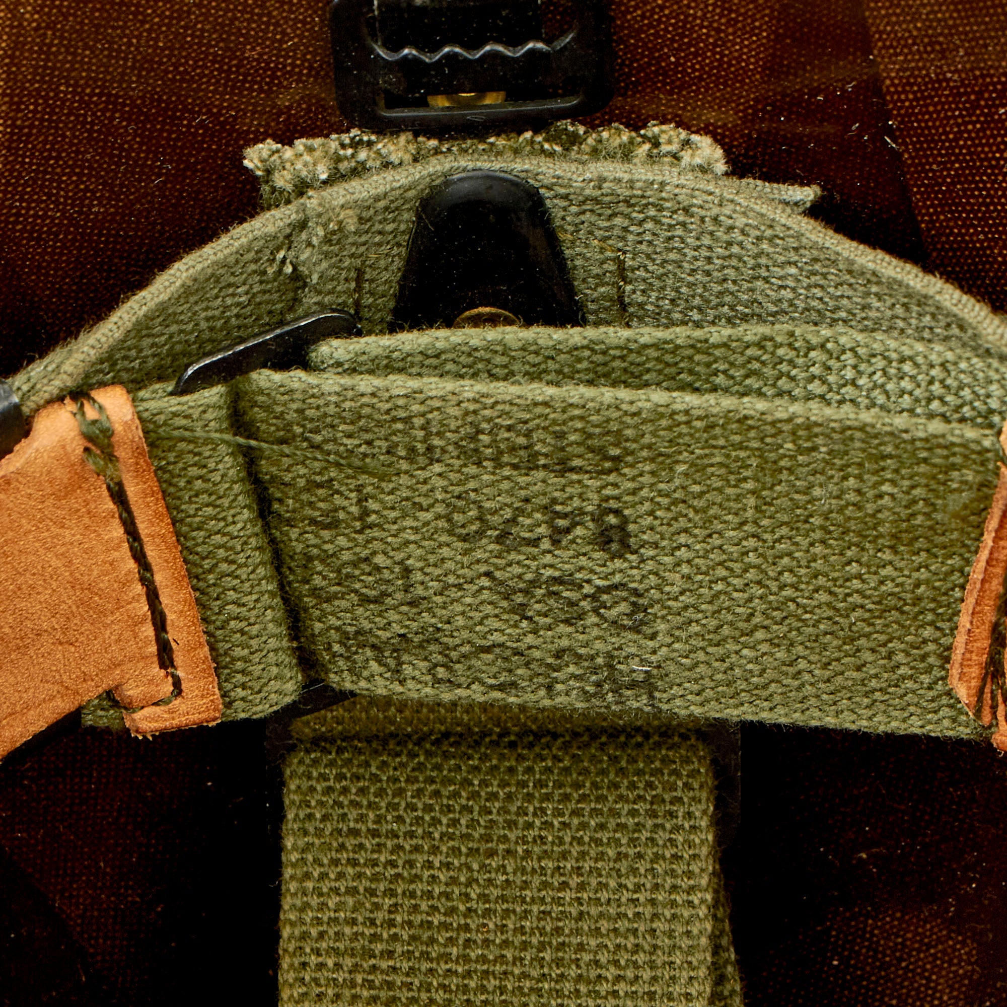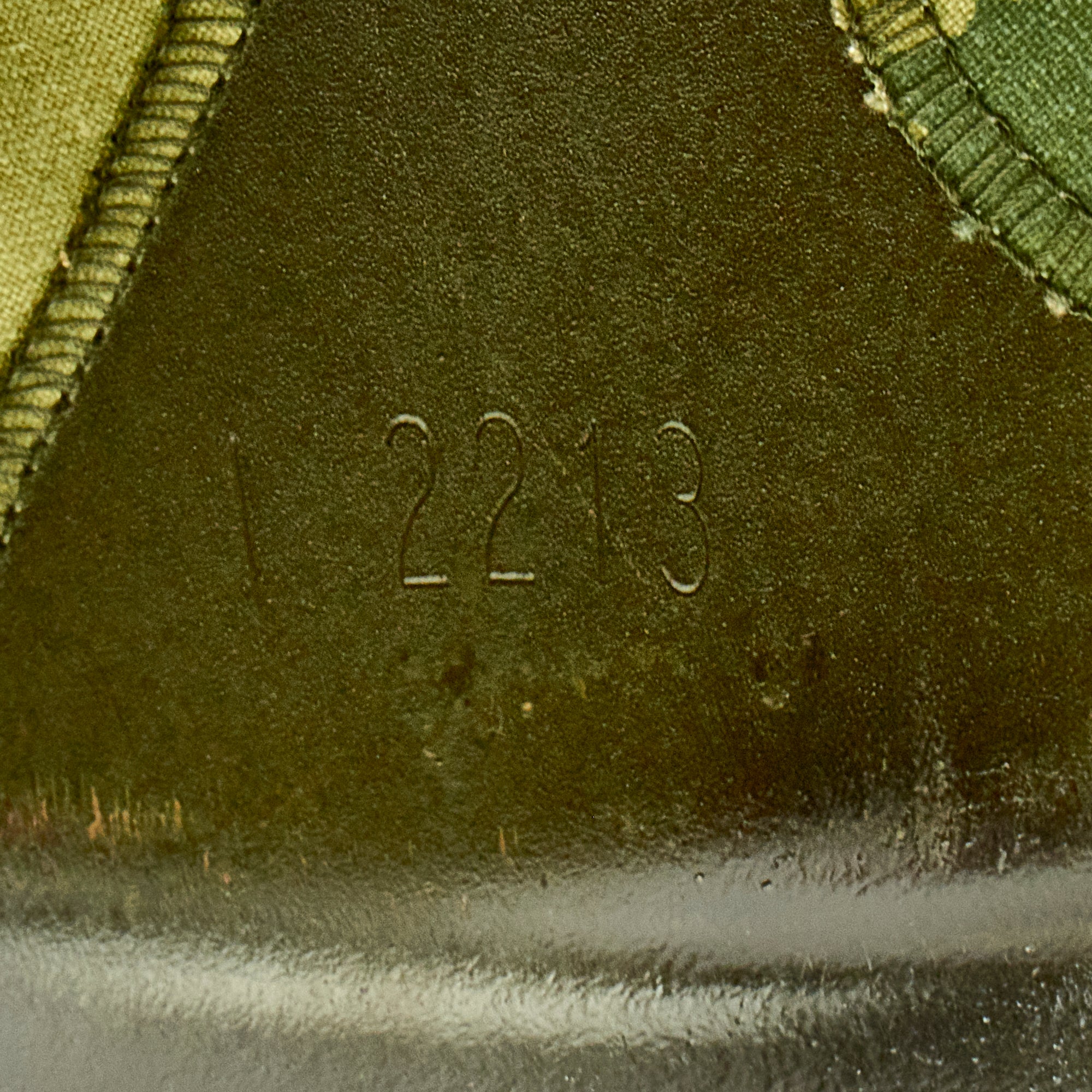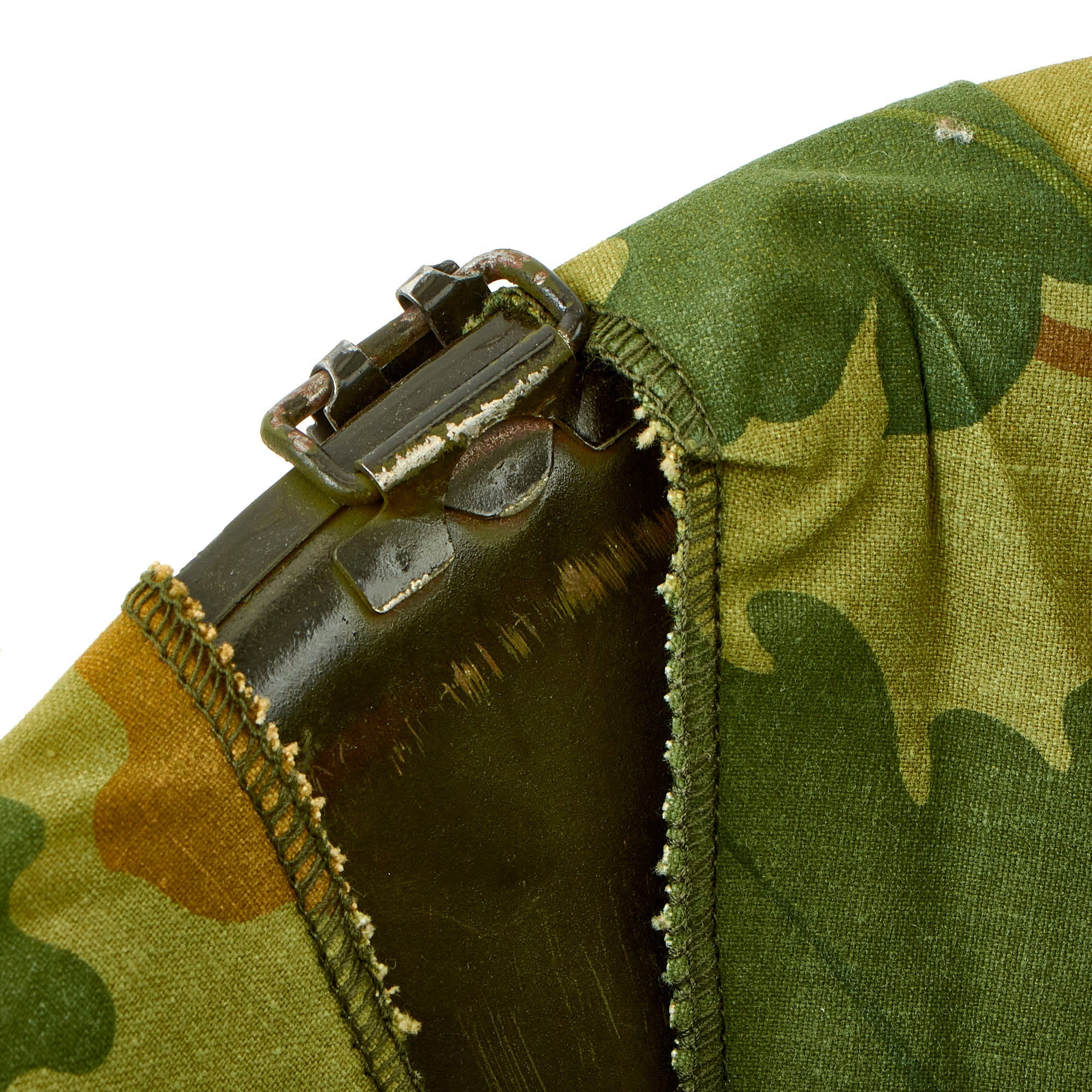 The included reversible camouflage cover is in very good, light service worn condition, complete with the elastic securing band. There is a bit of wear through around the edges, and overall fading, typical of a cover that saw actual service in the field.