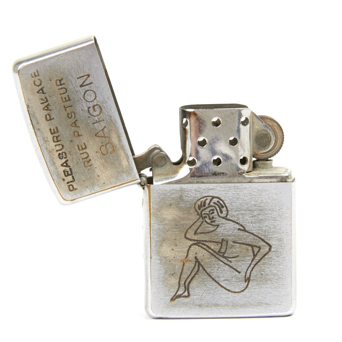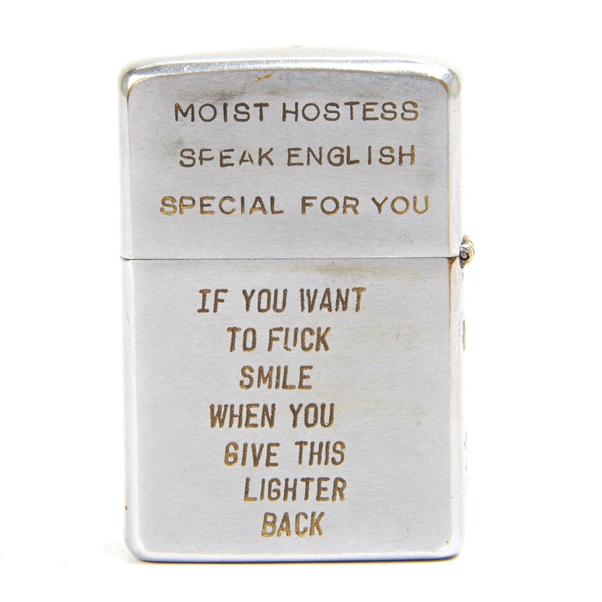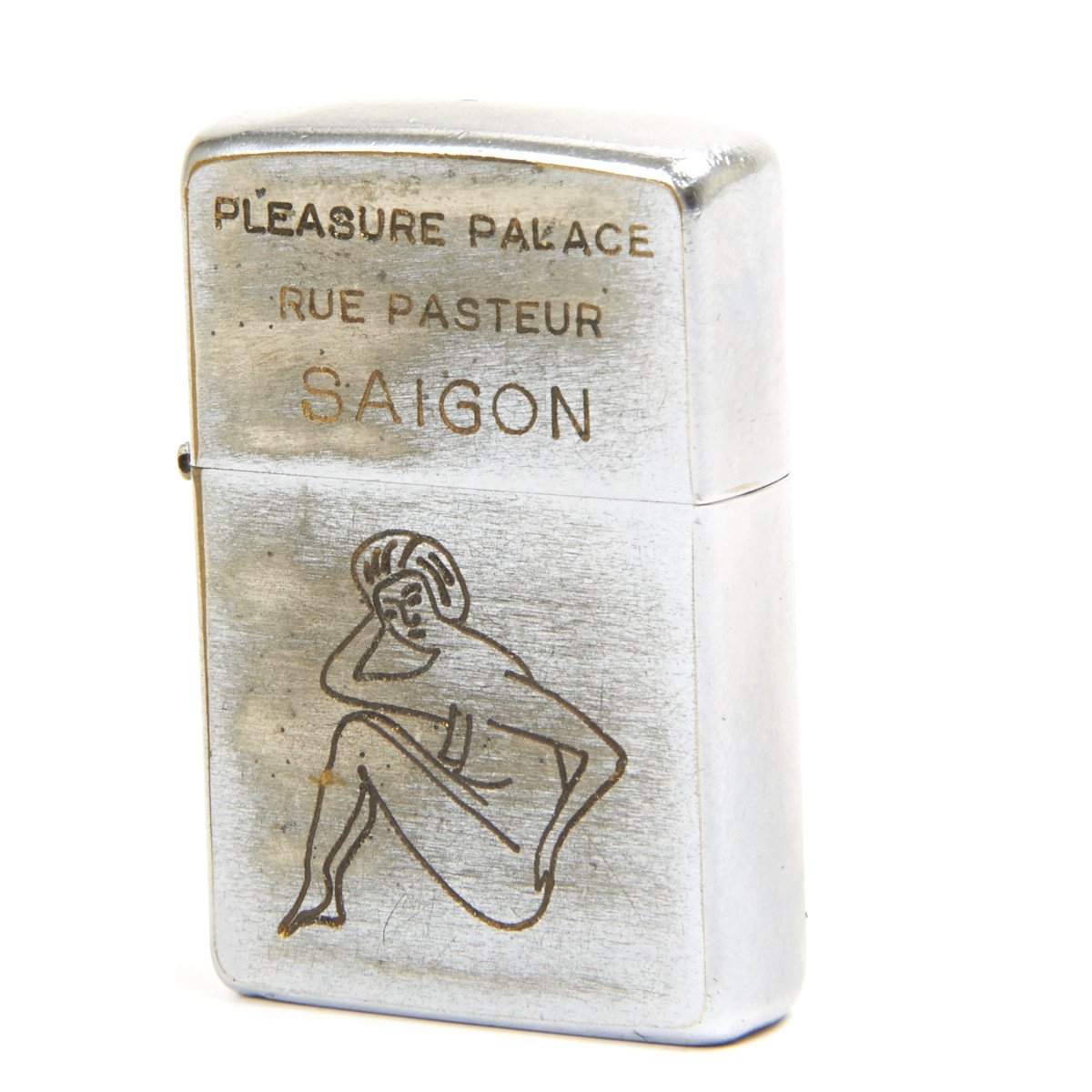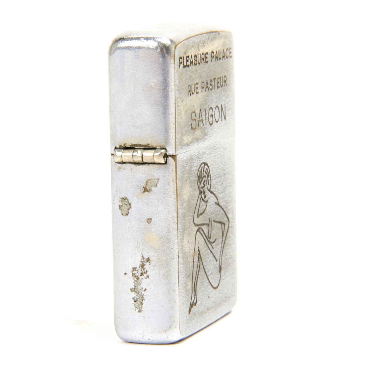 Original Item: One-of-a-kind. During the Vietnam was Zippo lighters were not only available for purchase in the PX (Post Exchange) where many consumer goods were sold, but also on the black market. Zippos could be customized with regimental cyphers and engravings, and were purchased by GIs returning home as a memento of their military service in the specific theatre of operation. They were also used as promotional items by bars and brothels and given to the best customers who would take the lighters into the field, barracks, etc and work as advertising to the GIs friends and fellow soldiers.