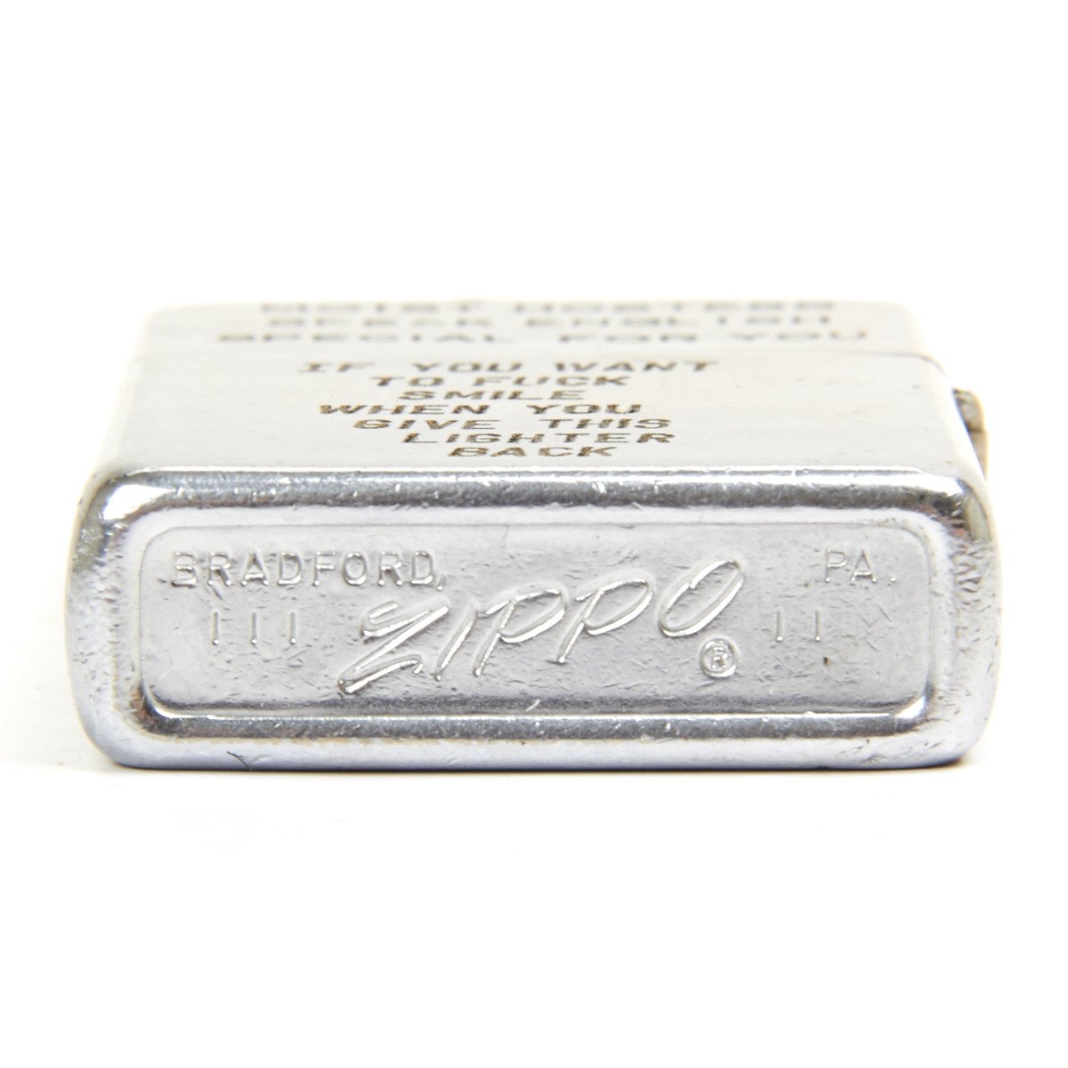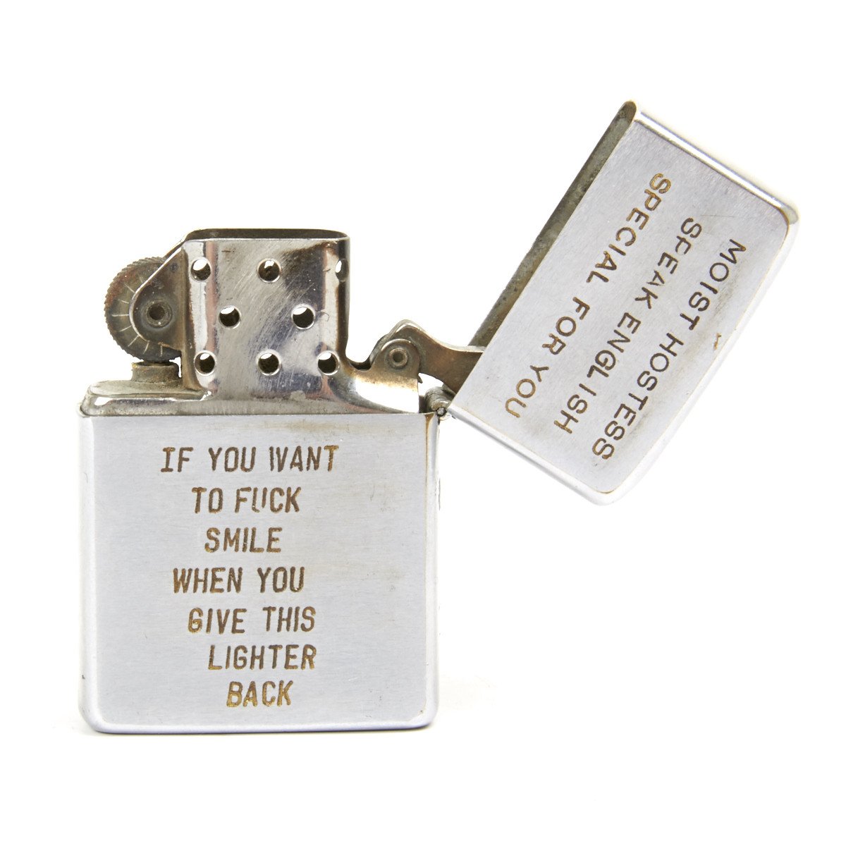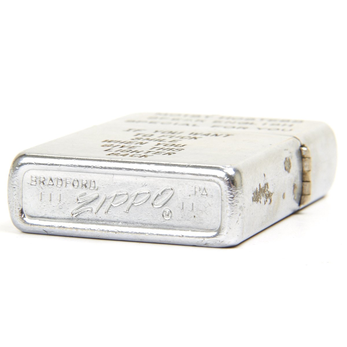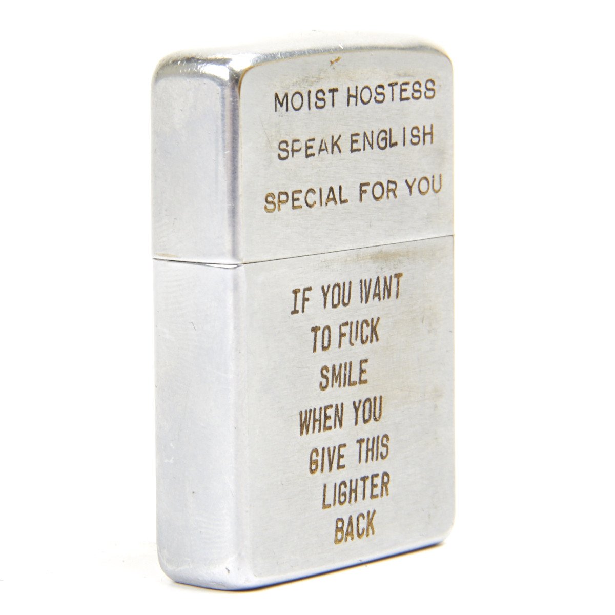 Original Item: One-of-a-kind. During the Vietnam was Zippo lighters were not only available for purchase in the PX (Post Exchange) where many consumer goods were sold, but also on the black market. Zippos could be customized with regimental cyphers and engravings, and were purchased by GIs returning home as a memento of their military service in the specific theatre of operation. They were also used as promotional items by bars and brothels and given to the best customers who would take the lighters into the field, barracks, etc and work as advertising to the GIs friends and fellow soldiers.