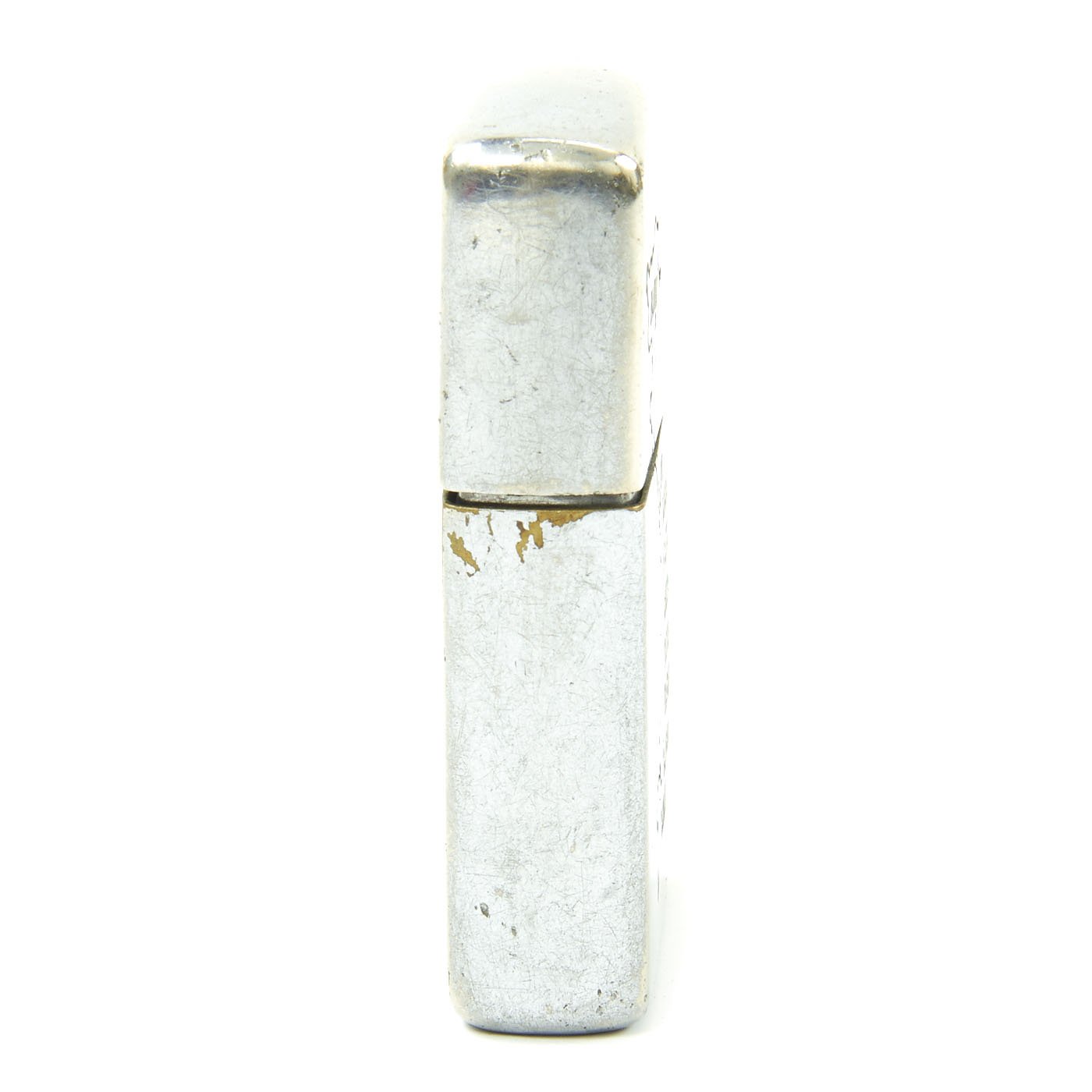 Lighter appears to be in functional condition, though we have not added fluid. The underside of the lighter bears the ZIPPO logo and Bradford, PA and 6 hash marks or vertical lines which denotes the manufacture date as 1968.