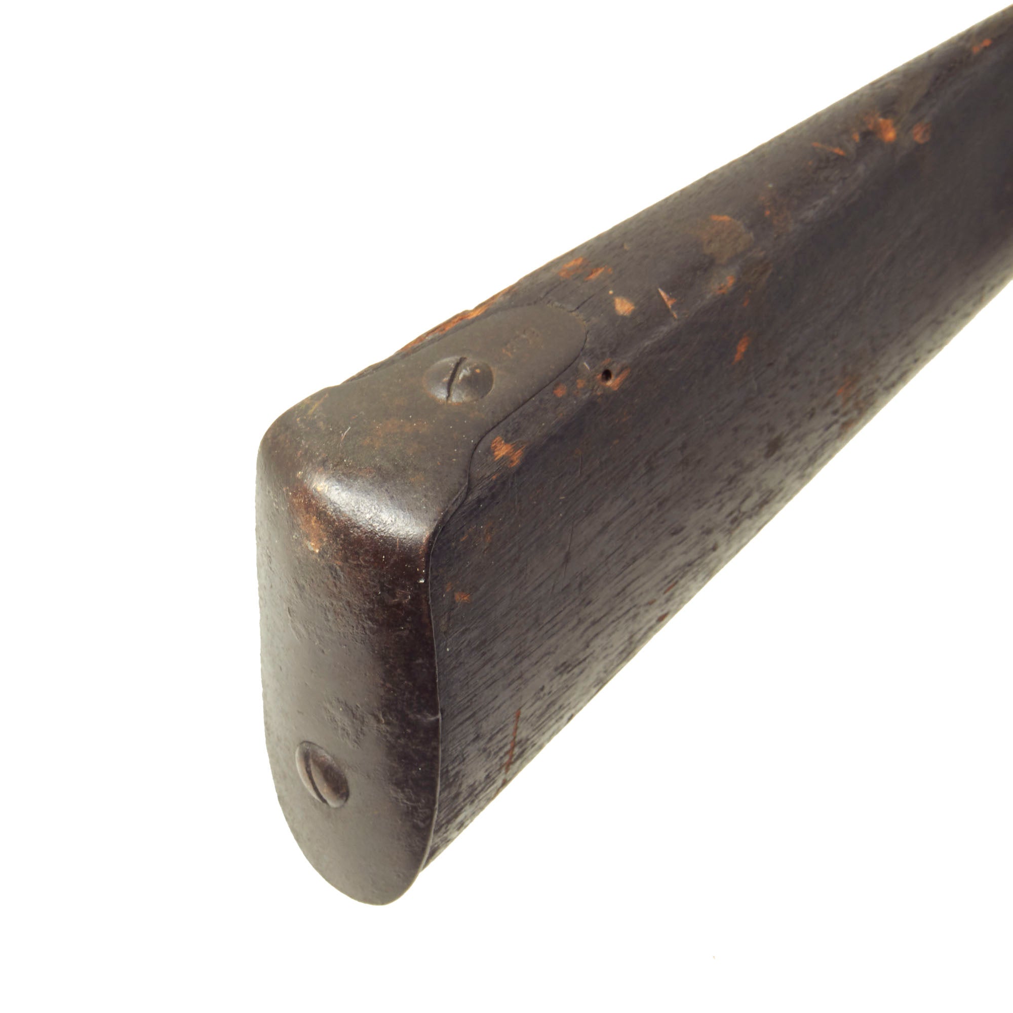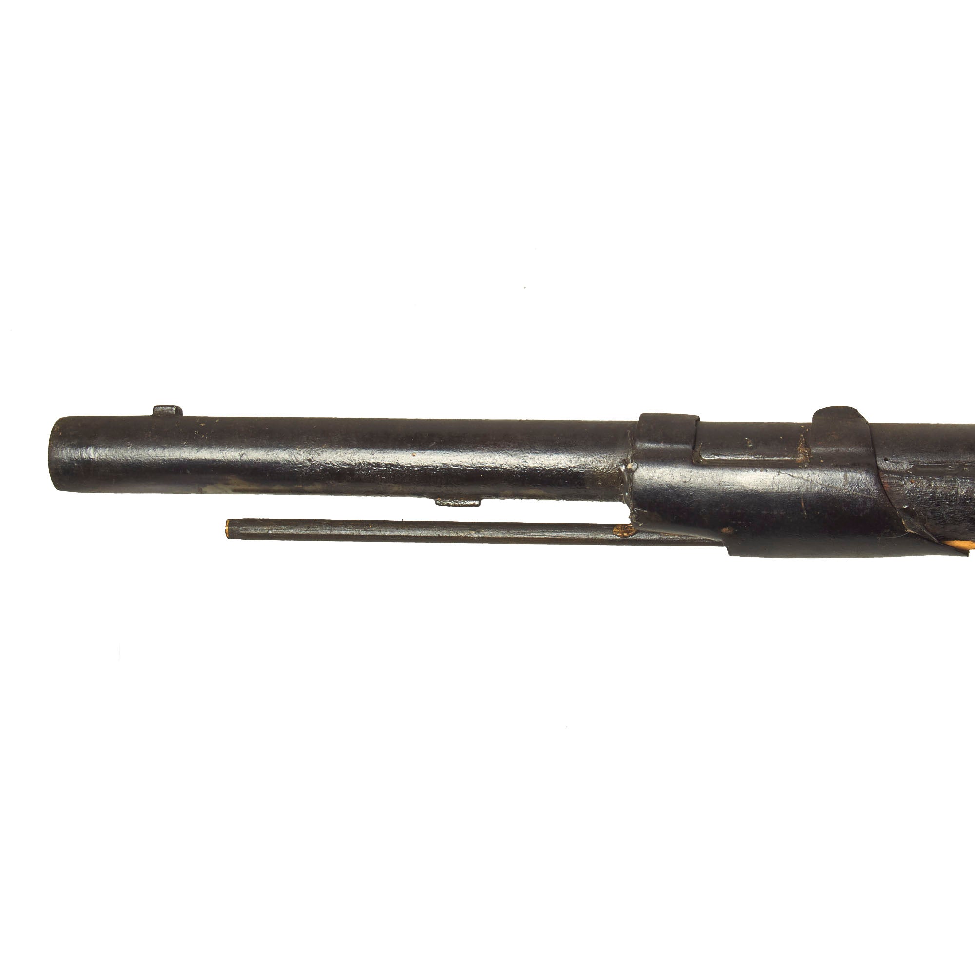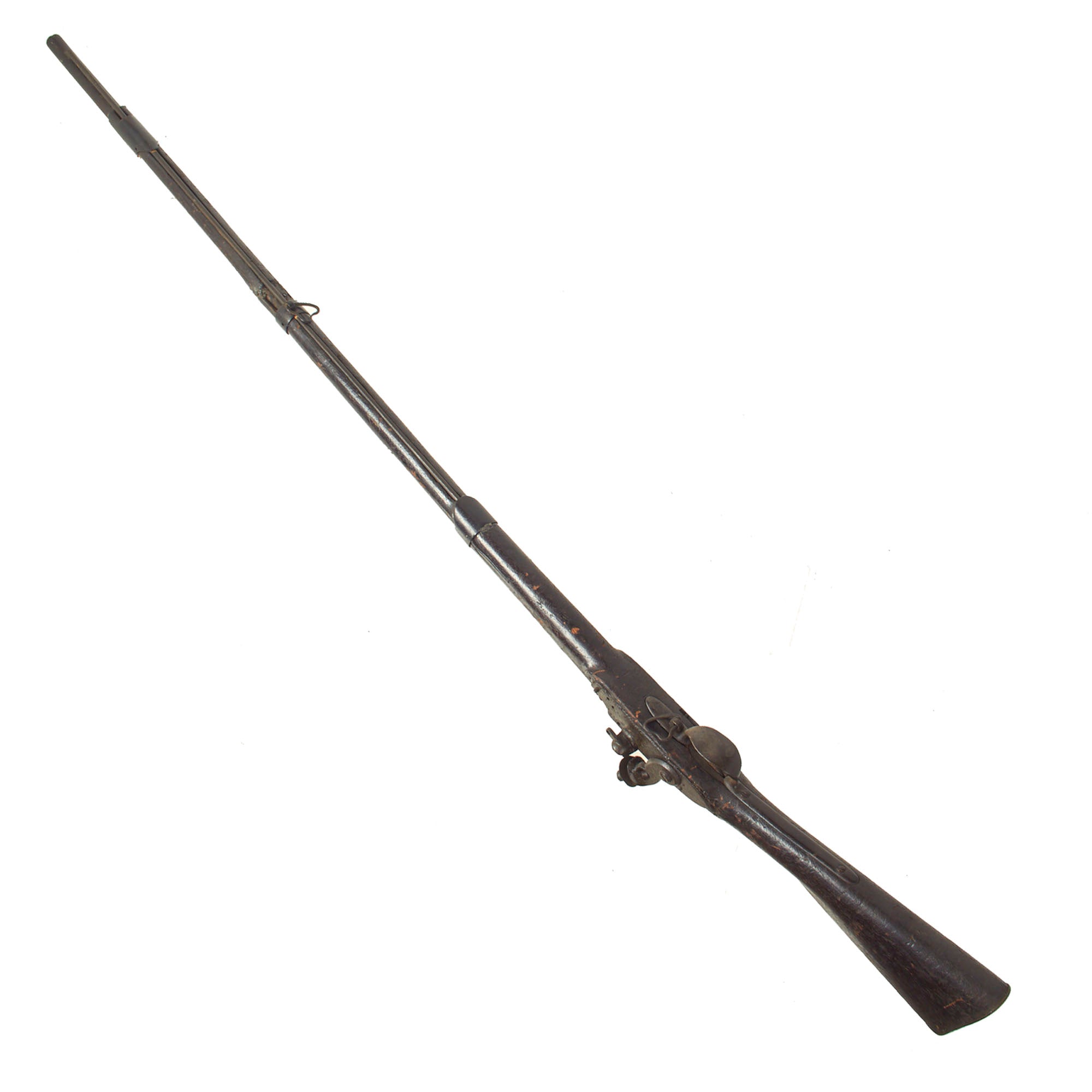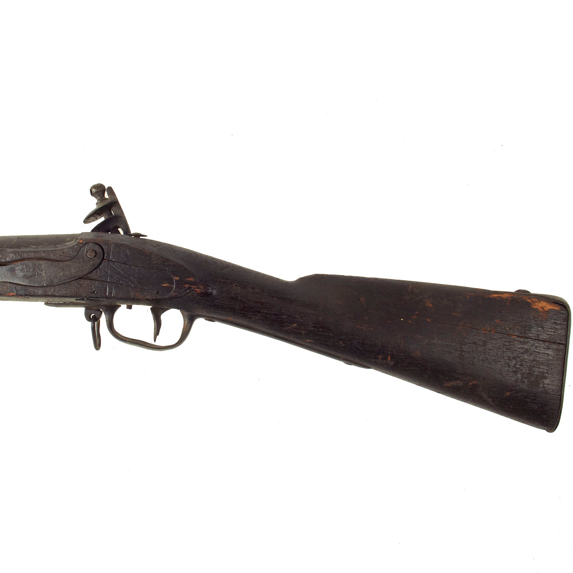 Later on, many U.S. Flintlock muskets were converted to Percussion, both at local and national level, as it was a far more reliable ignition system, which also took less time to load. This example was not converted, possibly due to the poor condition that it was in at the time. Here we offer a Grade 2 "As Found" U.S. M-1795 .69 Caliber Flintlock Infantry Musket marked with U.S. next to the flash pan, and with SPRINGFIELD on the Lock Plate in an arc under a Federal Eagle. These can be hard to see on the lock plate due to the oxidation, but they are definitely there. Many of these were contract made, but this example was made at the United States Armory and Arsenal at Springfield itself, located in Springfield Massachusetts. In spite of the condition, it still has a clear 1809 date on the lock plate tail.