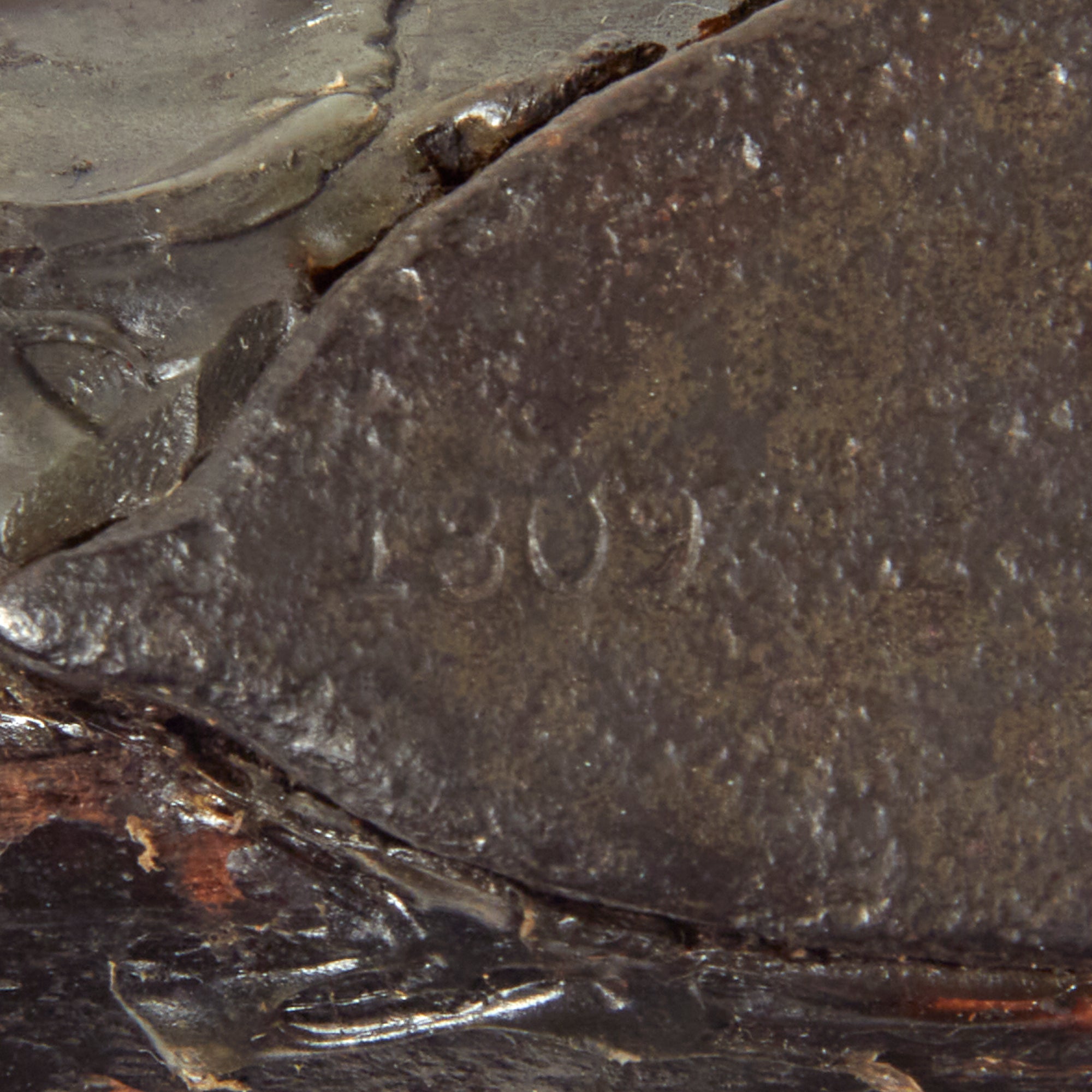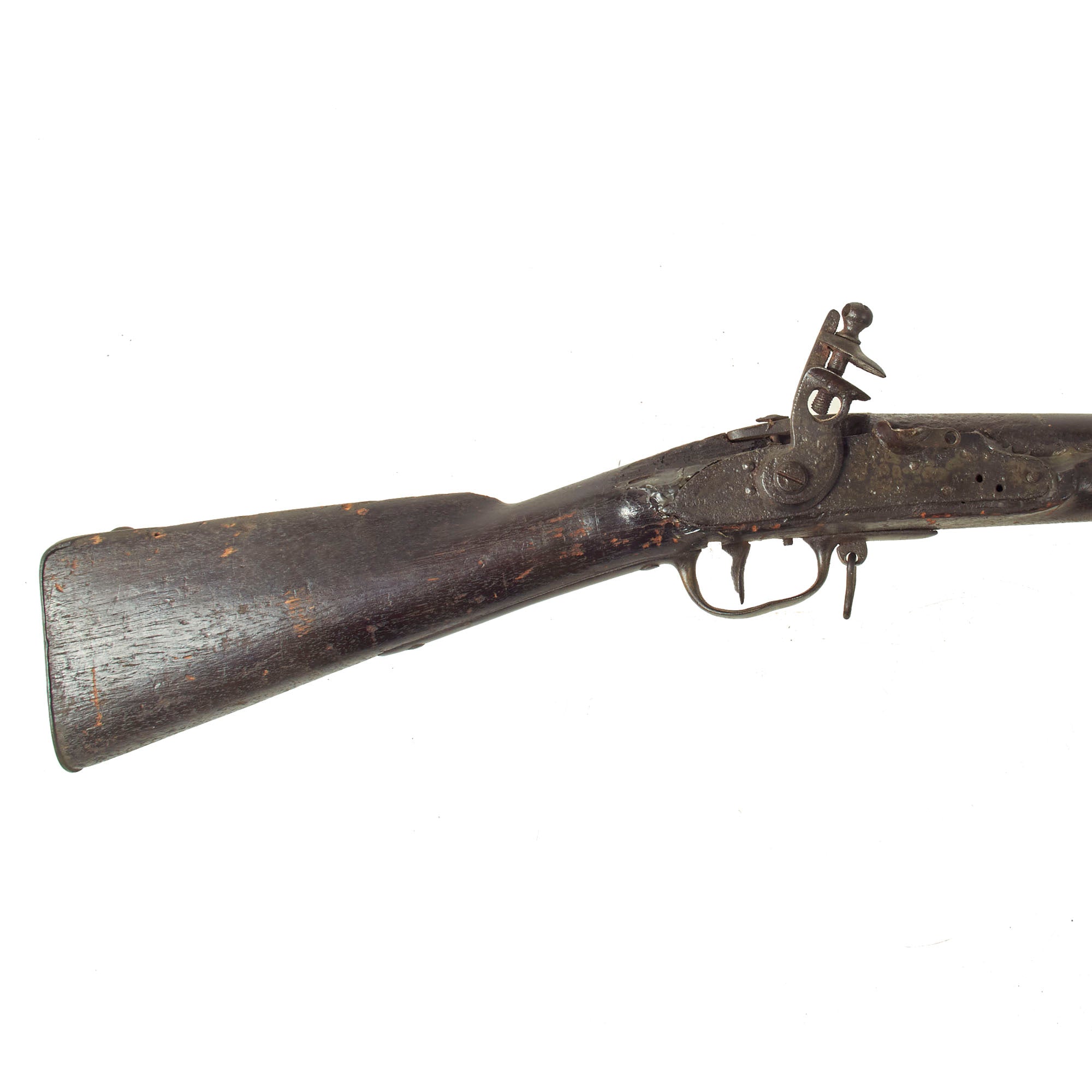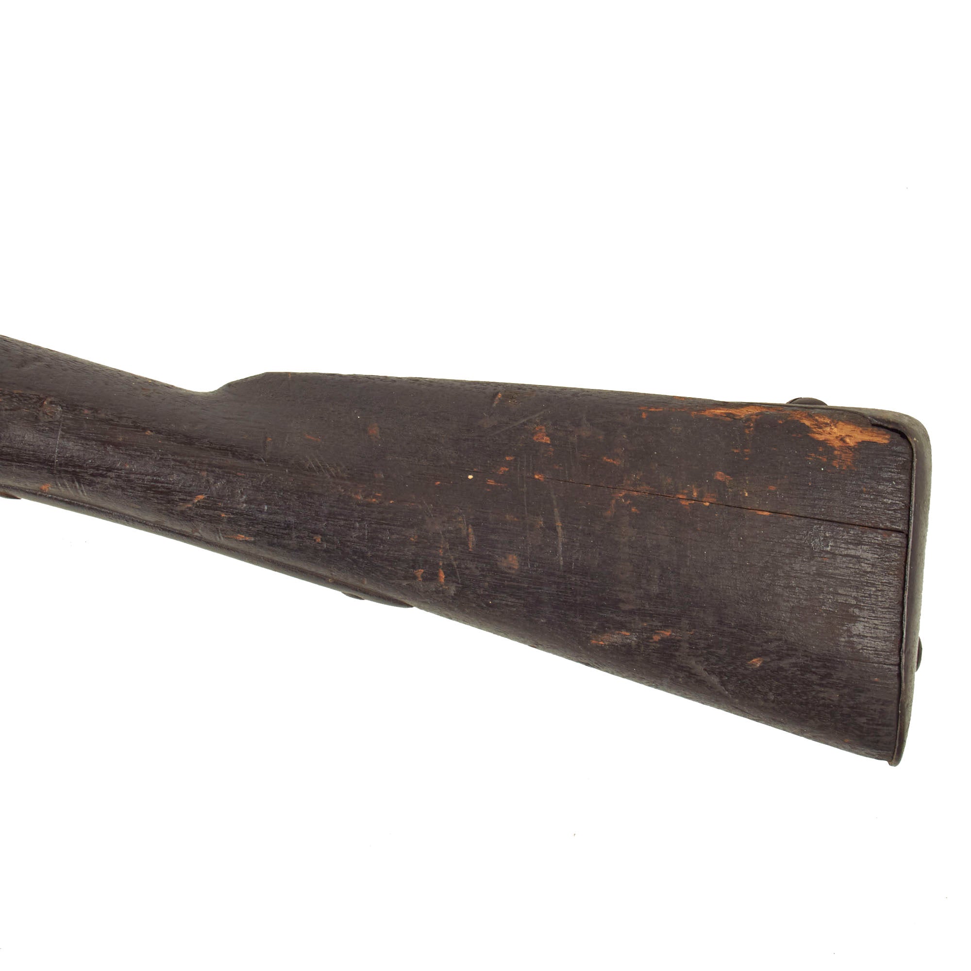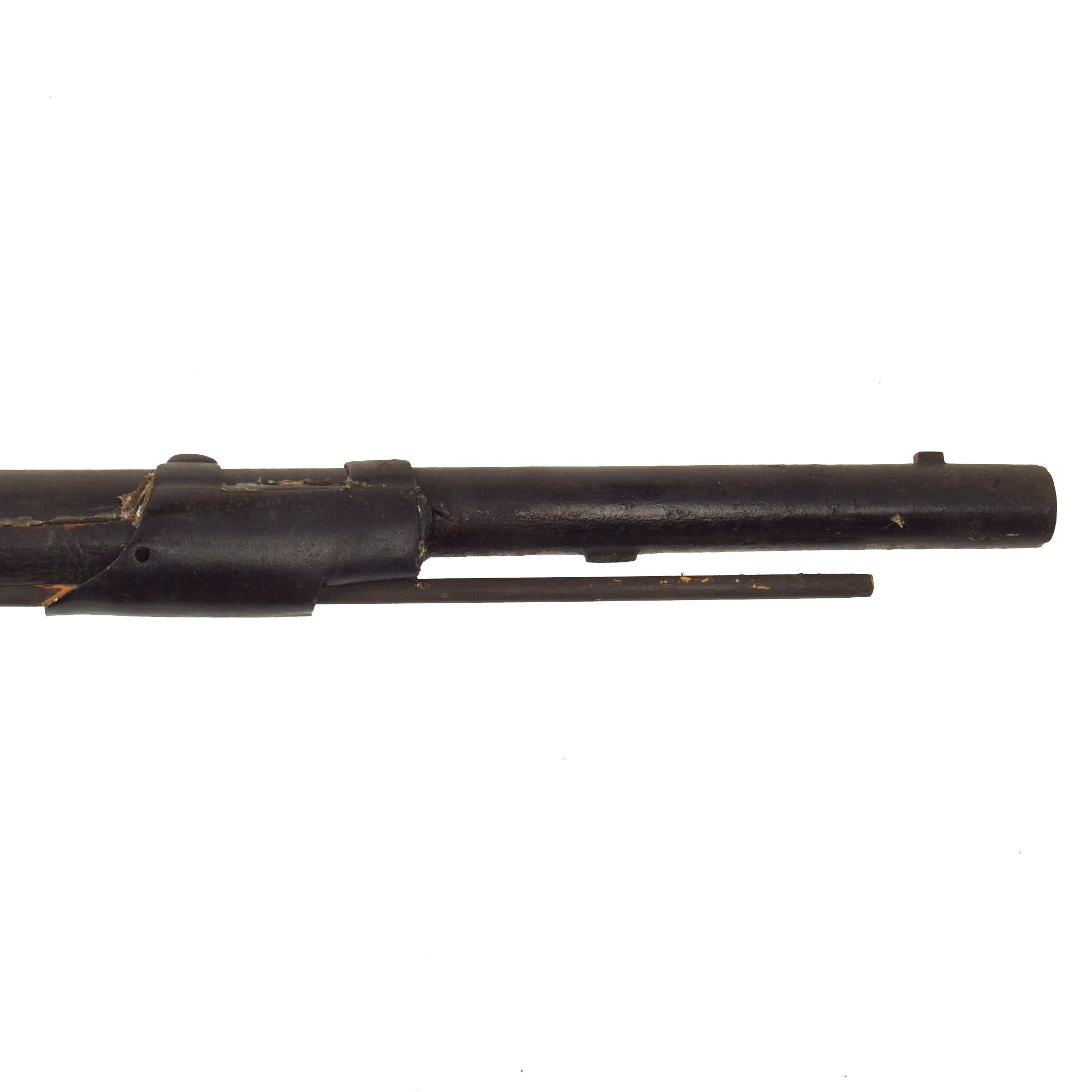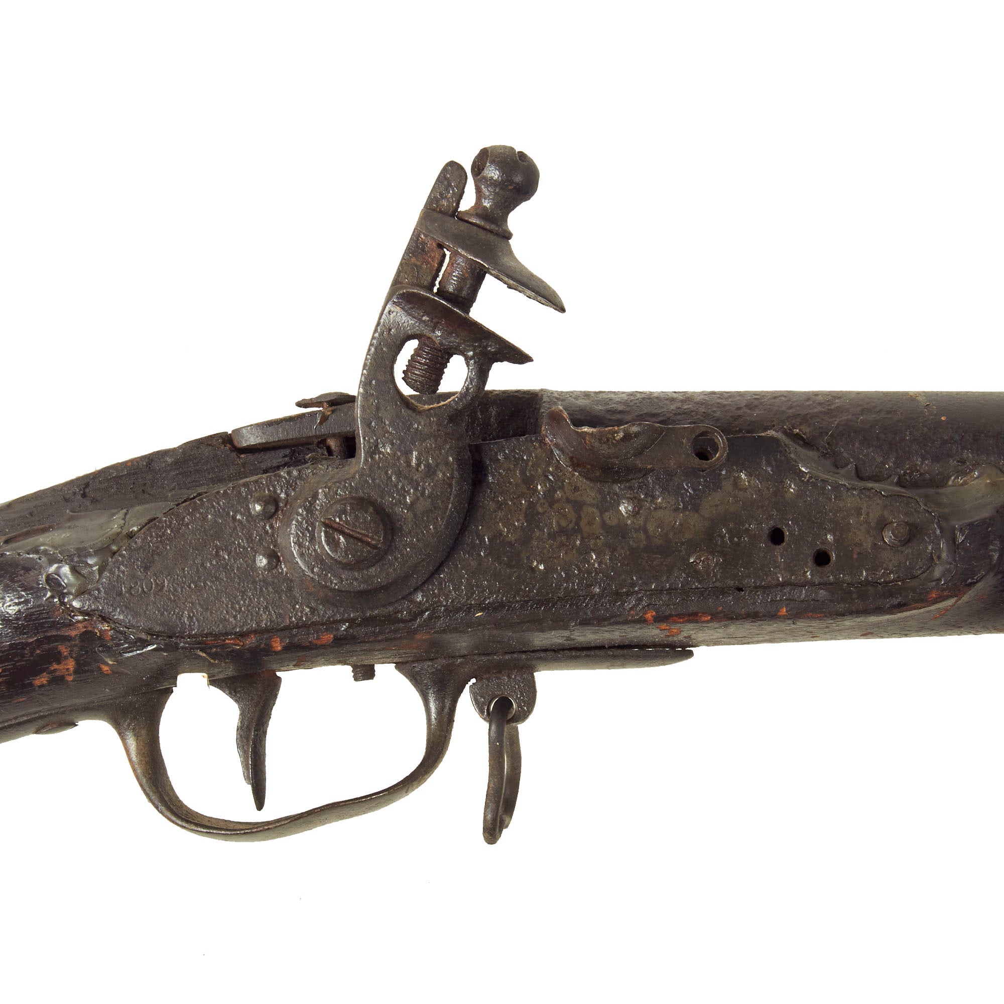 Later on, many U.S. Flintlock muskets were converted to Percussion, both at local and national level, as it was a far more reliable ignition system, which also took less time to load. This example was not converted, possibly due to the poor condition that it was in at the time. Here we offer a Grade 2 "As Found" U.S. M-1795 .69 Caliber Flintlock Infantry Musket marked with U.S. next to the flash pan, and with SPRINGFIELD on the Lock Plate in an arc under a Federal Eagle. These can be hard to see on the lock plate due to the oxidation, but they are definitely there. Many of these were contract made, but this example was made at the United States Armory and Arsenal at Springfield itself, located in Springfield Massachusetts. In spite of the condition, it still has a clear 1809 date on the lock plate tail.