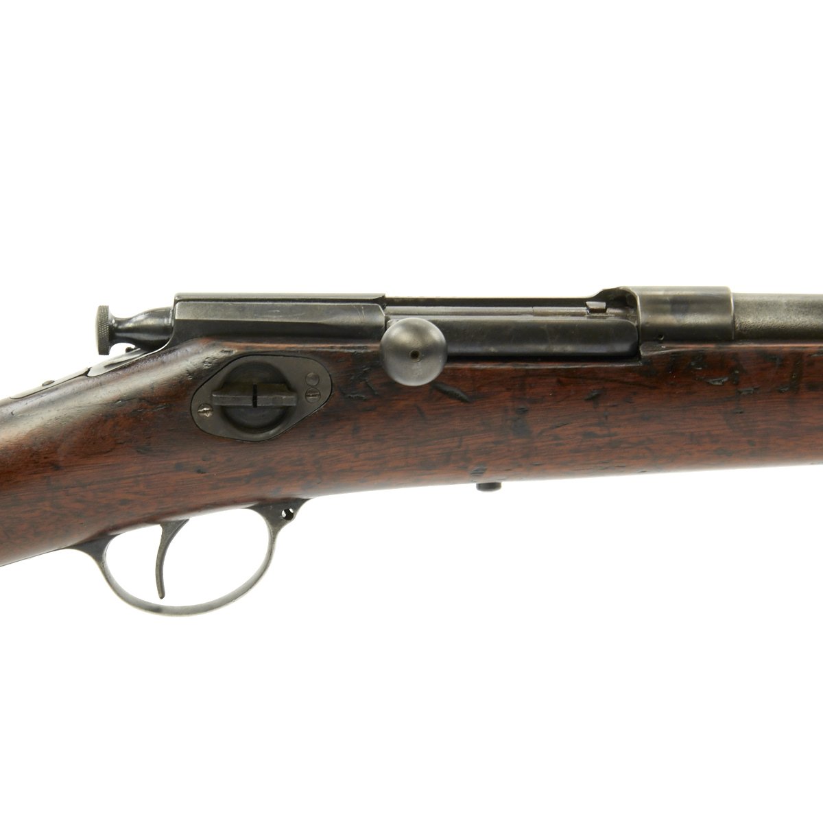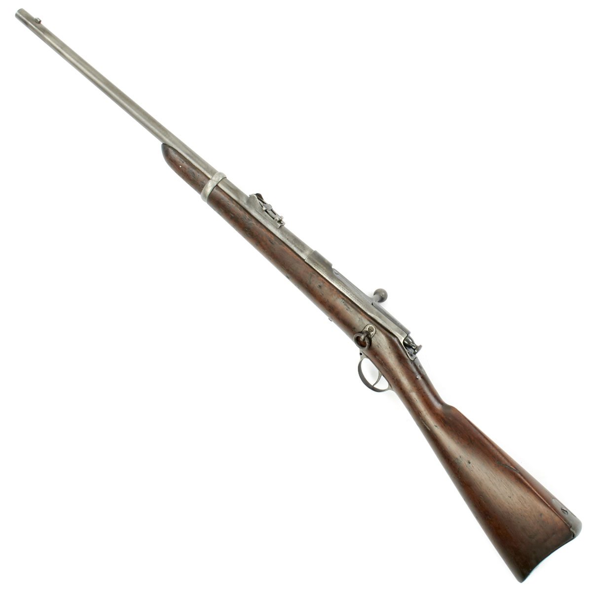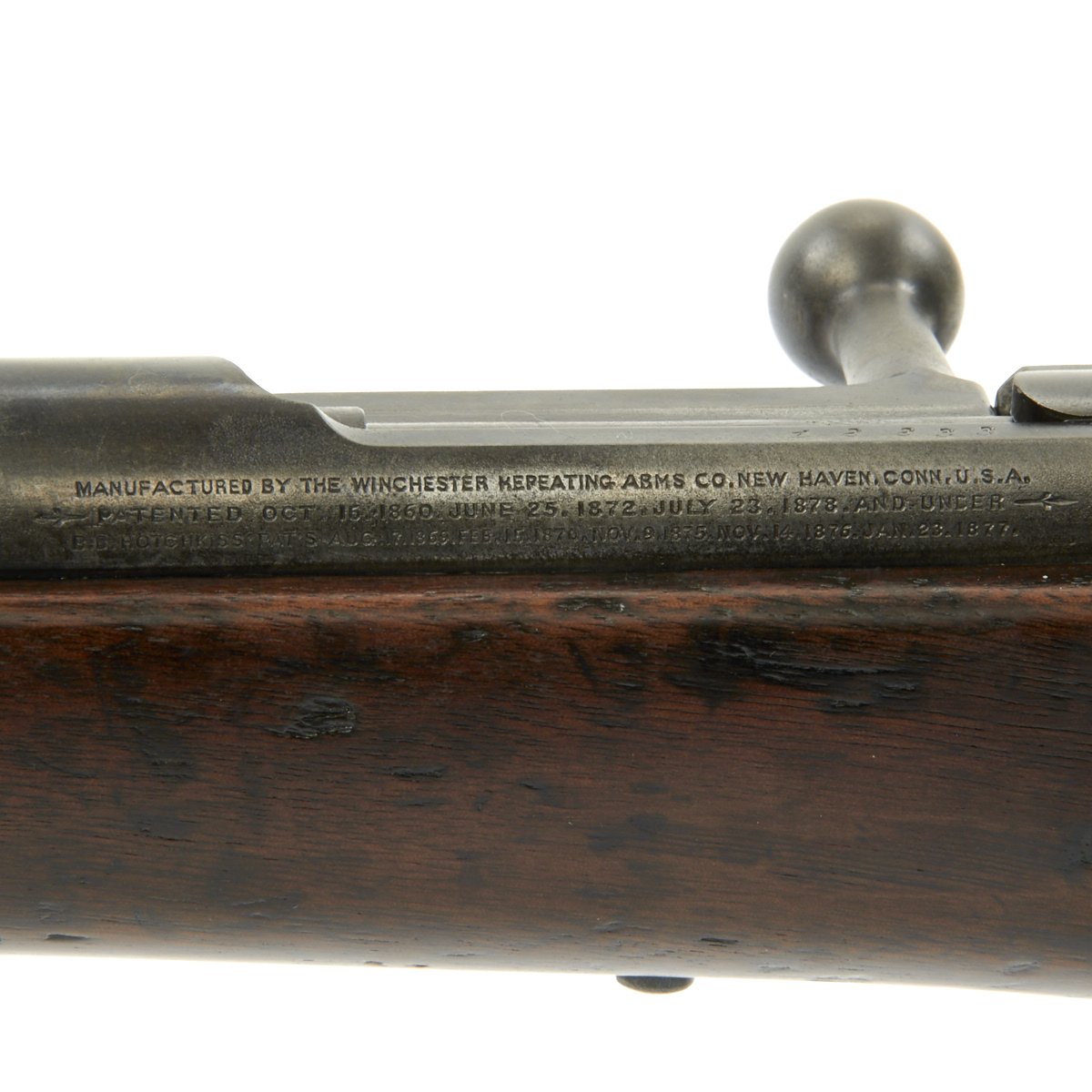 Original Item: Only One Available. The Winchester Hotchkiss was a bolt-action repeating rifle patented by Benjamin B. Hotchkiss in 1876 and produced by the Winchester Repeating Arms Company and Springfield Armory from 1878. The Hotchkiss, like most early bolt-actions, had a single rear locking lug integral with the bolt handle, but was unique in feeding multiple rounds from a tubular buttstock magazine similar to the Spencer rifle. The .45-70 Hotchkiss was acquired in limited numbers by the US Navy as the M1879, and (in a slightly modified version) by the US Army and several state militias as the M1883, making it the first center-fire bolt-action repeater to be adopted by any major military.