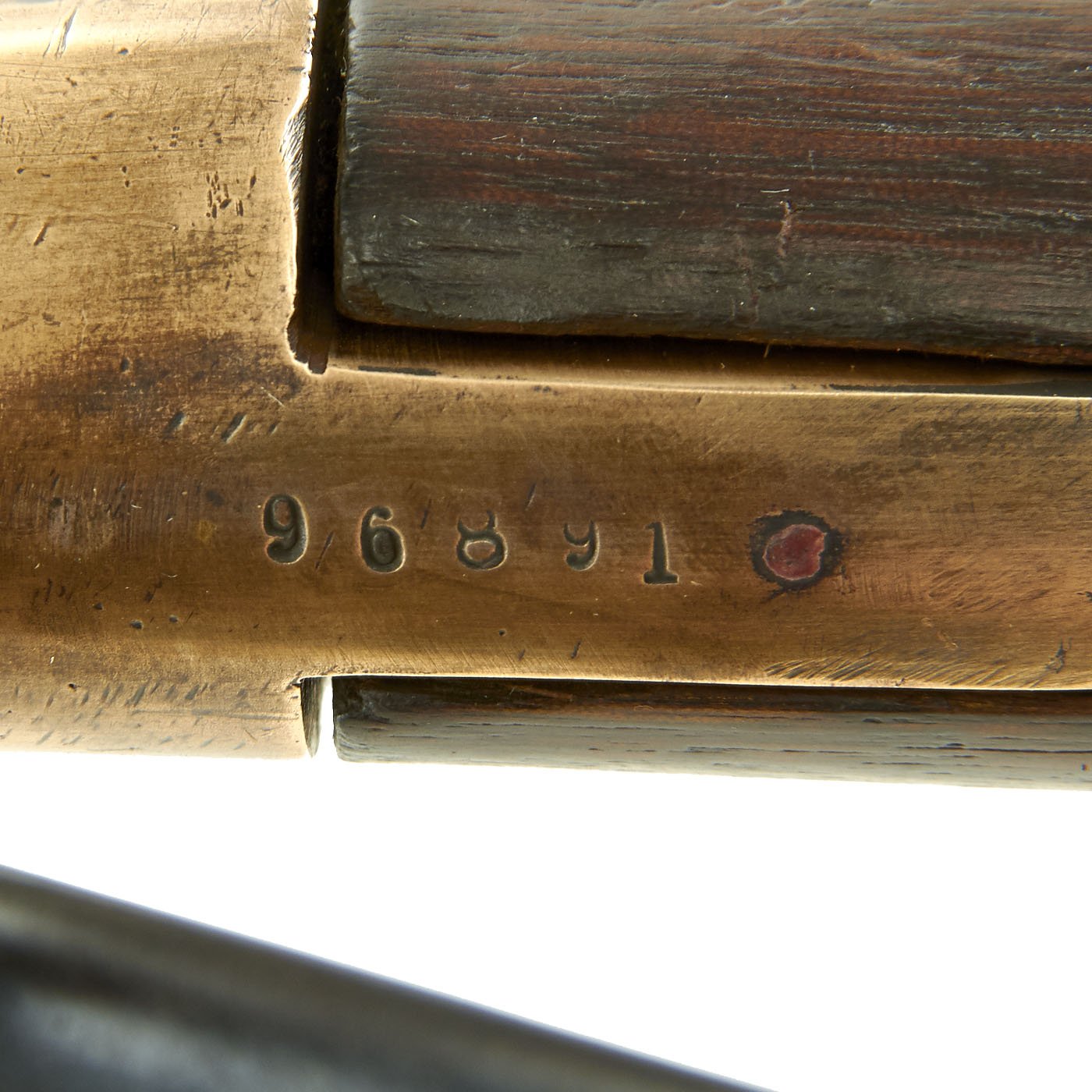The carbine features the standard carbine front sight attached to the front band and a simple 2 leaf rear sight. The serial number is 96891, denoting the year of manufacture as 1872, just one year before the release of the Model of 1873. It is important to note that the model 1866 production continued throughout the 1870s and 1880s, so factory parts for other calibers were readily available. Model 1866 Winchesters between 25,000 – 149,000 are considered the "third model", which ended up being the most widely made model. The issues with the 1st and 2nd models had been ironed out, making this a very robust design.