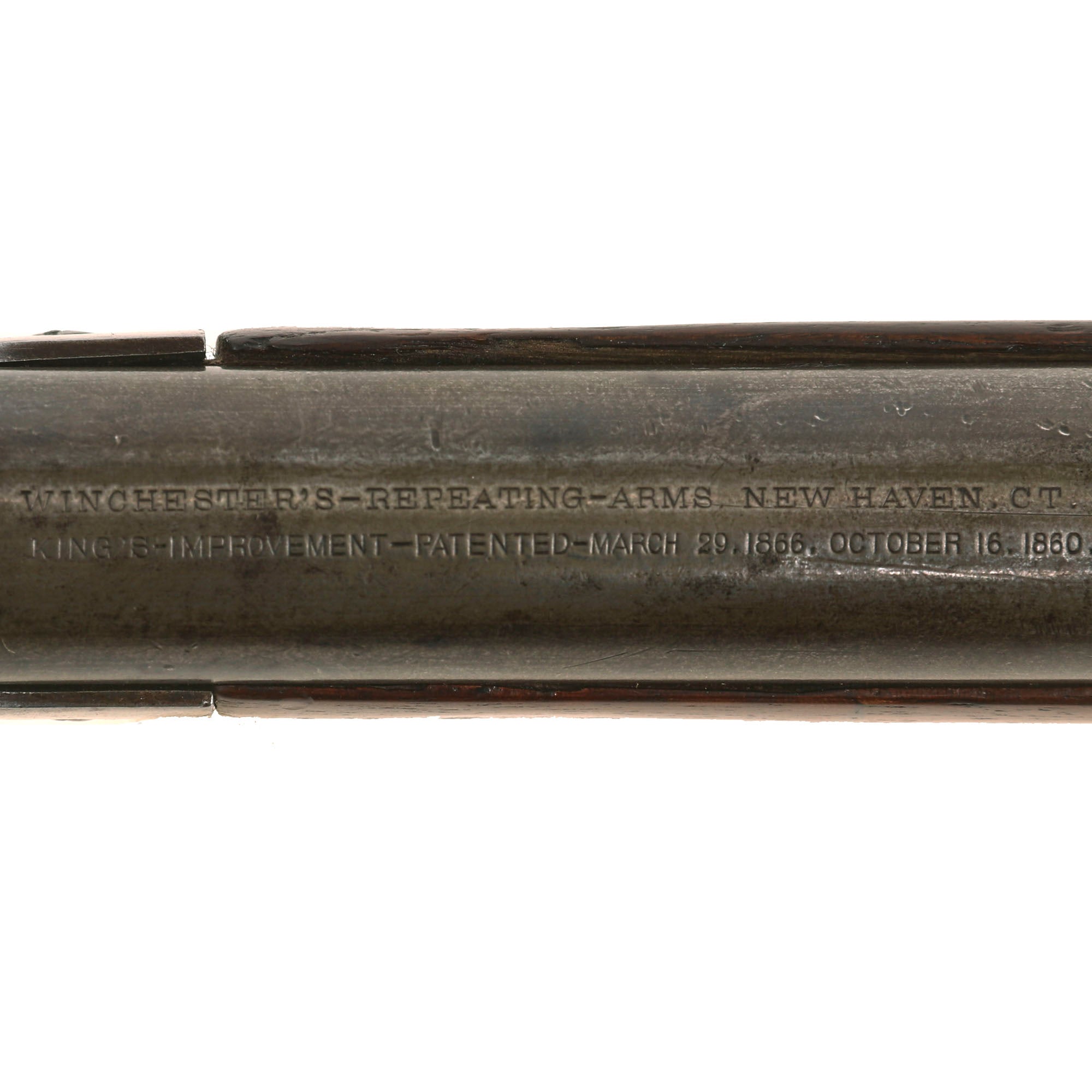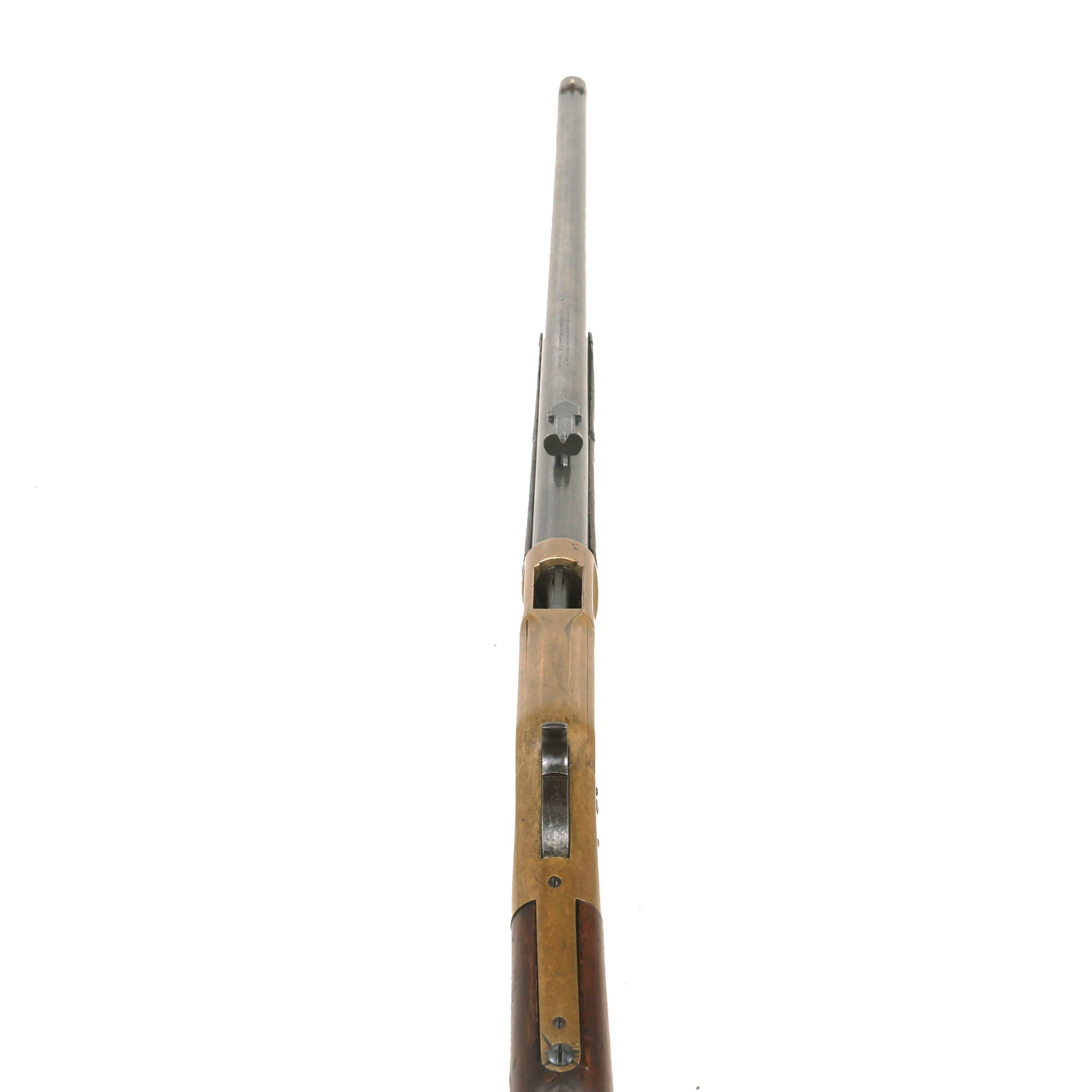 This example has seen fair amount of use, however the original barrel address markings are still fully legible, something very rare to see on a model 1866!:-