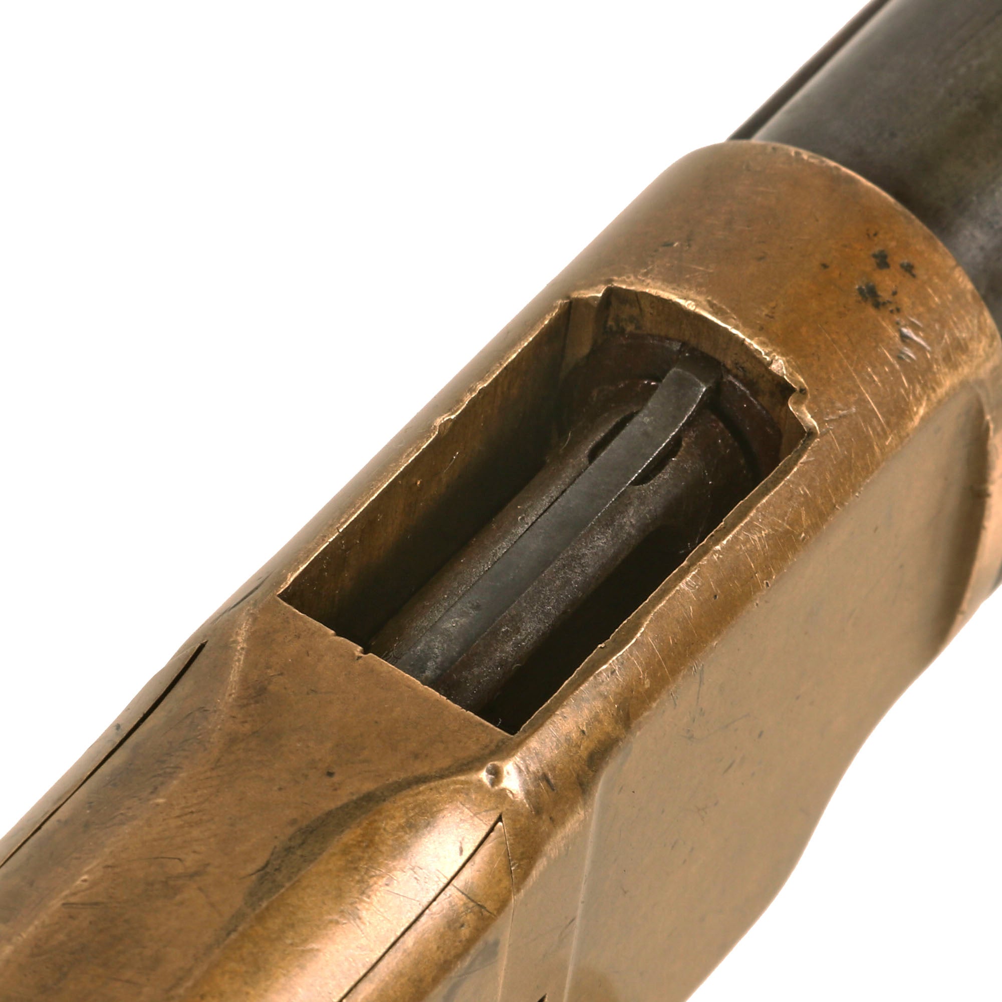 The rifle is in overall very nice condition, with a fantastic look. The action cycles well, and does not have any issues that we can see, though we did not do any tests to see if it can still feed correctly. The bore is still in very good condition, showing the five groove rifling clearly. It has a partly bright finish, showing some past oxidation and fouling, now removed, but no major issues. Most of the 1866's that we see have bores like a stovepipe, so this is definitely a prime example!