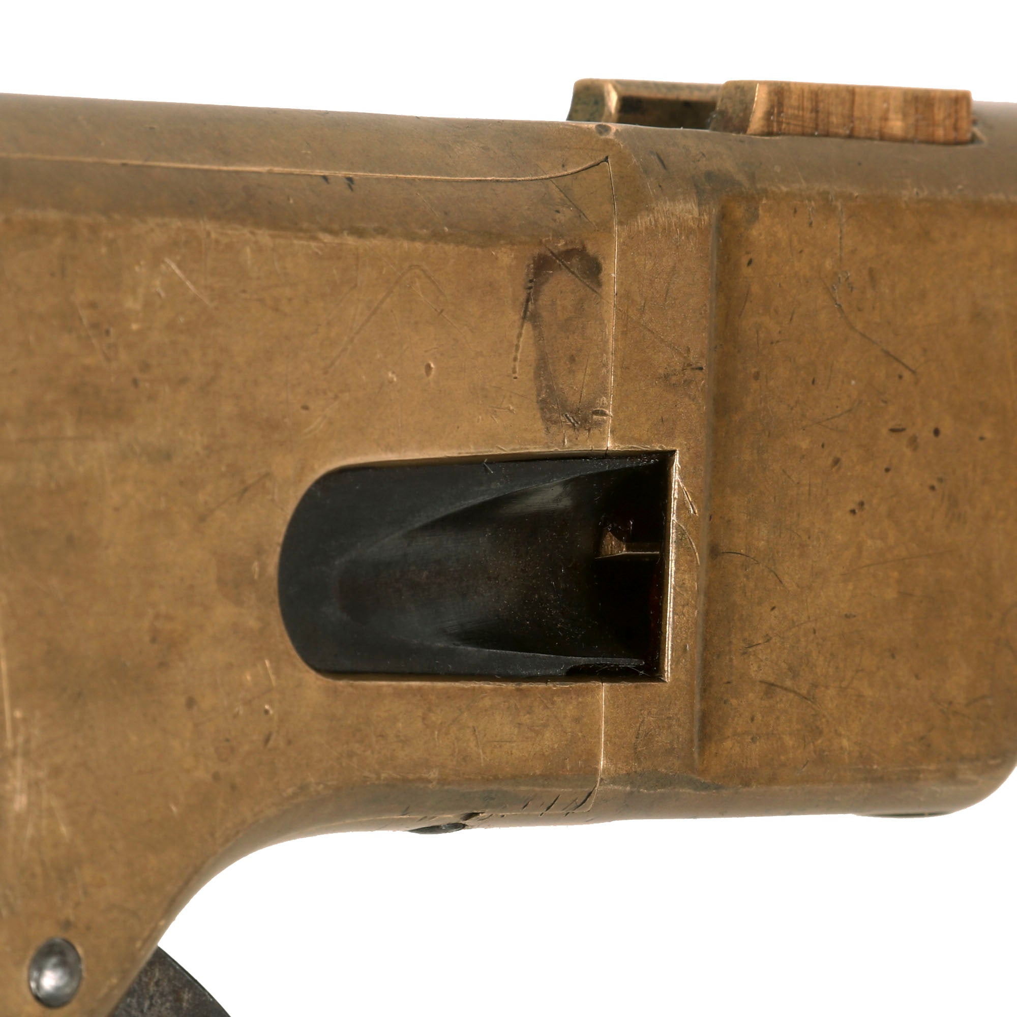 These antique guns are not sold in "live" condition, and are not tested for the the ability to feed or load any type of cartridge. They are sold as collector's items or as "wall hangers" not for use, and we make no guarantees regarding functionality aside from what is stated in the description. Any attempt at restoring an antique gun to be operational is strongly discouraged and is done so at the risk of the customer. By purchasing an antique gun from IMA you thereby release IMA, its employees and corporate officers from any and all liability associated with use of our Antique guns.
