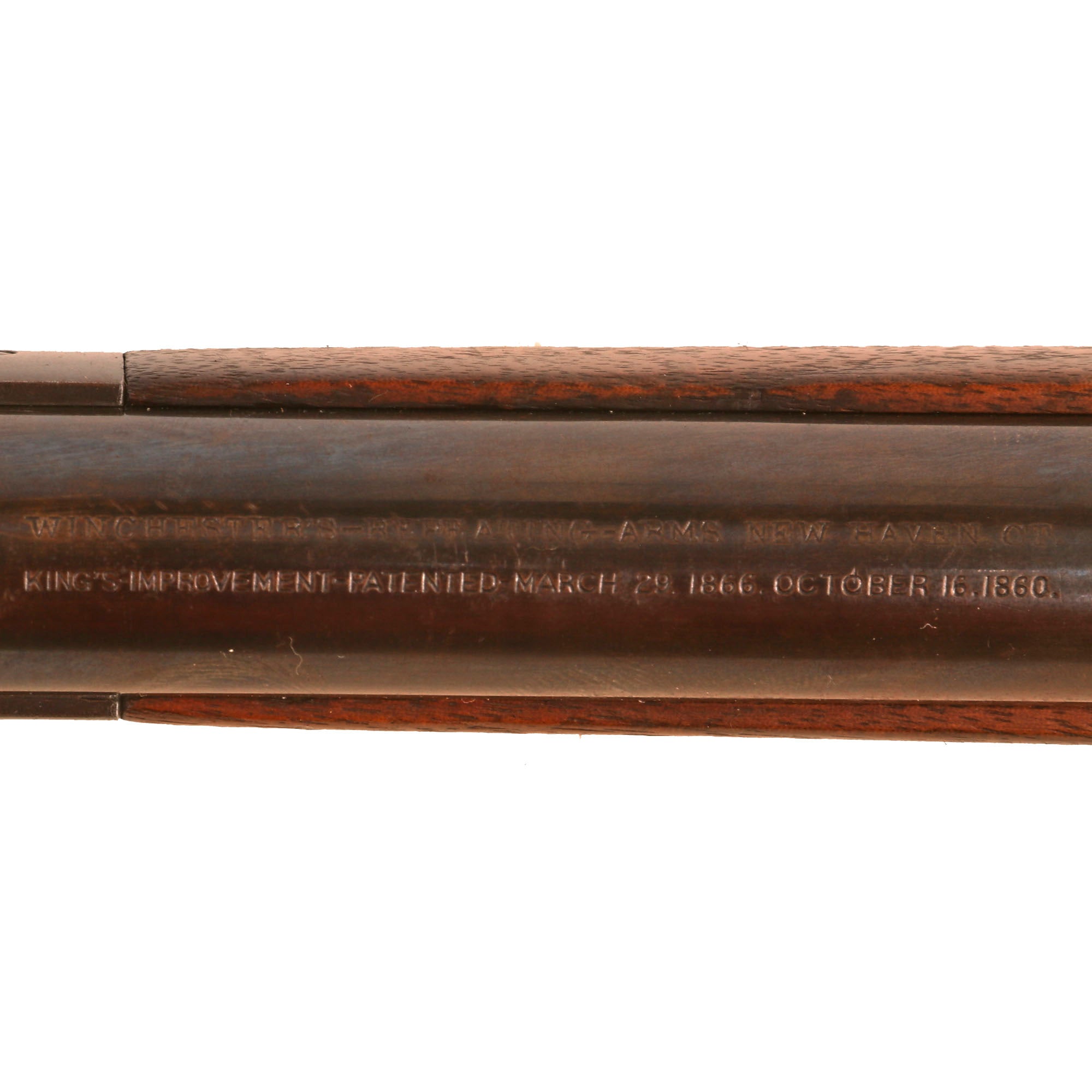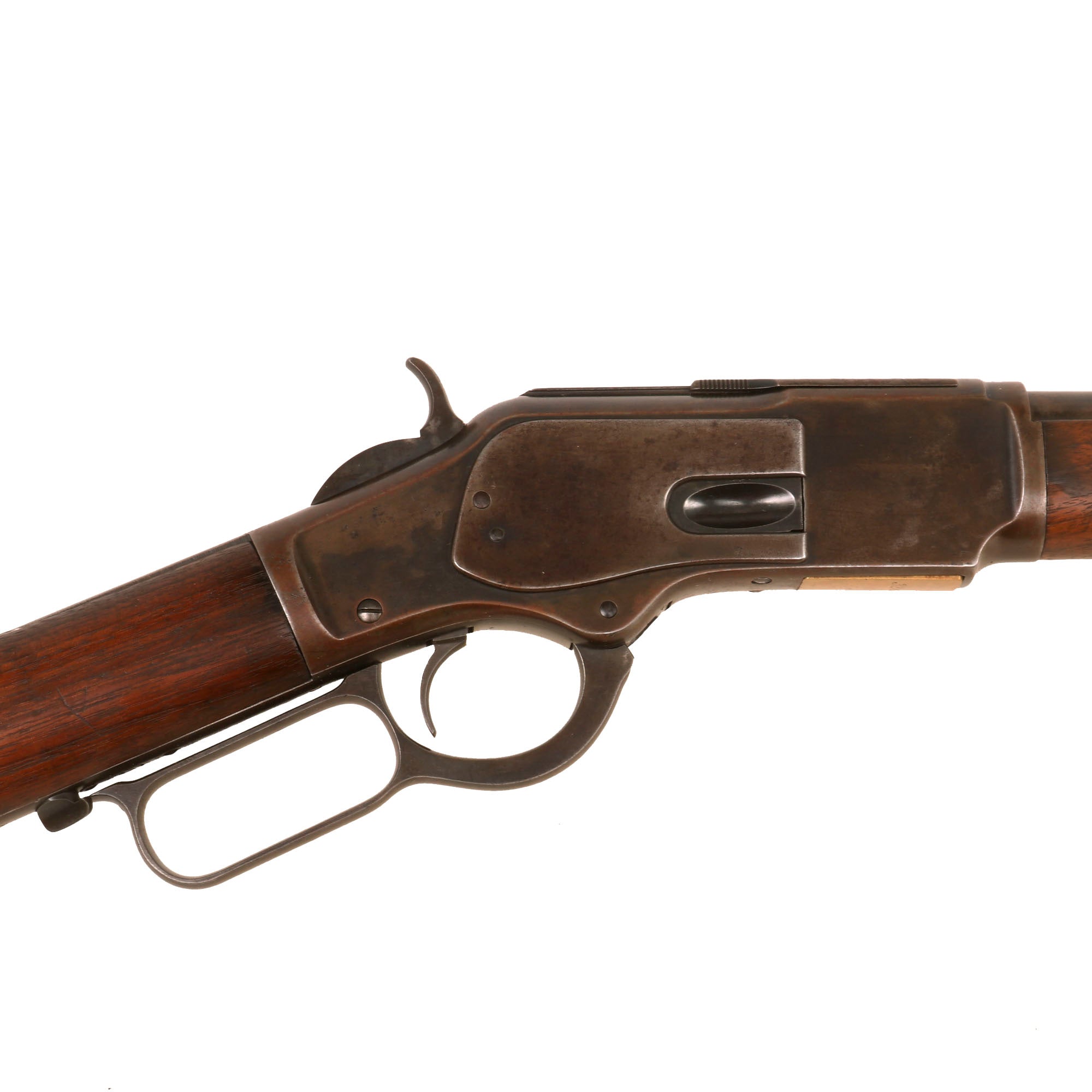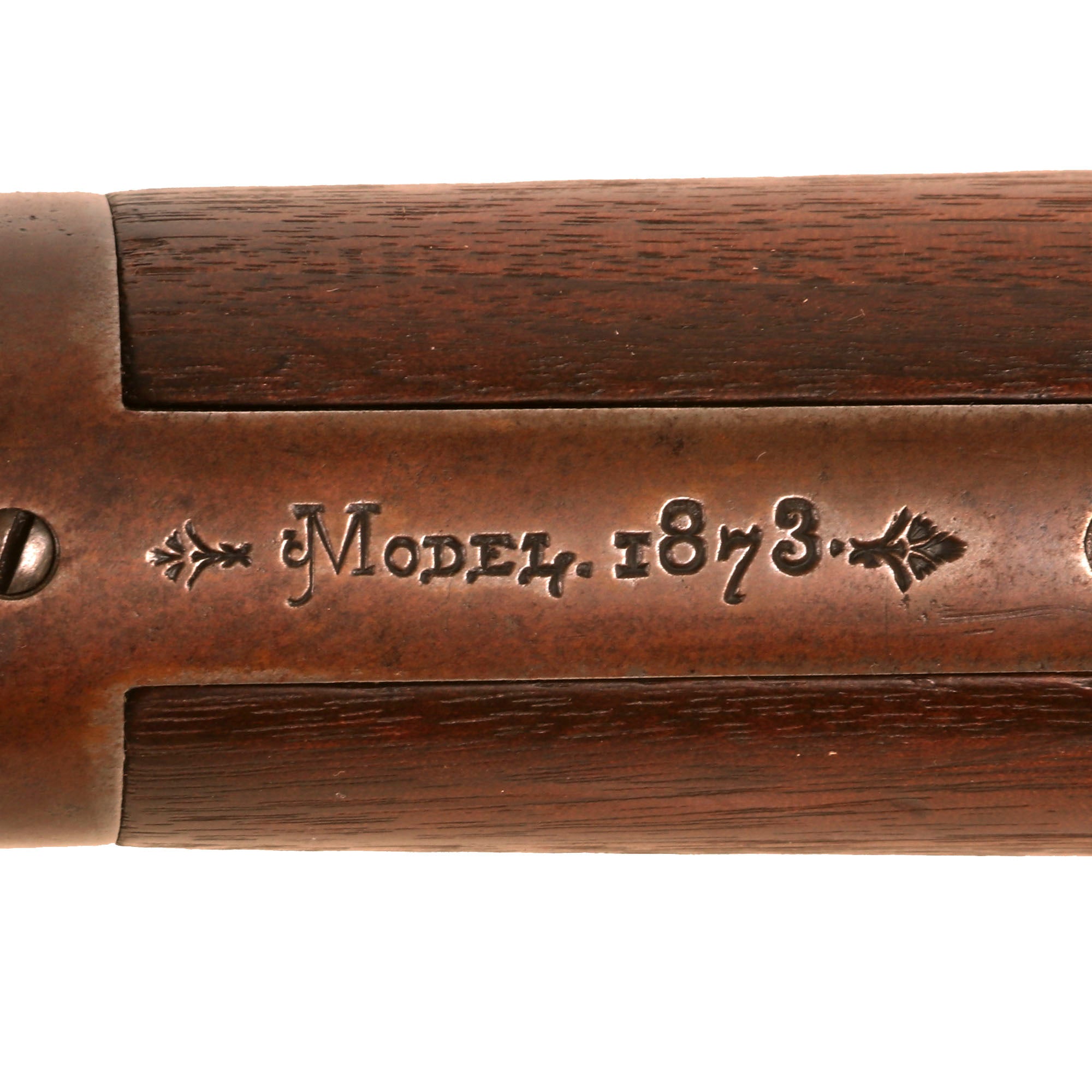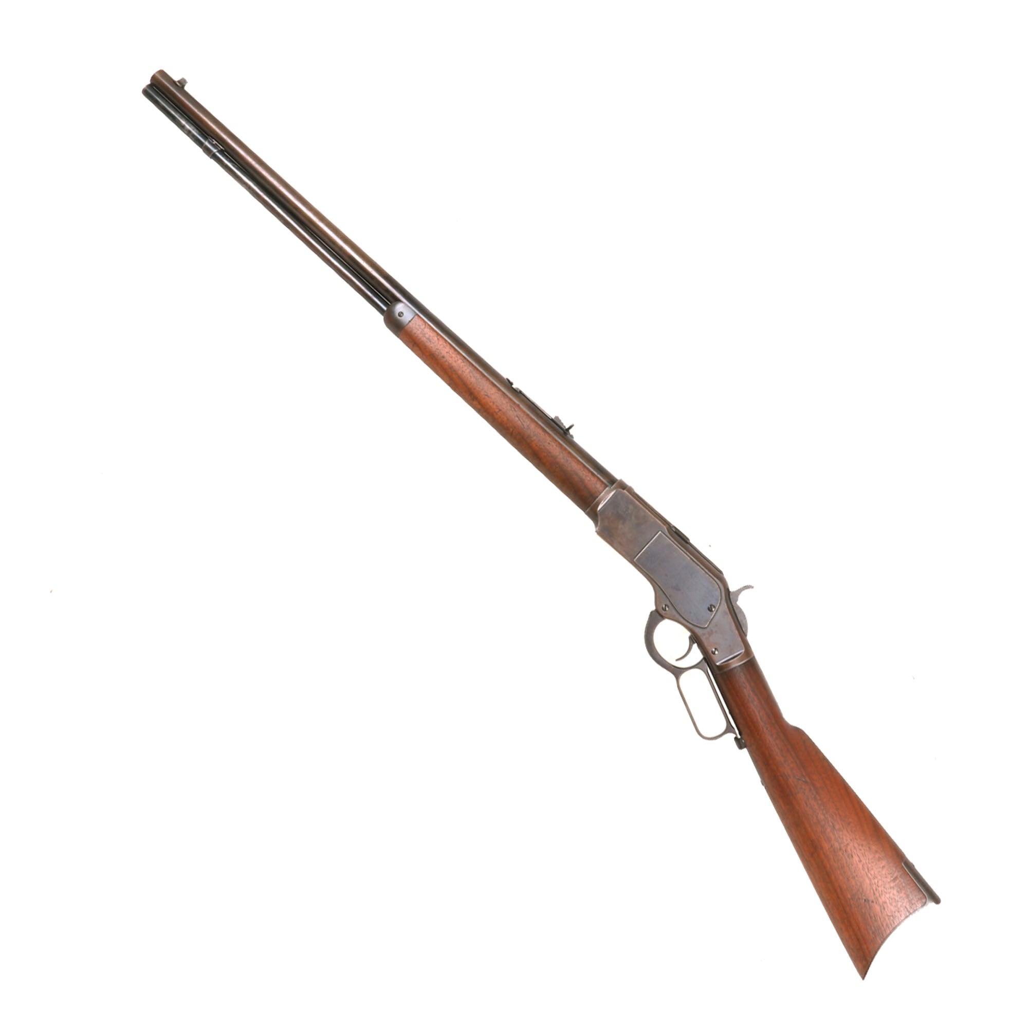 Original Item: Only One Available. "The Gun that Won the West!" This lovely lightly used repeating rifle is in .32-20 Winchester caliber, correctly marked with 32 W.C.F. over the chamber and 32 CAL. on the brass carrier block. It features a very nice 24 inch round barrel and full-length magazine tube. As with all examples, it is marked MODEL. 1873. on the upper receiver tang. Features a classic front sight with a replaced steel blade and "Flat-top" rear adjustable sight. The serial number is 257468B, denoting the year of manufacture as 1888.