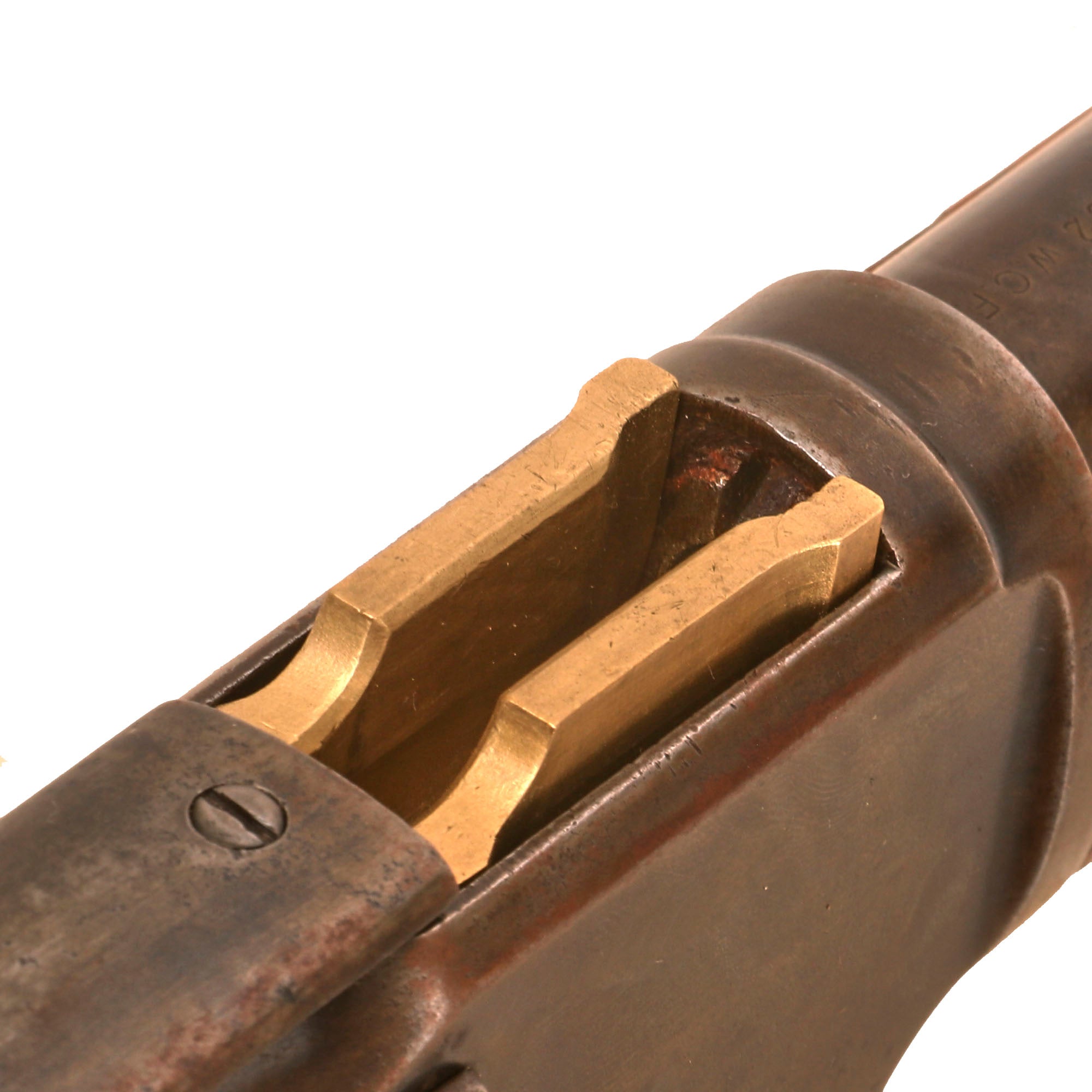 These antique guns are not sold in "live" condition, and are not tested for the the ability to feed or load any type of cartridge. They are sold as collector's items or as "wall hangers" not for use, and we make no guarantees regarding functionality aside from what is stated in the description. Any attempt at restoring an antique gun to be operational is strongly discouraged and is done so at the risk of the customer. By purchasing an antique gun from IMA you thereby release IMA, its employees and corporate officers from any and all liability associated with use of our Antique guns.