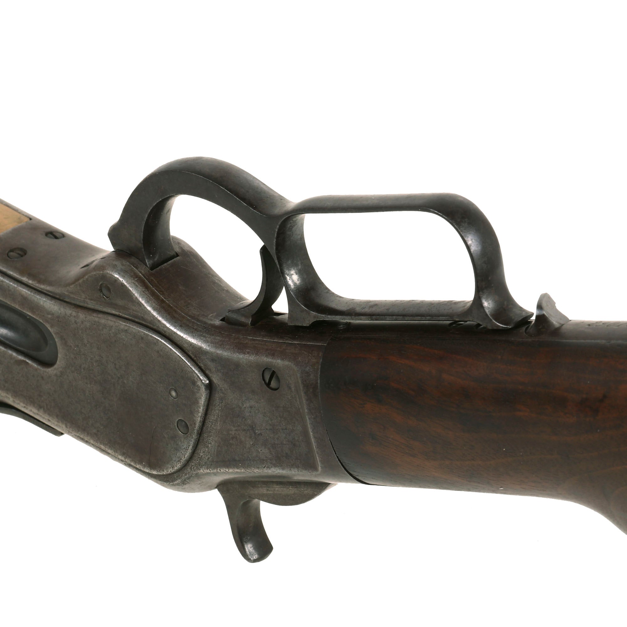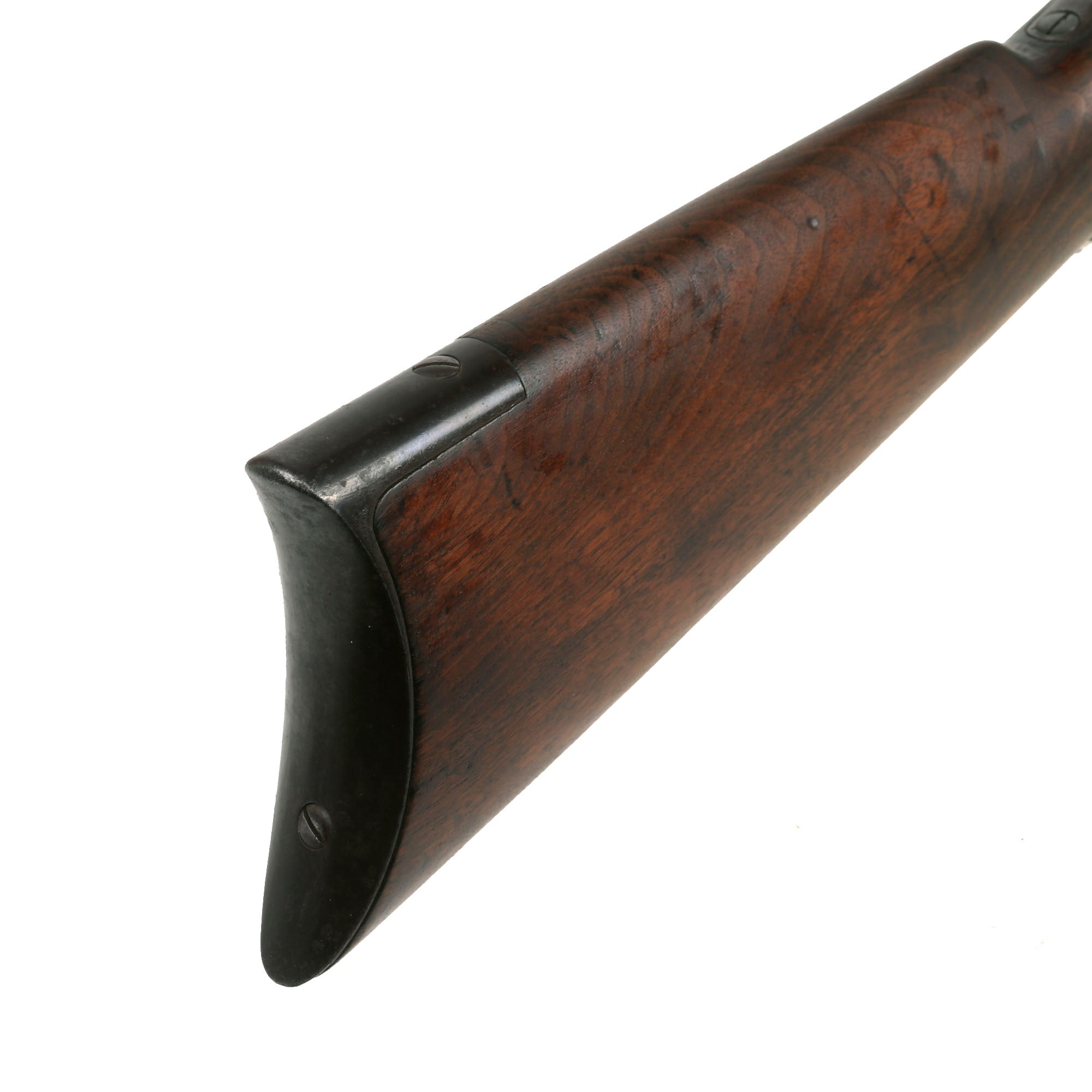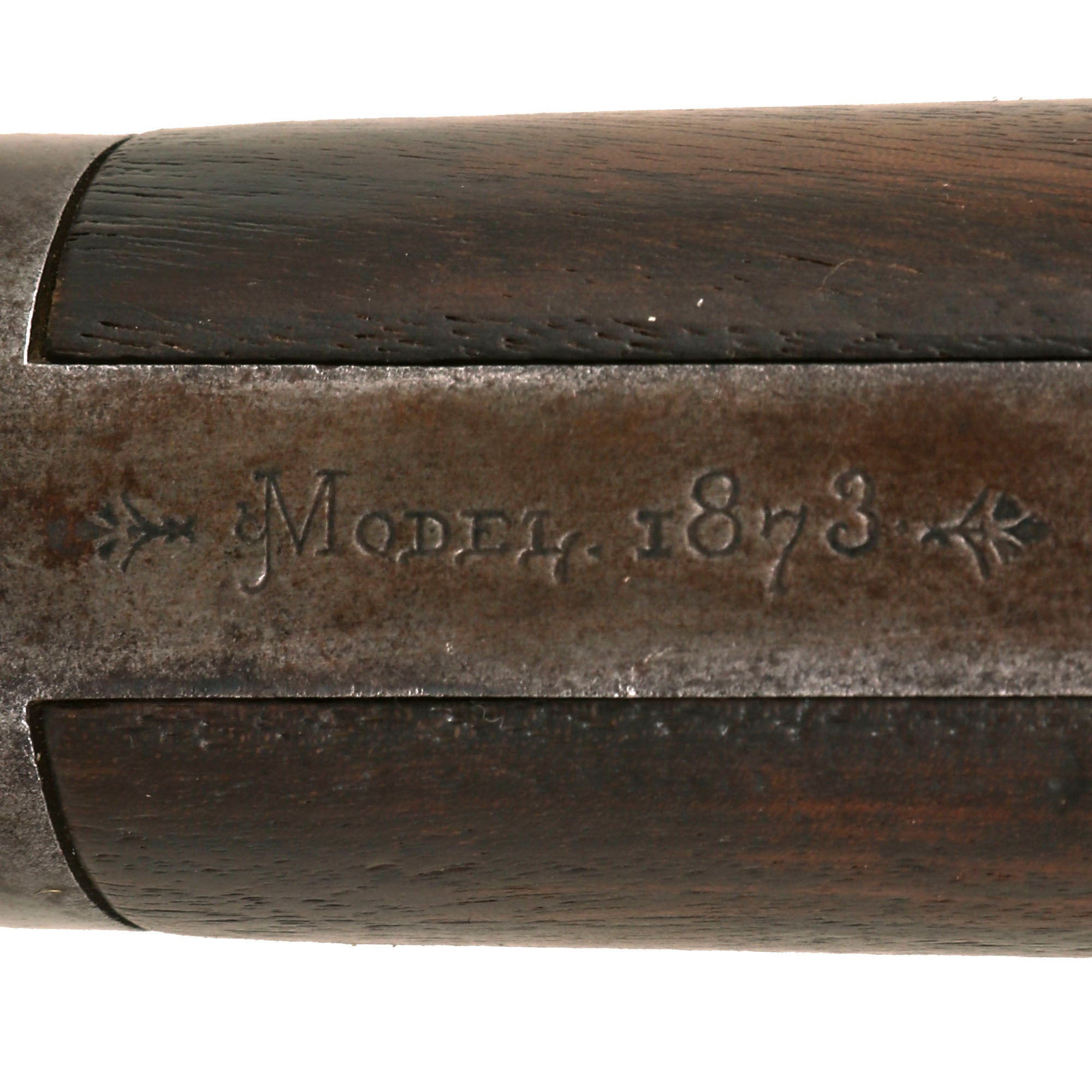 Original Item: Only One Available. "The Gun that Won the West!" This very nice "frontier worn" repeating rifle is in .32-20 Winchester caliber, correctly marked with 32 W.C.F. over the chamber and 32 CAL. on the brass carrier block. It features a desirable 24 inch octogonal barrel and full-length magazine tube. As with all examples, it is marked MODEL. 1873. on the upper receiver tang. Features a classic nickel blade front sight and iconic "Buckhorn" rear adjustable sight. The serial number is 290160B, denoting the year of manufacture as 1889. The engraving on the top of the barrel present and fully legible: