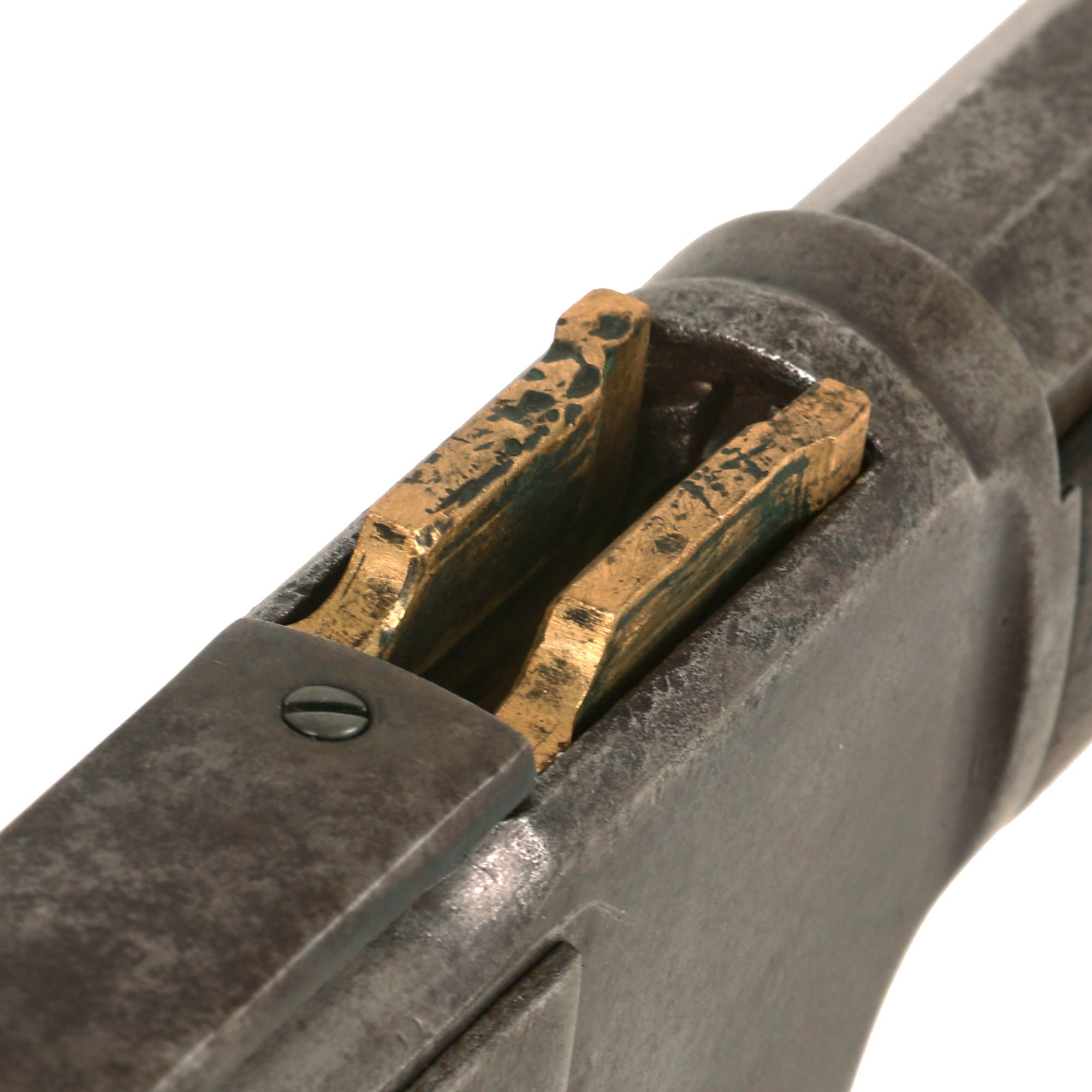 These antique guns are not sold in "live" condition, and are not tested for the the ability to feed or load any type of cartridge. They are sold as collector's items or as "wall hangers" not for use, and we make no guarantees regarding functionality aside from what is stated in the description. Any attempt at restoring an antique gun to be operational is strongly discouraged and is done so at the risk of the customer. By purchasing an antique gun from IMA you thereby release IMA, its employees and corporate officers from any and all liability associated with use of our Antique guns.