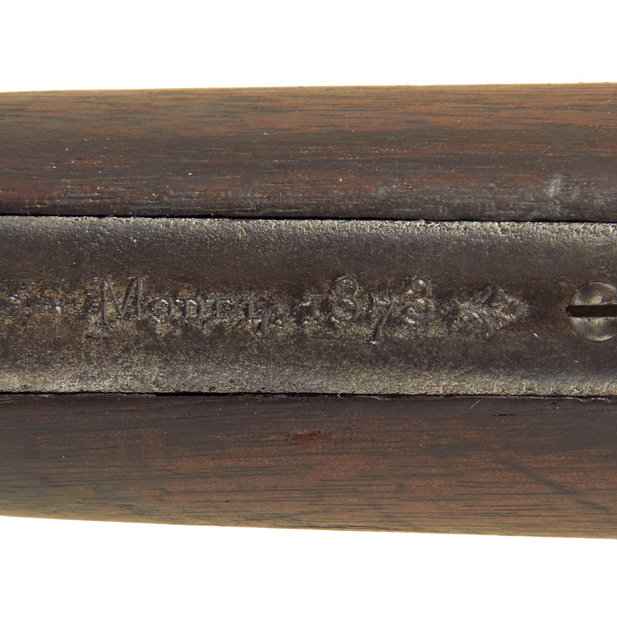 Original Item: Only One Available. "The Gun that Won the West!" This wonderful Winchester repeating rifle is in .38-40 caliber, correctly marked with 38 W.C.F. over the chamber and .38 CAL. on the brass carrier block. It features a desirable 24" octagonal barrel and full-length magazine tube. As with all examples, it is marked MODEL. 1873. on the upper receiver tang. Features the classic front sight and iconic "buckhorn" rear adjustable sight. The serial number is 326461B denotes the year of manufacture as 1890. The engraving on the top of the barrel present and legible: