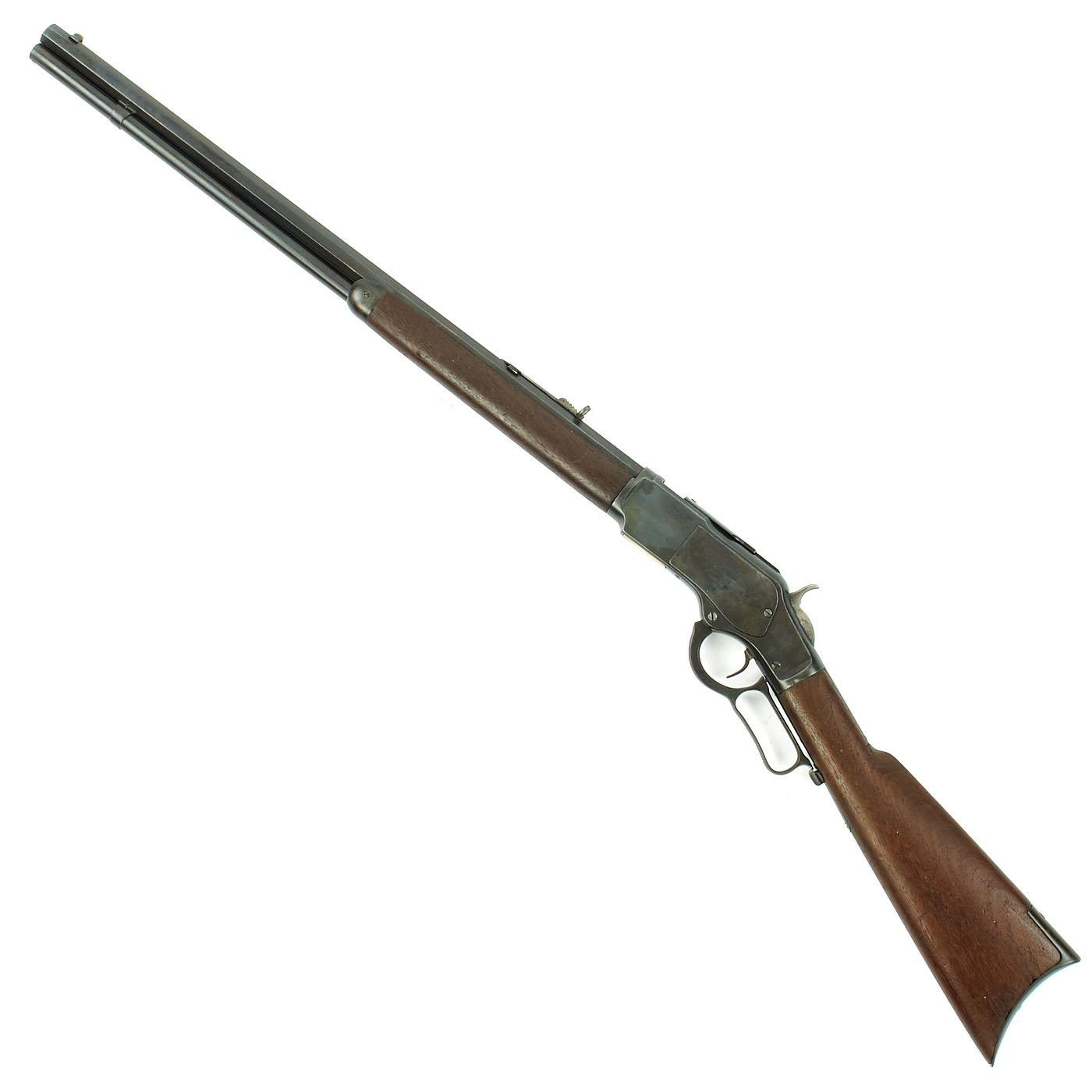 The Model 1873 was one of the most successful Winchester rifles of its day, gaining the reputation as "The Gun that Won the West". Still an icon almost a century and a half later, it was manufactured between 1873 and 1919. Originally chambered for the .44-40 cartridge, it was later produced in .38-40 and .32-20, all of which were also popular handgun cartridges of the day, allowing users to conveniently carry just one type of ammunition. The Model 1873 was produced in three variations: a 24" barrel rifle, 20" barrel carbine, and a musket. The easy to transport and handle carbine was the most popular, while the musket accounted for less than 5-10 percent of total production.