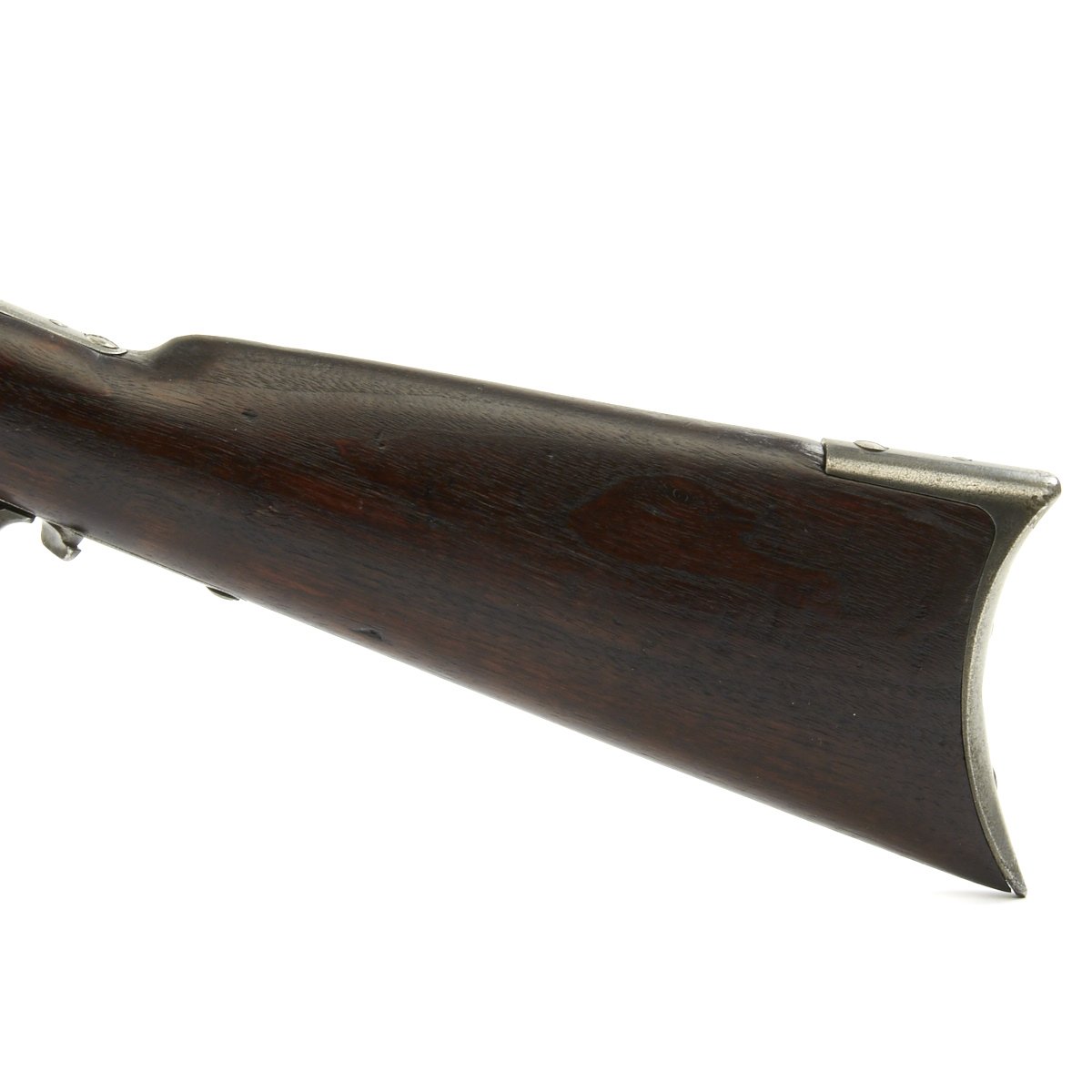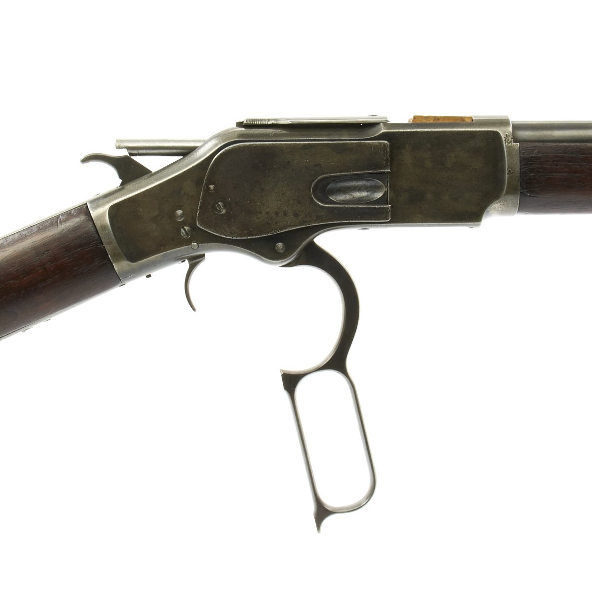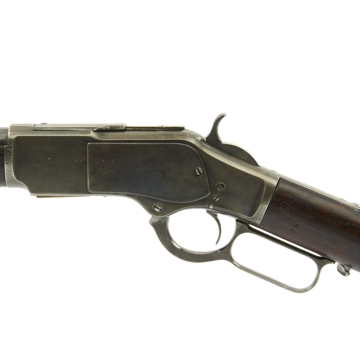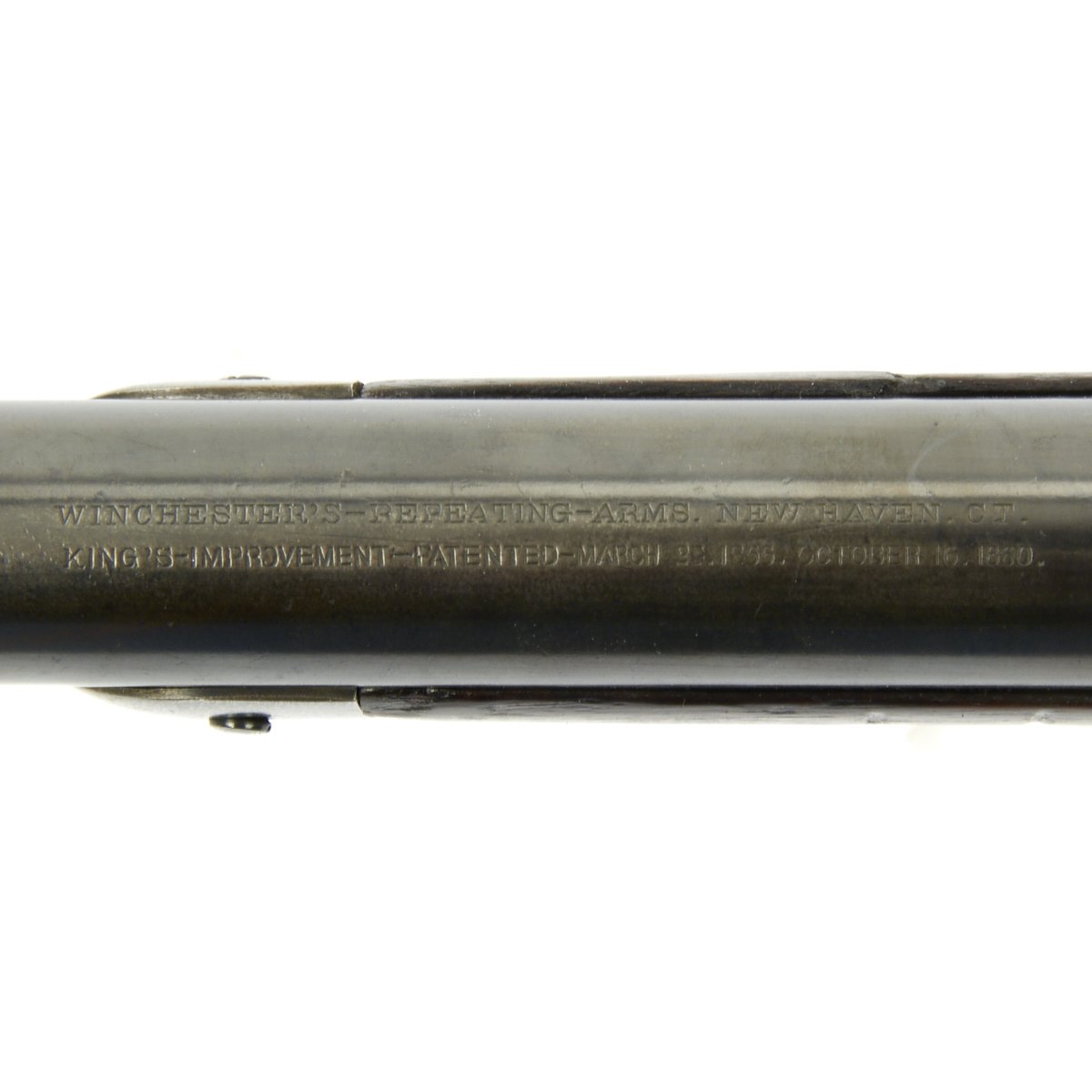 Original Item: "The Gun that Won the West!" This fine rifle is in .38-40 caliber with a 24" round barrel and full-length magazine tube. Features the classic front sight and "semi-buckhorn" rear adjustable sight. The serial number is 72423 denoting the year of manufacture as 1881, so this is an early production gun. The engraving on the top of the barrel is clear, without just a bit of fading:
