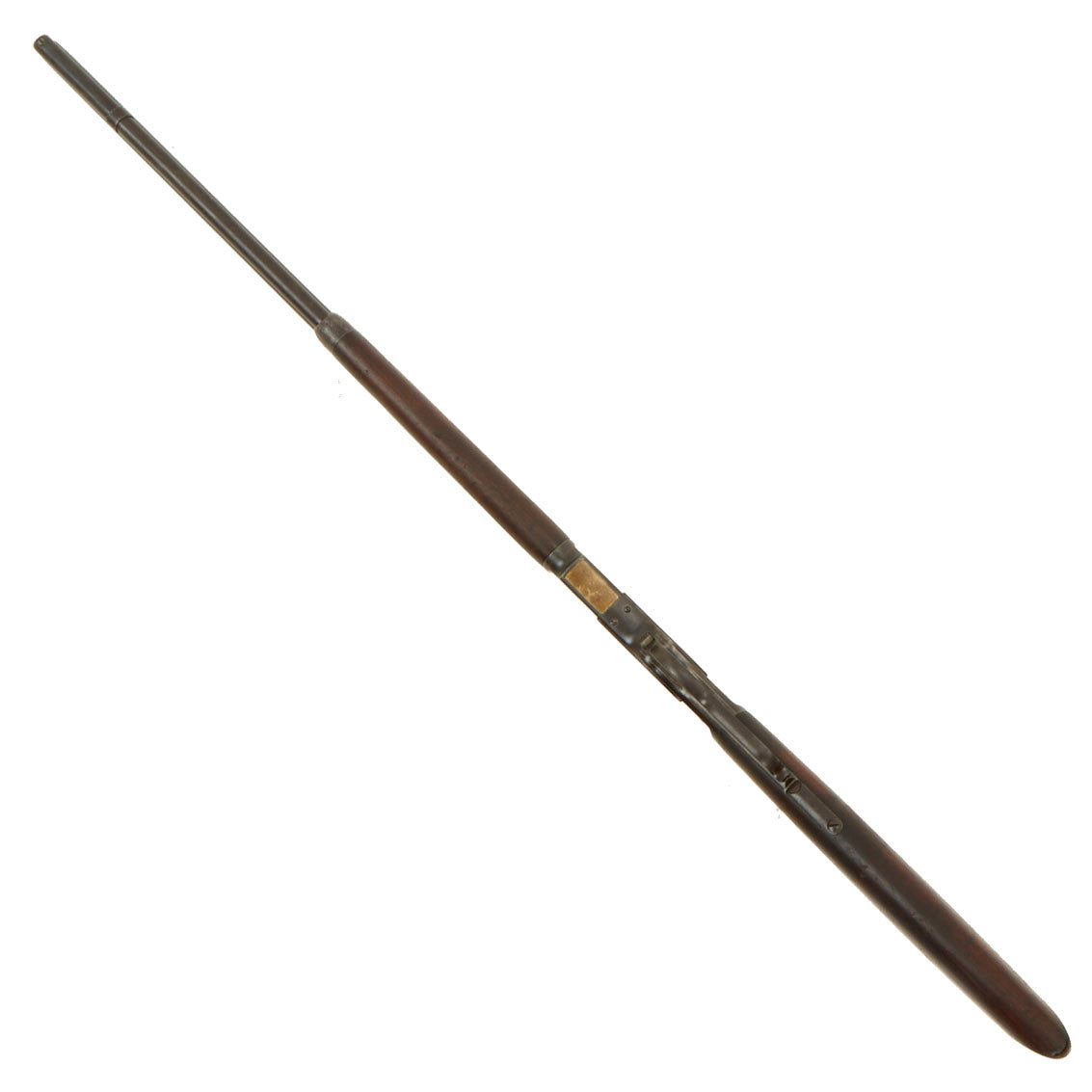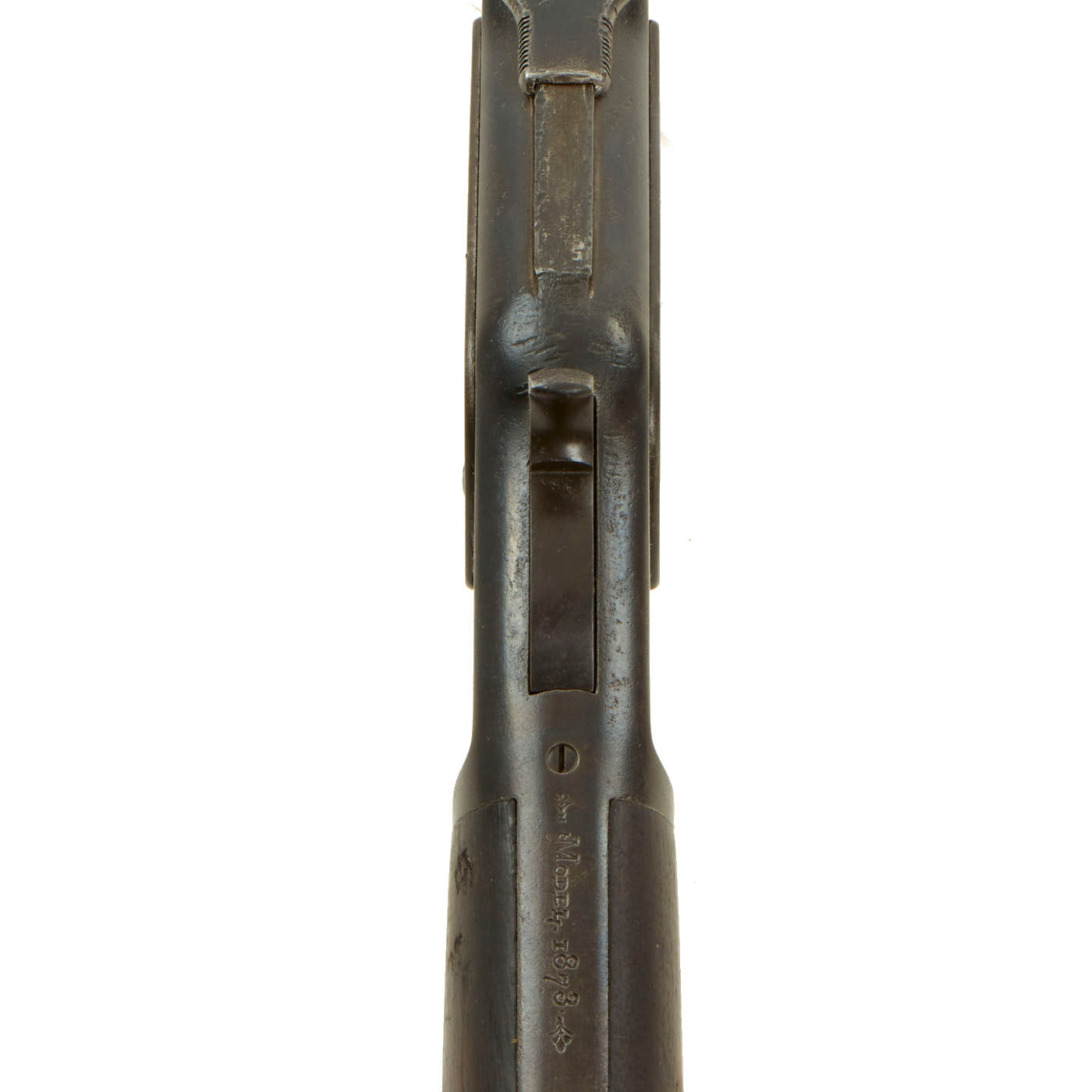 These antique guns are not sold in "live" condition, and are not tested for the the ability to feed or load any type of cartridge. They are sold as collector's items or as "wall hangers" not for use, and we make no guarantees regarding functionality aside from what is stated in the description. Any attempt at restoring an antique gun to be operational is strongly discouraged and is done so at the risk of the customer. By purchasing an antique gun from IMA you thereby release IMA, its employees and corporate officers from any and all liability associated with use of our Antique guns.