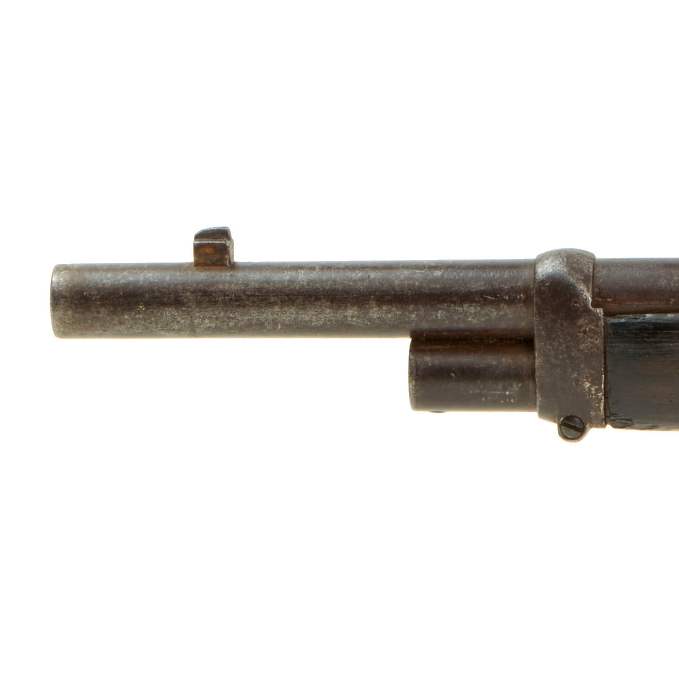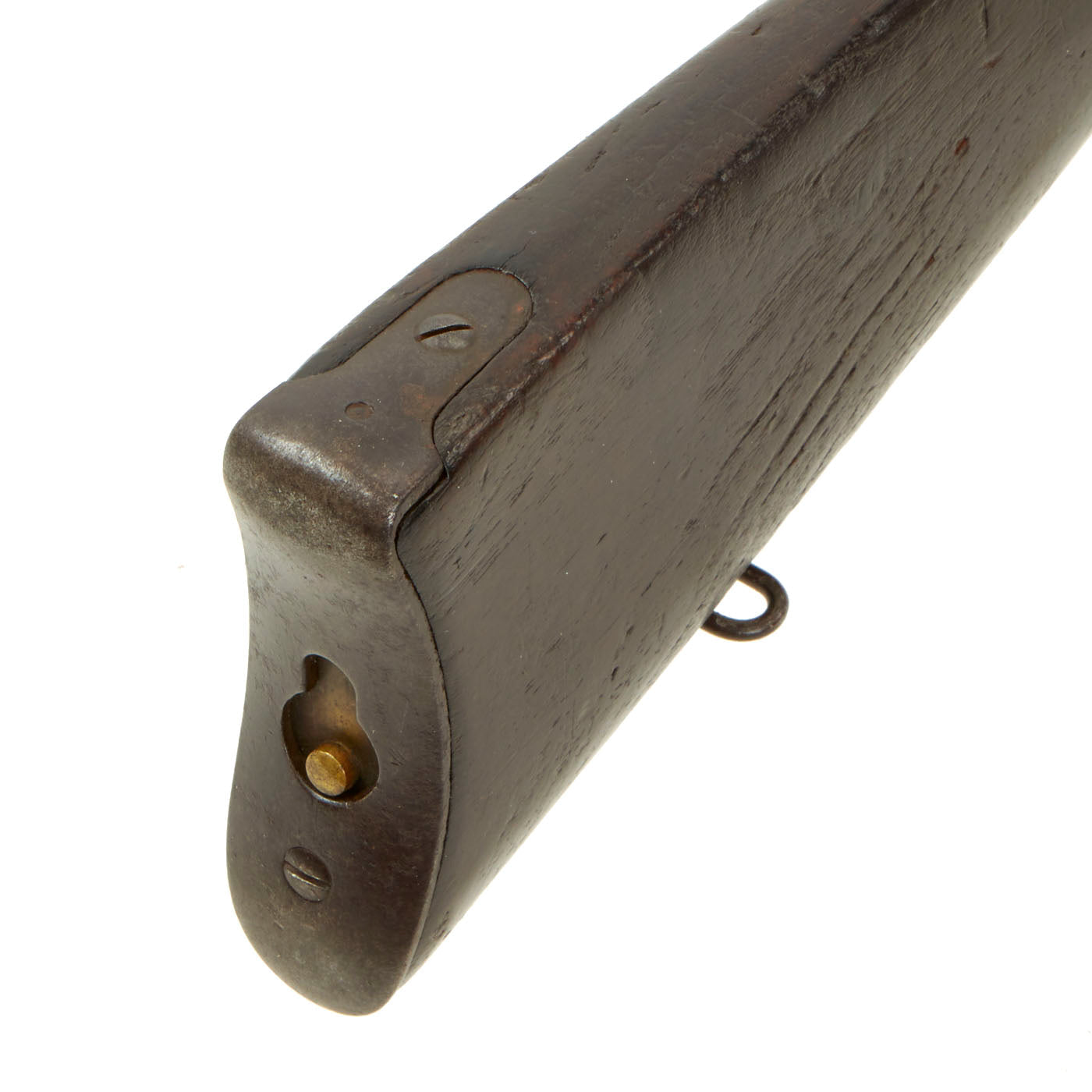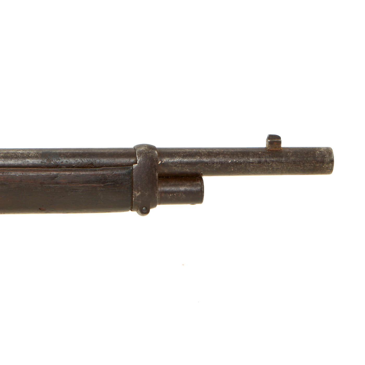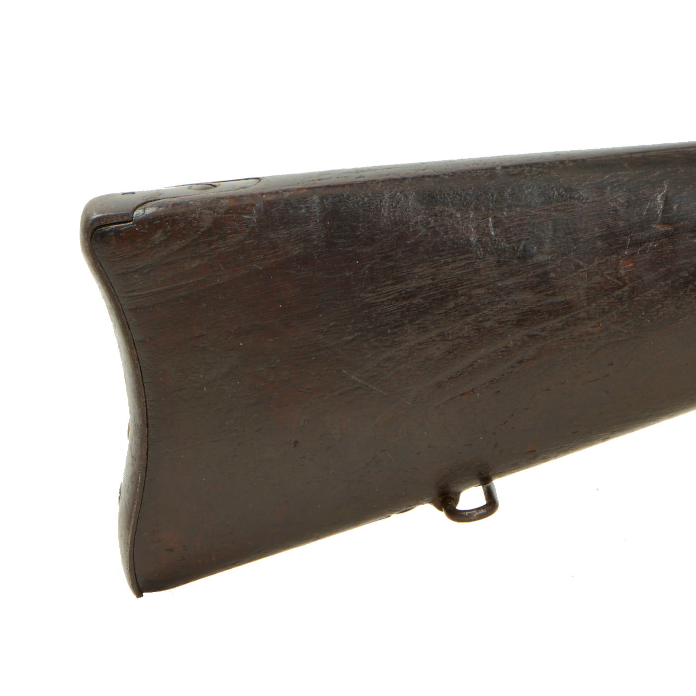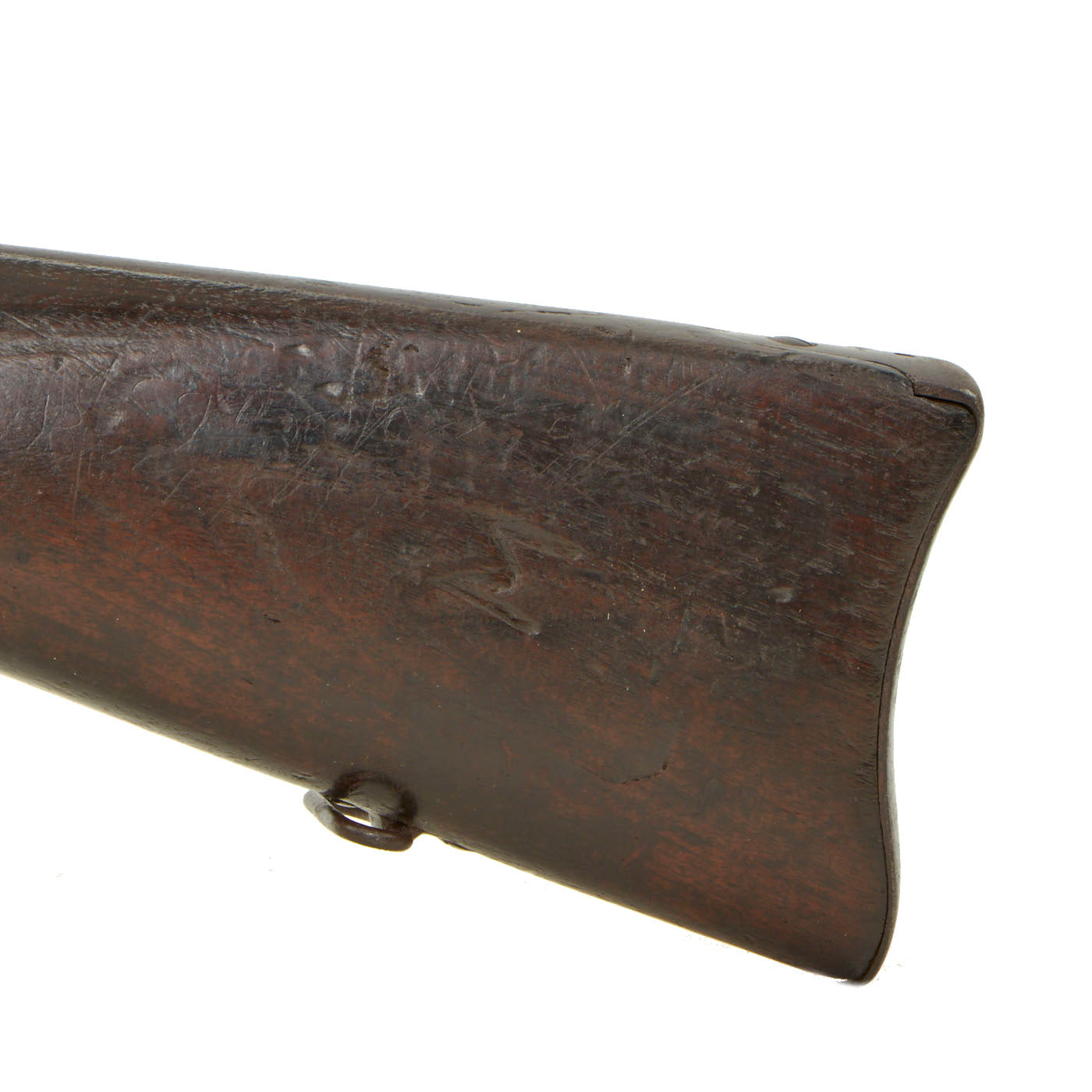 Offered with a crisp tight action in fully functional condition with the original tight fitting dust cover. Metal work is good, with a lovely worn gray patina and light peppering, though there is some pitting at and under the woodline of the fore stock. Bore is in excellent condition, with crisp lands and grooves and a bright finish, with little sign of ever having been fired. Stocks are in good condition, with just a few scratches and dents on the wood, but nothing major, and a great worn look.