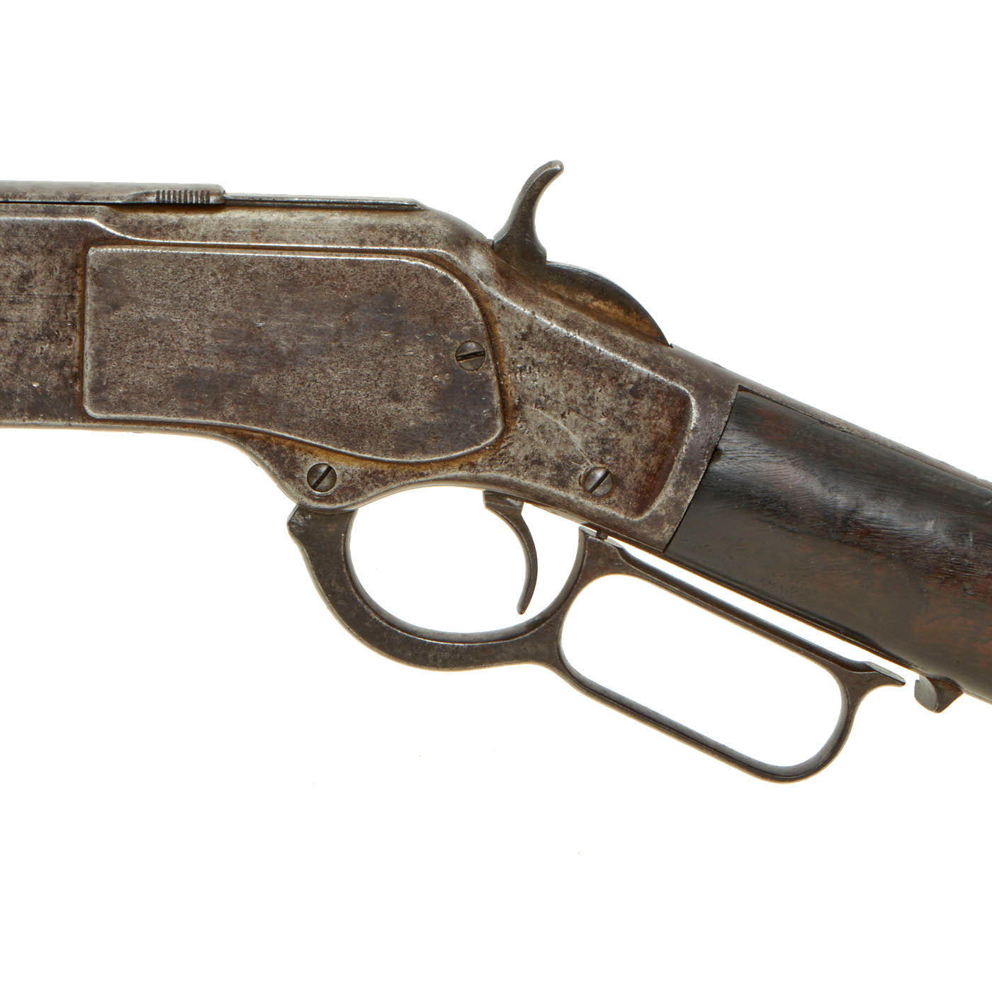 Original Item: Only One Available. "The Gun that Won the West!" Another item that we have rarely offered previously. This is a very fine example of the very RARE Winchester model 1873 Military "Musket" in .44-40 caliber, marked 44 CAL. on the chamber (faint) and ejector block. It features a 30" round barrel and full-length 17 round capacity magazine tube. This model represented only 5-10% of total production, and was geared towards military contracts, which sadly did not pan out like they had hoped.