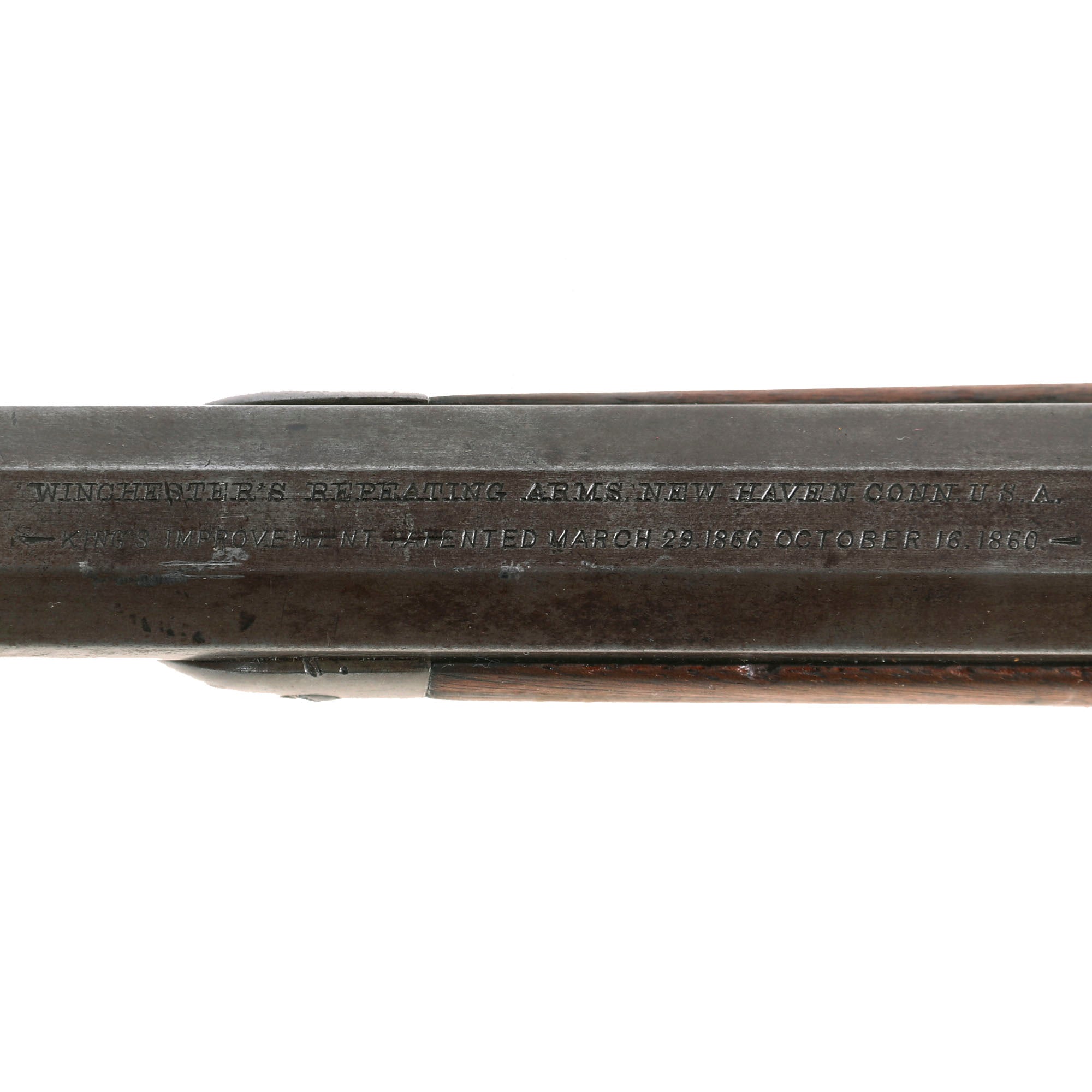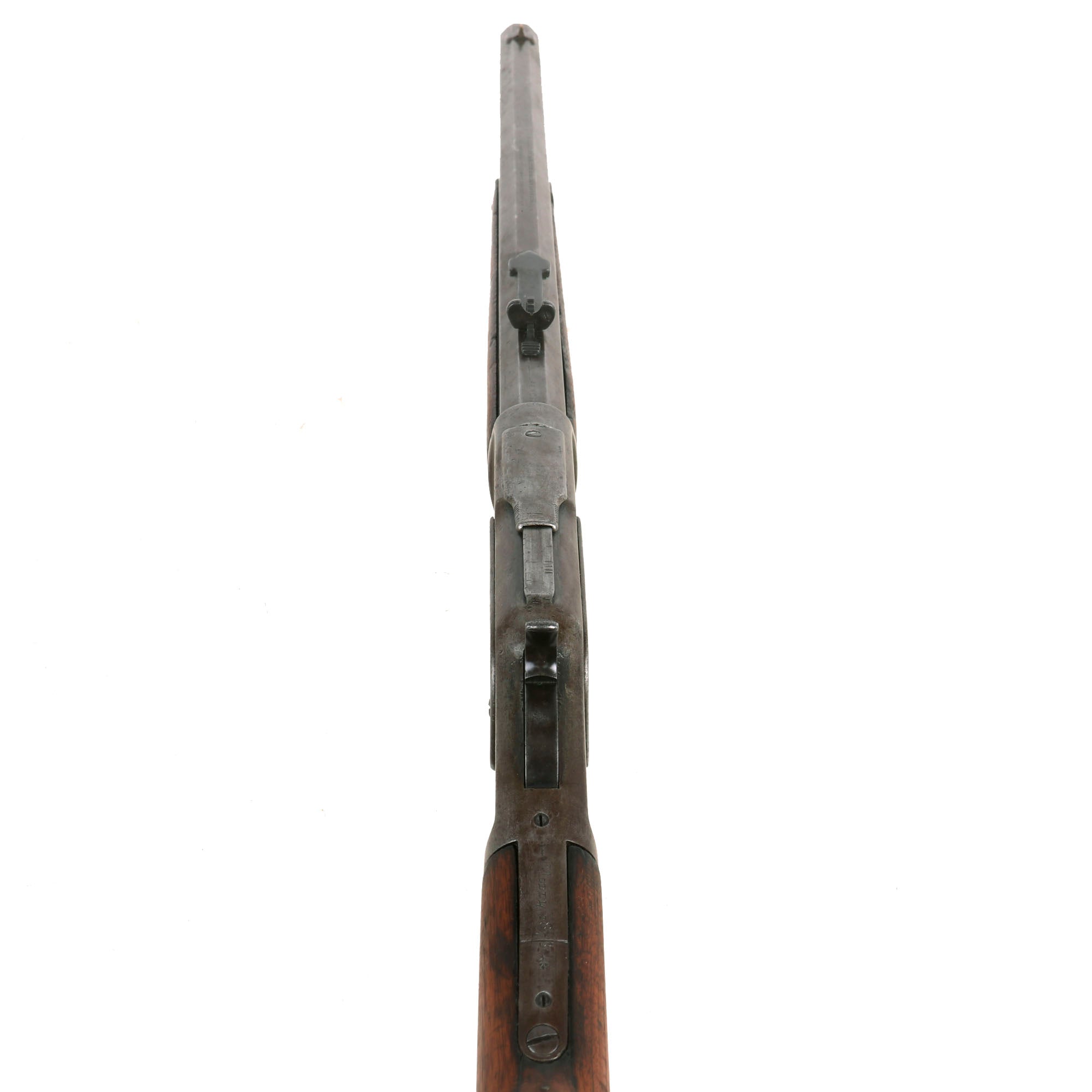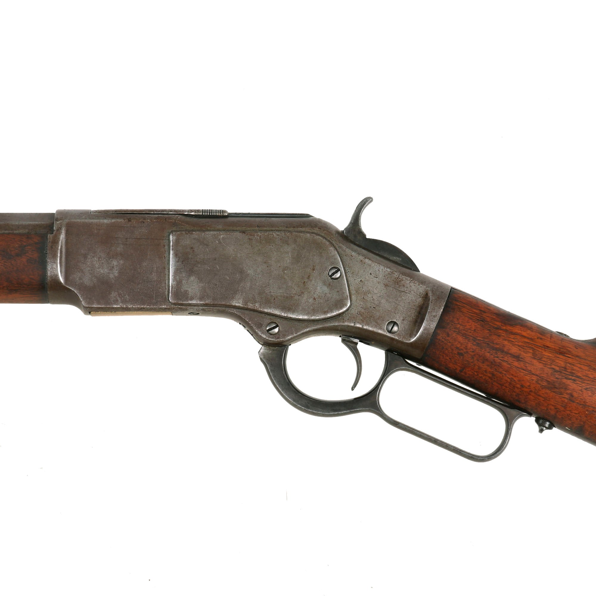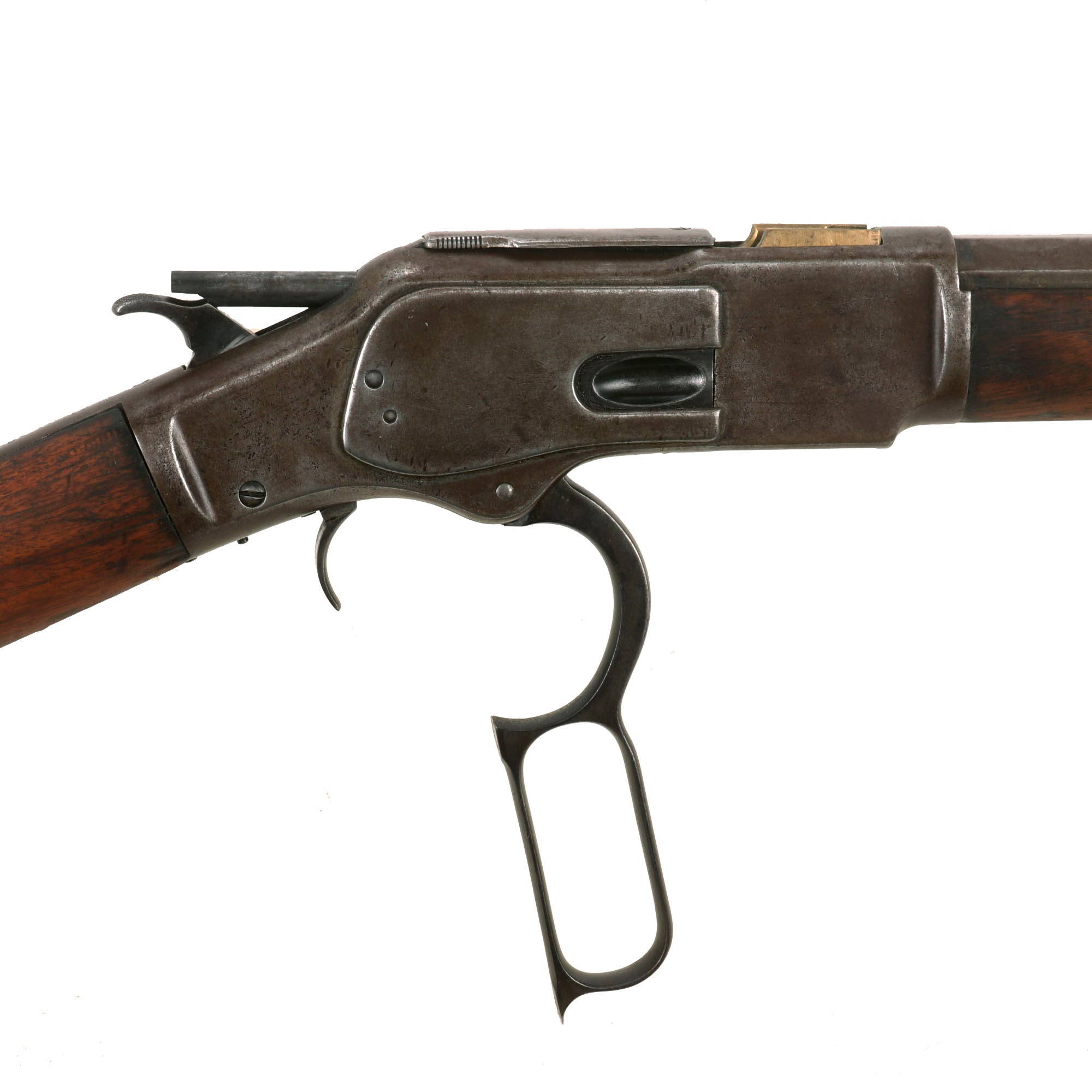 Original Item: Only One Available. "The Gun that Won the West!" This wonderful honest used Winchester repeating rifle is in .44-40 caliber, correctly marked with 44 W.C.F. over the chamber, while the brass carrier block marking is worn away. It features a short 18" octagonal barrel and full-length magazine tube, which we assume was shortened from the original 24". It is however always possible that it was a special order, as the butt stock also does not have any storage compartment. Definitely some great research potential!