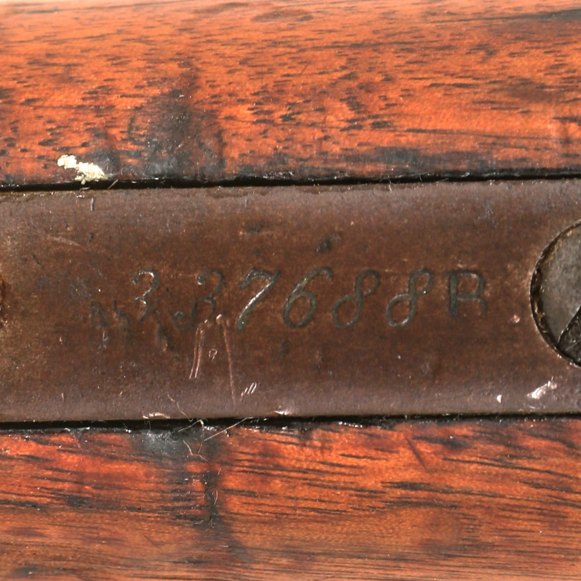 As with all examples, it is marked MODEL. 1873. on the upper receiver tang. Features the classic front brass blade sight and iconic "buckhorn" rear adjustable sight. The serial number is 337688B denotes the year of manufacture as 1890. The address and patent markings on the top of the barrel are still fully legible: