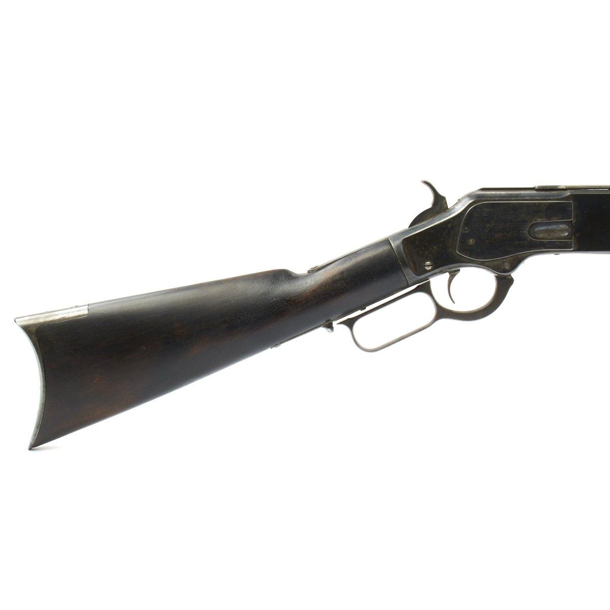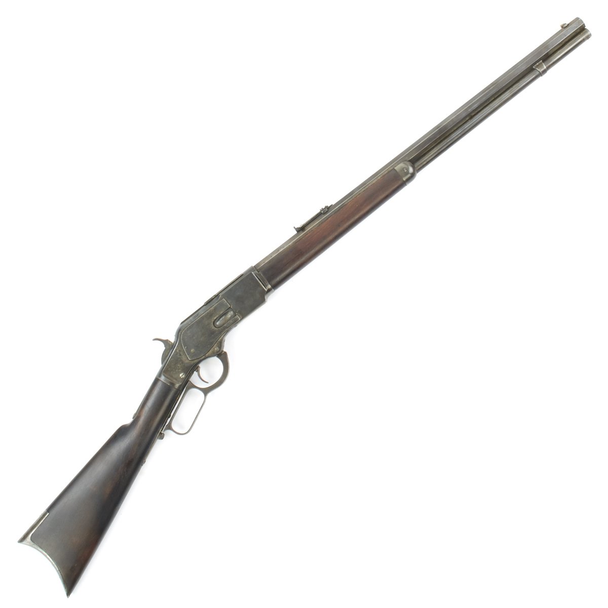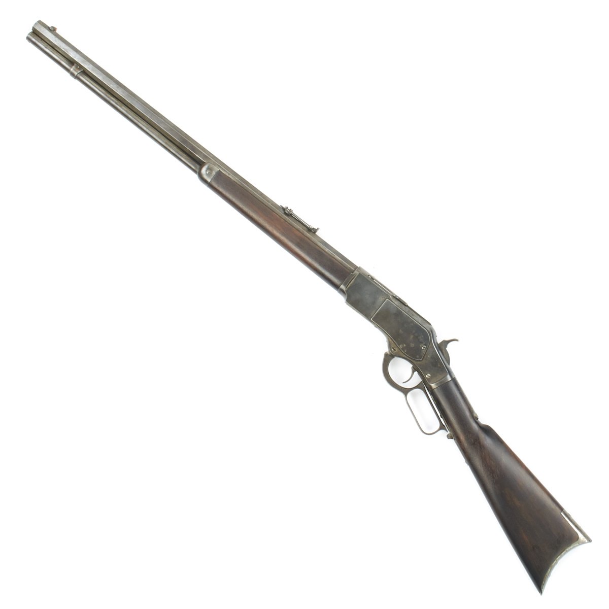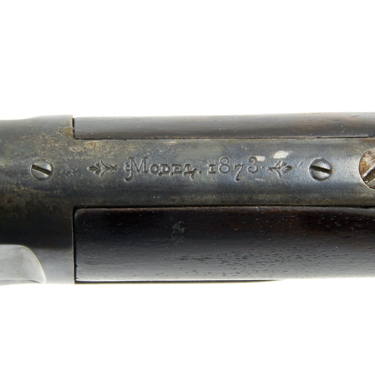 Original Item: Only One Available. "The Gun that Won the West!" This very fine rifle is in .44-40 caliber with a 24" octagonal barrel and full-length magazine tube. Features the classic front sight and an 1873 marked rear ladder sight, the first we have encountered. The serial number is 125749A denoting the year of manufacture as 1883. The engraving on top of the barrel is mostly clear:
