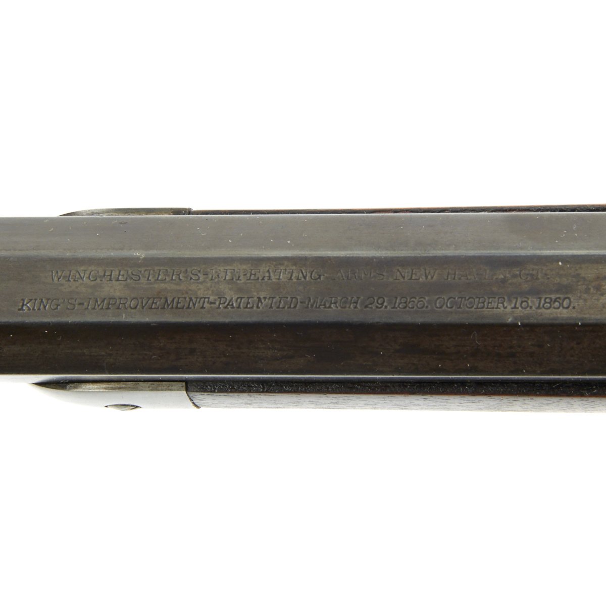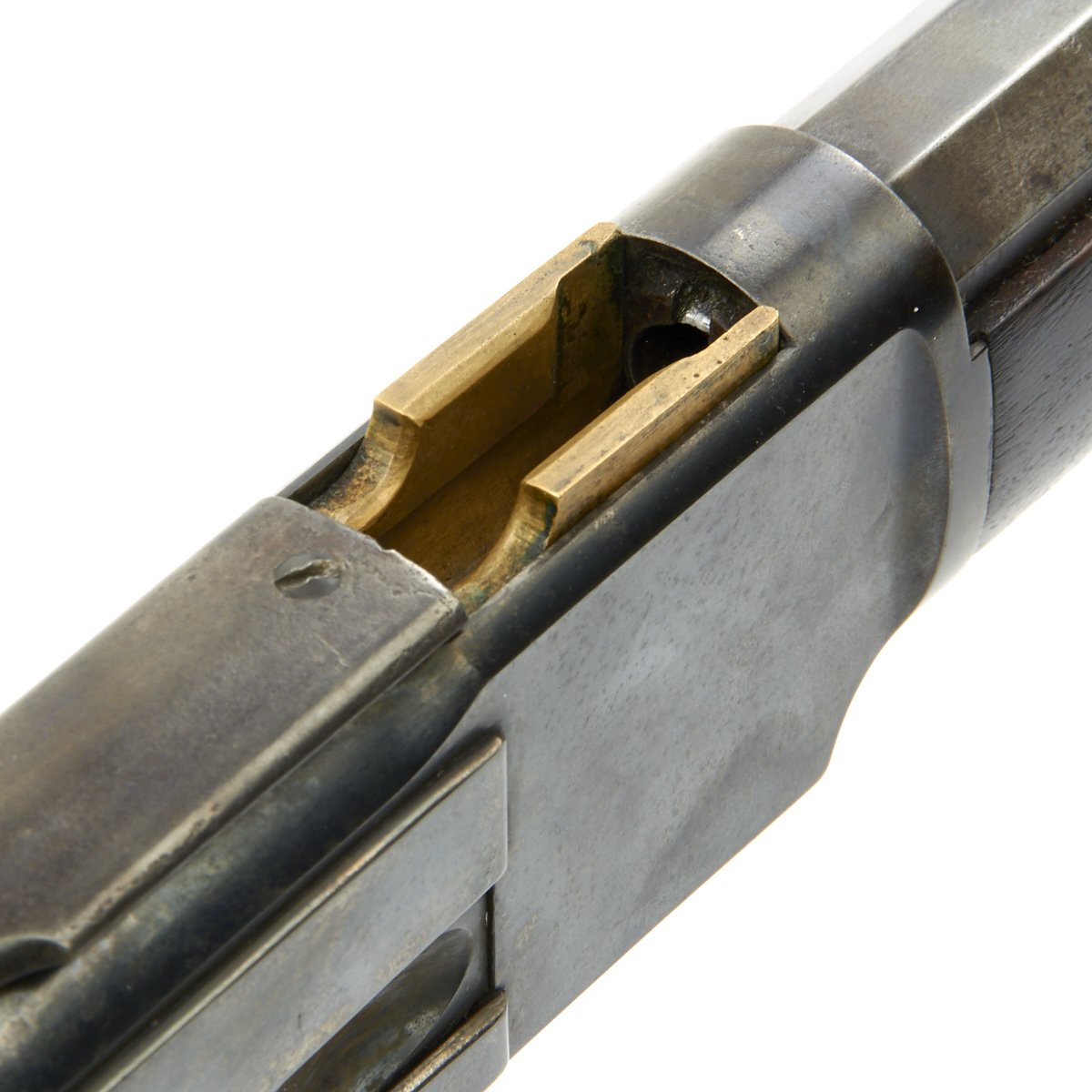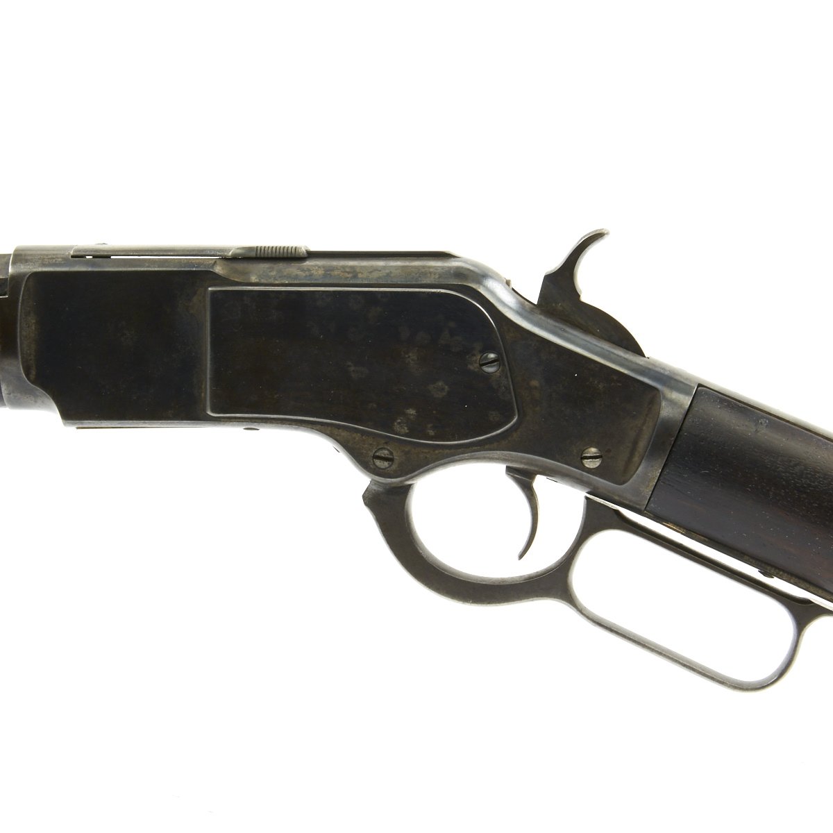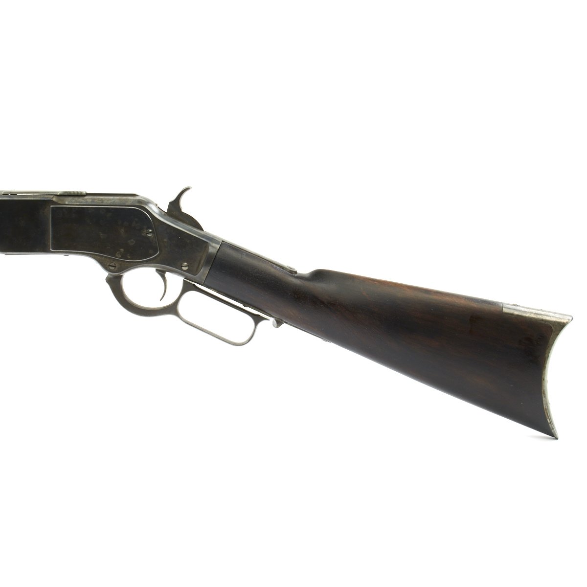 Original Item: Only One Available. "The Gun that Won the West!" This very fine rifle is in .44-40 caliber with a 24" octagonal barrel and full-length magazine tube. Features the classic front sight and an 1873 marked rear ladder sight, the first we have encountered. The serial number is 125749A denoting the year of manufacture as 1883. The engraving on top of the barrel is mostly clear:
