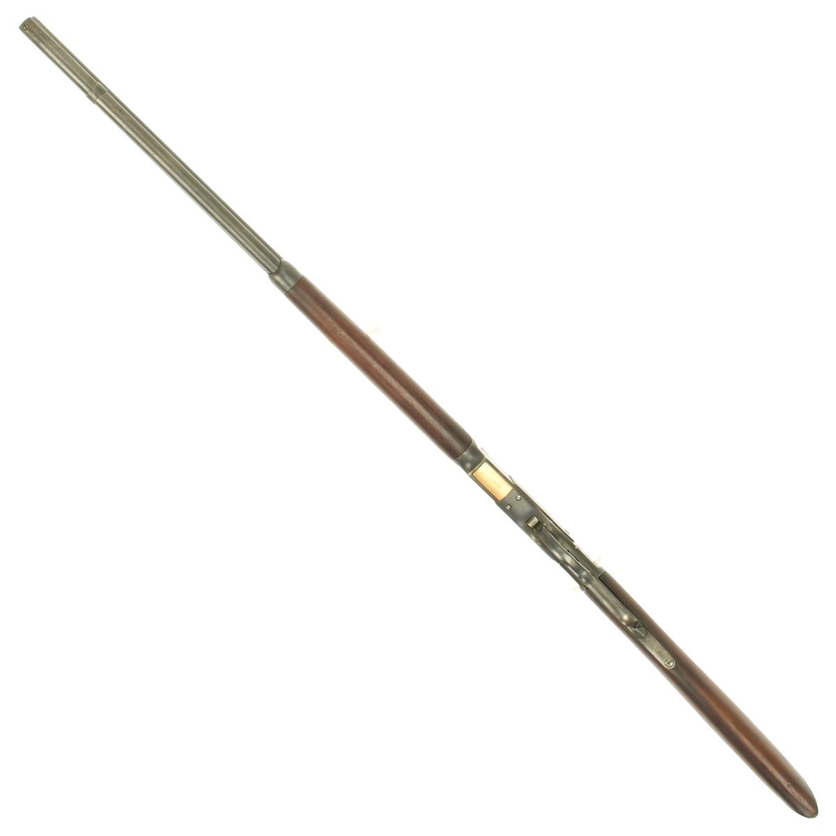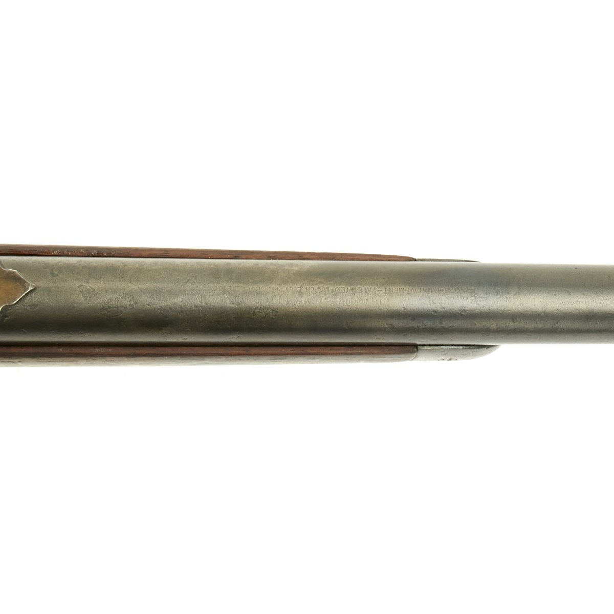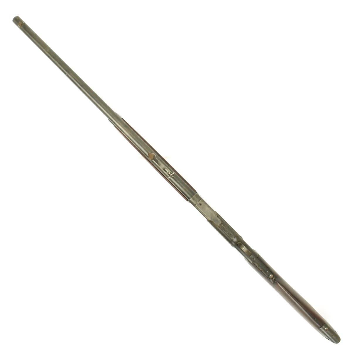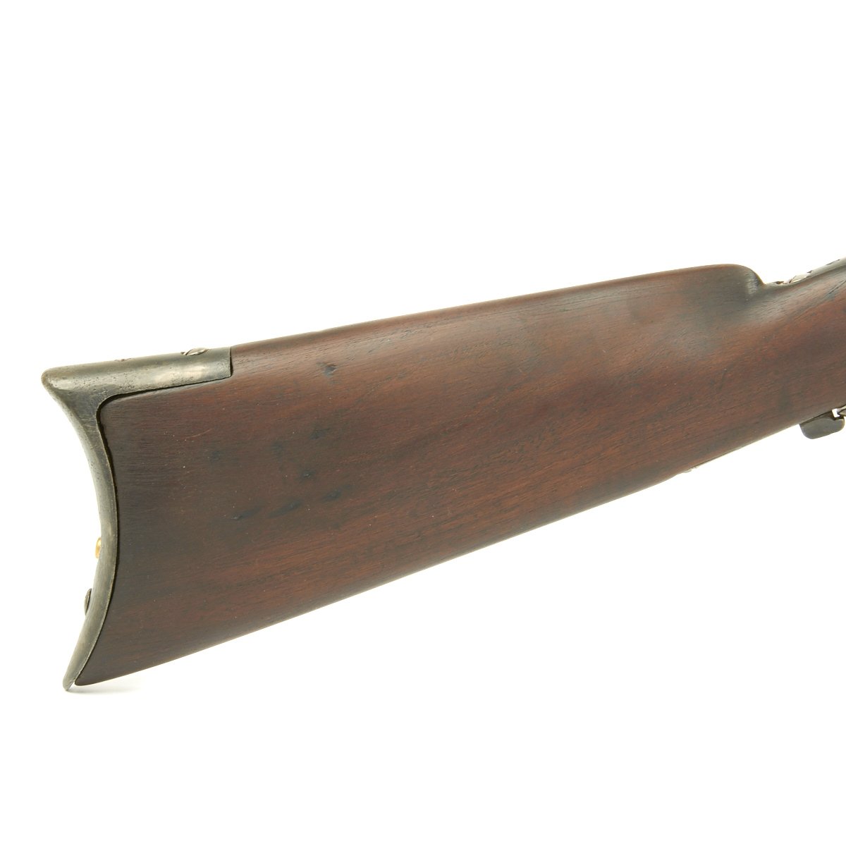 Dark walnut stock is great condition with a few minor dings, the wood is very attractive stable and strong. Barrel and action retain much original brown/blue finish, though there are traces of old pitting. Features a crescent butt and buckhorn sight. The rifle is in overall very nice condition. Very crisp tight action in fully functional condition with the original dust cover, though dust cover dovetail is worn from use. Bore has clear lands and grooves, though is dark towards the muzzle end of the barrel.