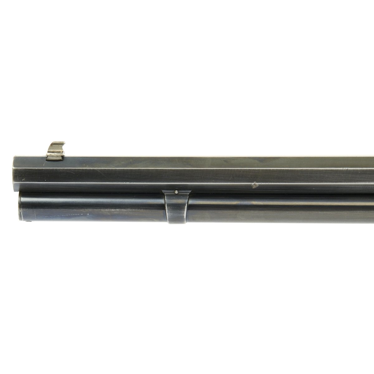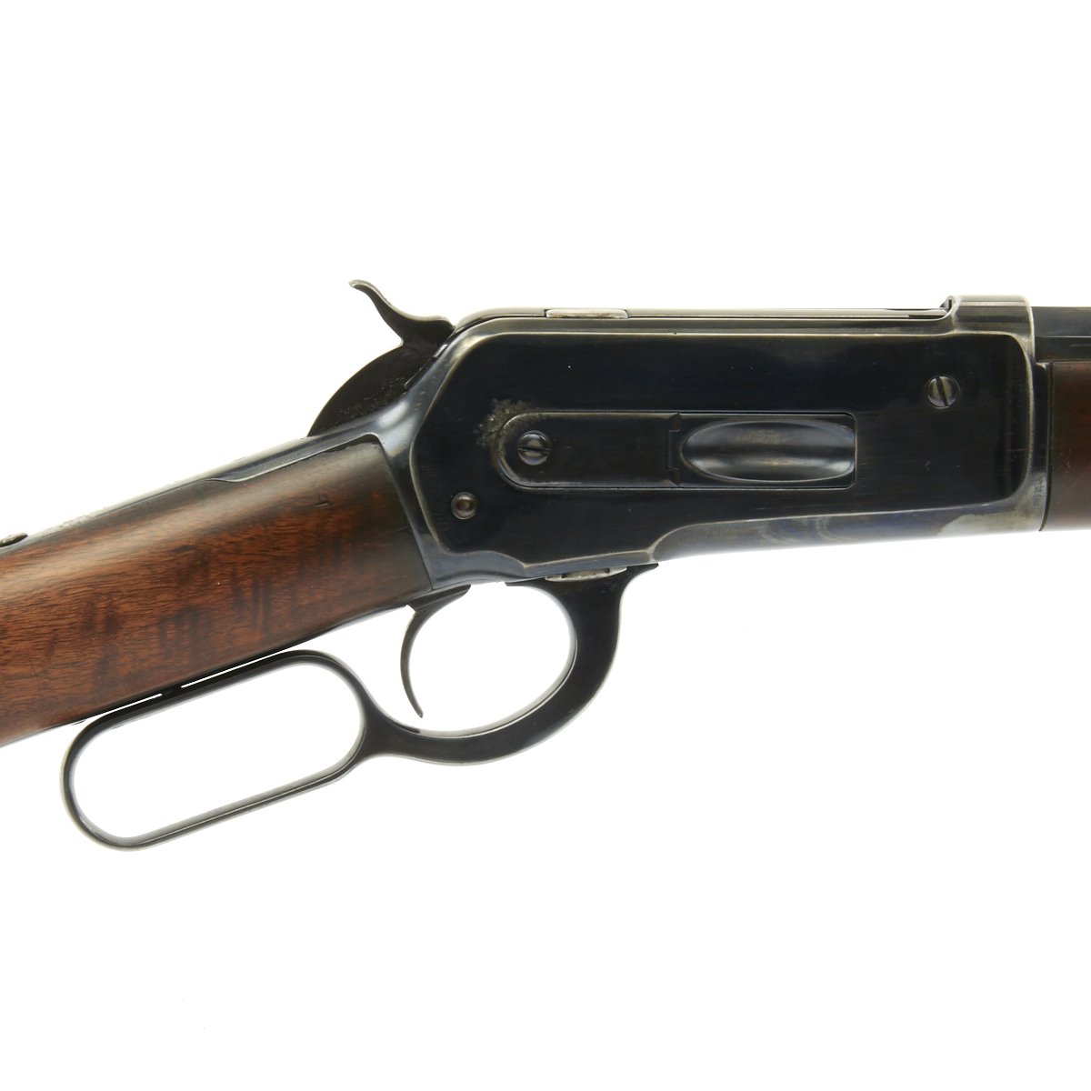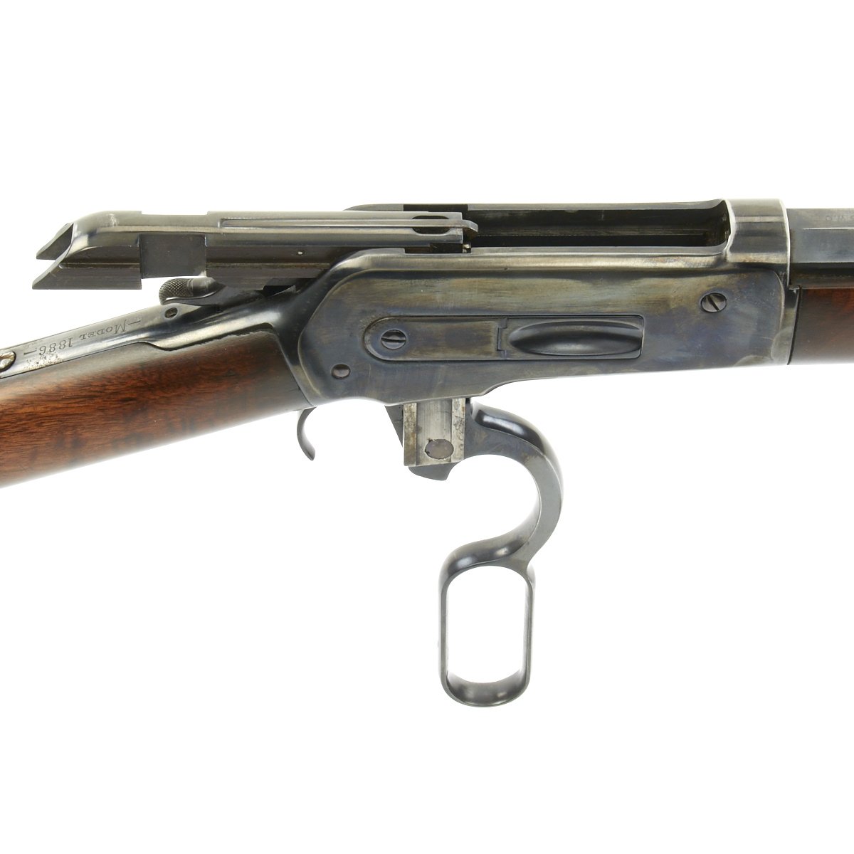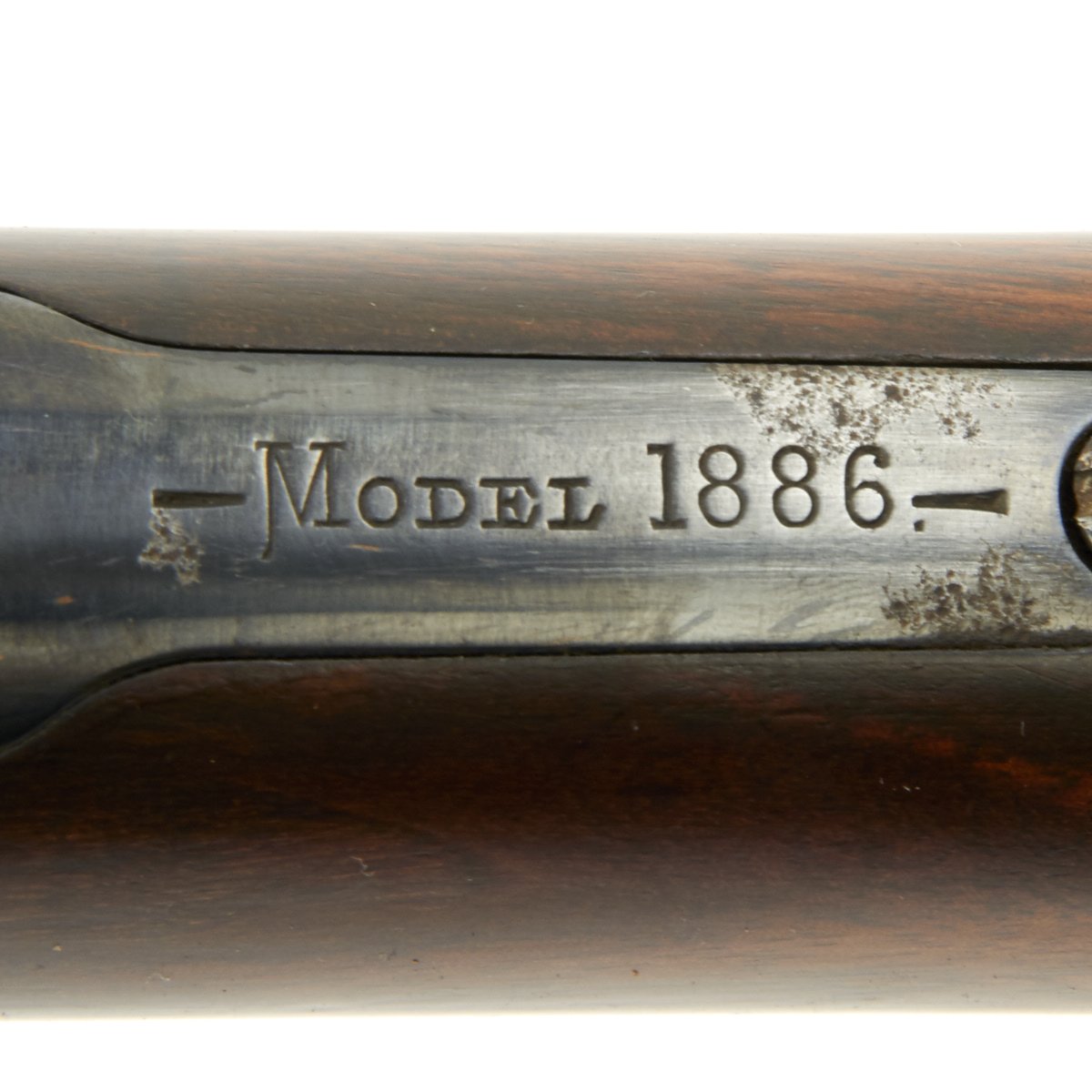This 1886 has John Browning's OCT. 14. 1884 and JAN. 20. 1885 patent dates stamped on the lower receiver tang. The upper tang simply marked MODEL 1886, and is currently underneath the base of the rear sight.