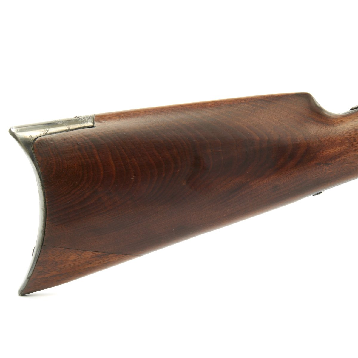 This example is offered with a crisp tight action in fully functional condition. Metal work is very good, still retaining much of the factory blued finish, with a great worn patina. Barrel markings are fully legible. The bore is quite nice, with clear lands and grooves, with a mostly bright finish. There is is a bit of wear, but nothing major. Probably 8-9 out of 10.