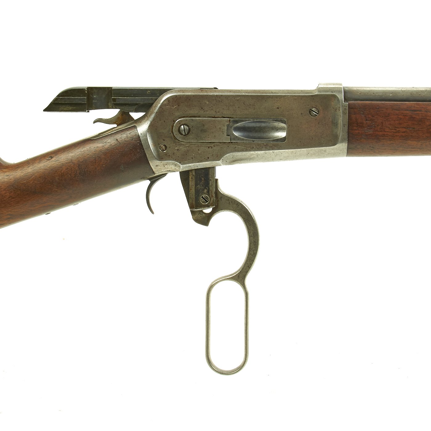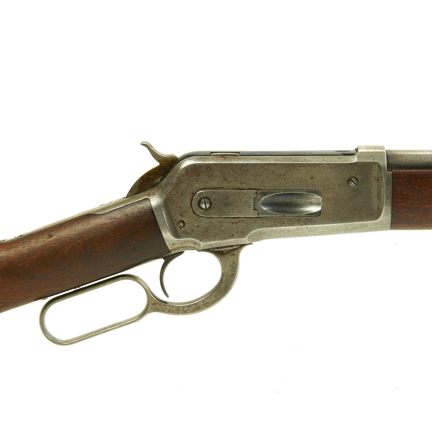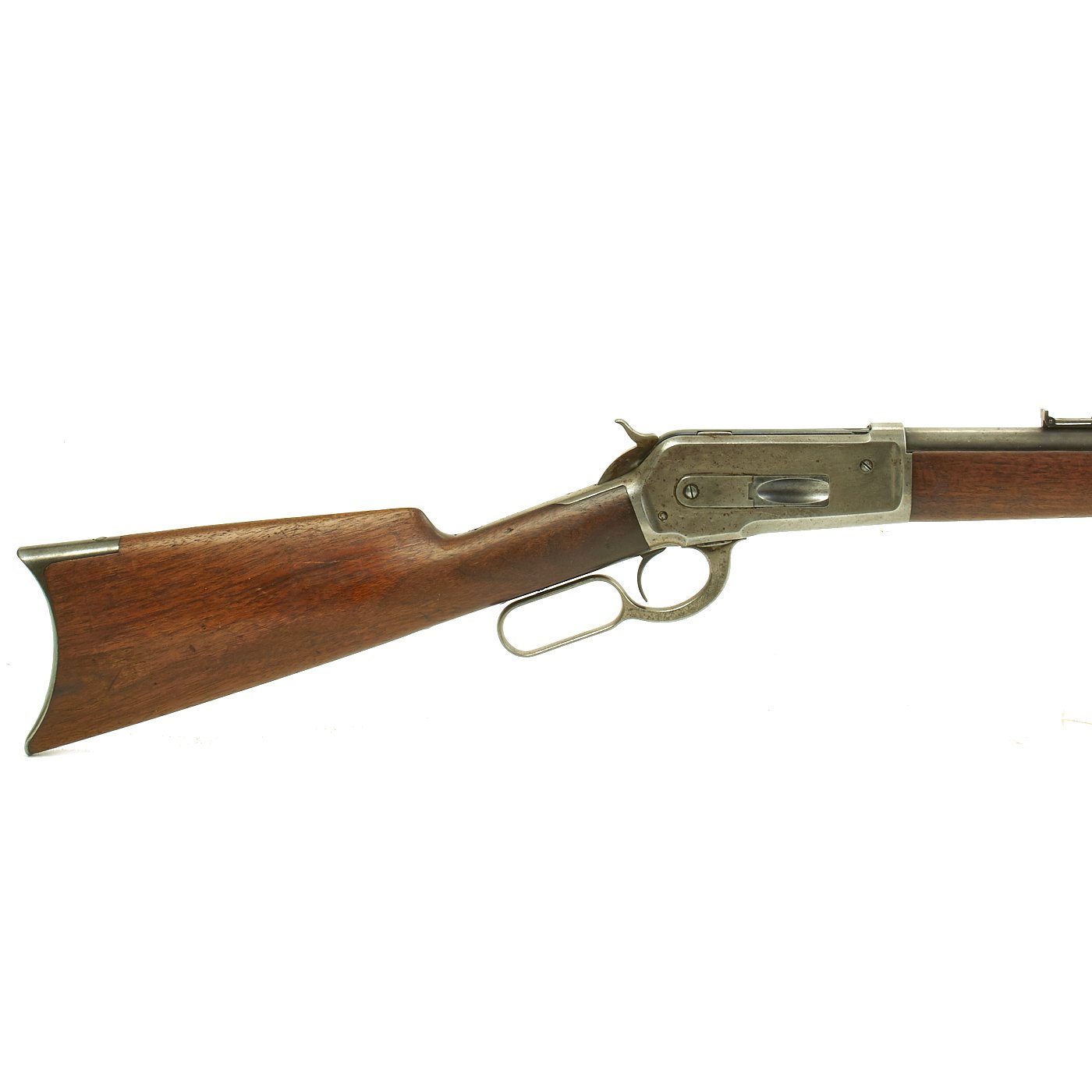 Original Item: Only One Available. This pretty much is the Cadillac of late 19th century big game hunting rifles! Many consider the Winchester 1886 to be the finest lever action repeating rifle ever made! This very fine example is in .45-70 Government caliber (marked 45 - 70 over the chamber) with a long 26" octagonal barrel, and full length magazine tube. It has the classic Winchester "blade" front sight, and the rear sight is a "flip up" adjustable ladder sight. The serial number on the lower receiver tang is 75015 denoting the year of manufacture as 1893.