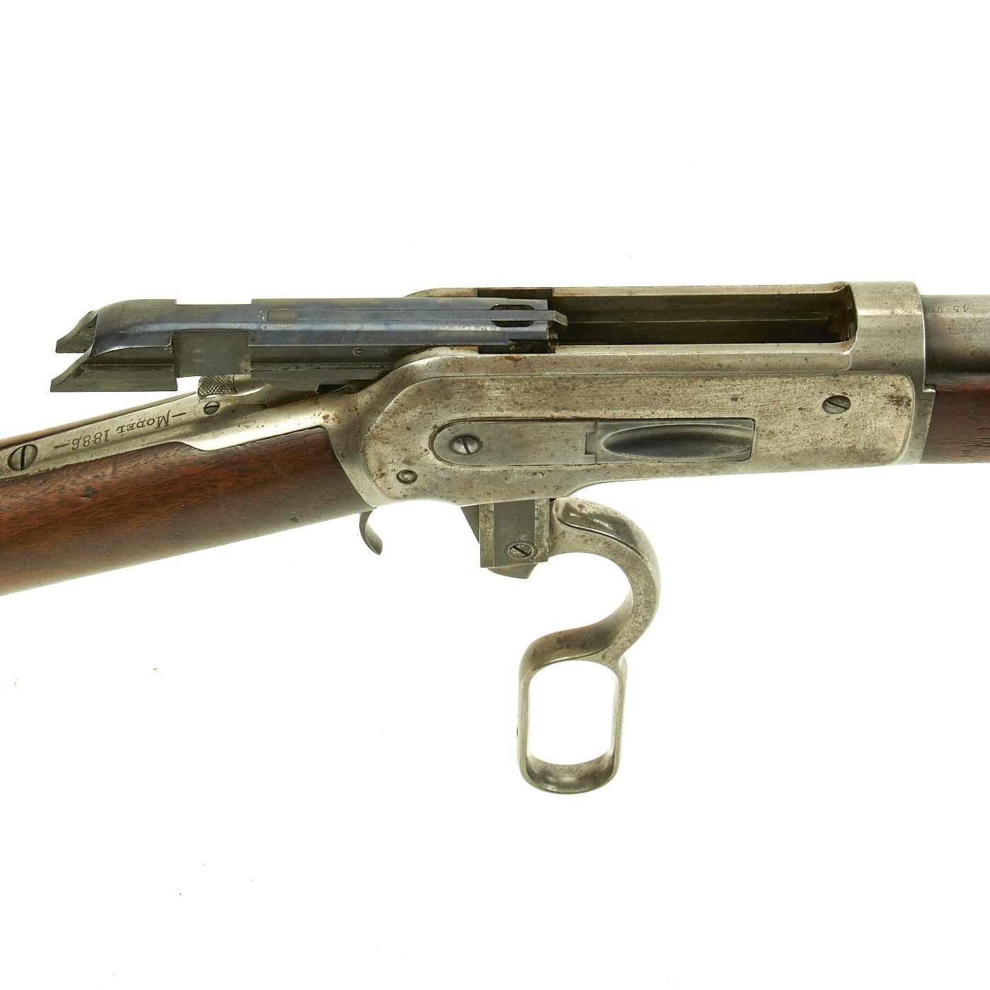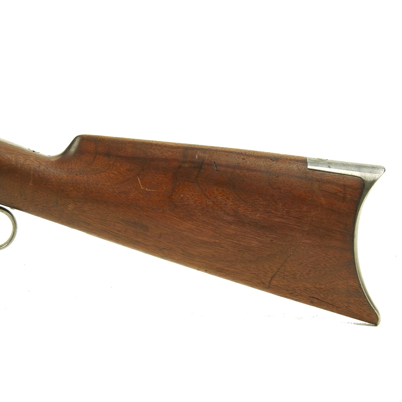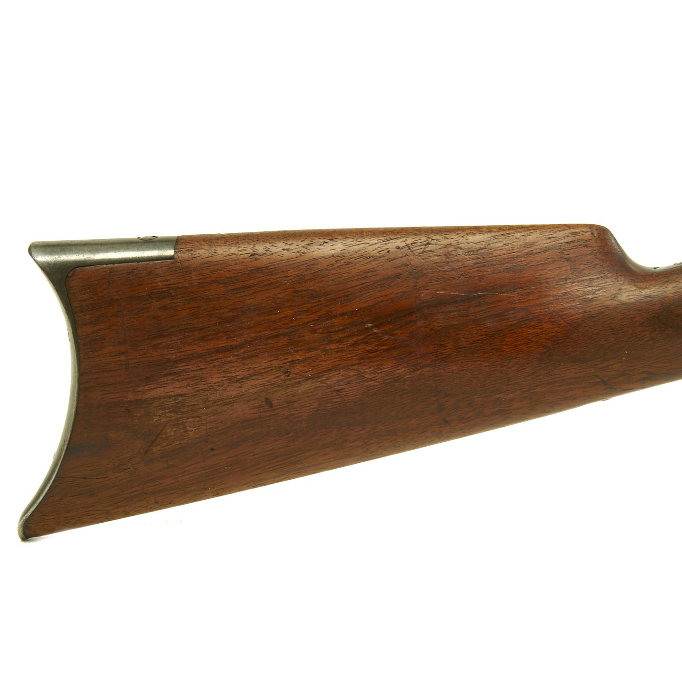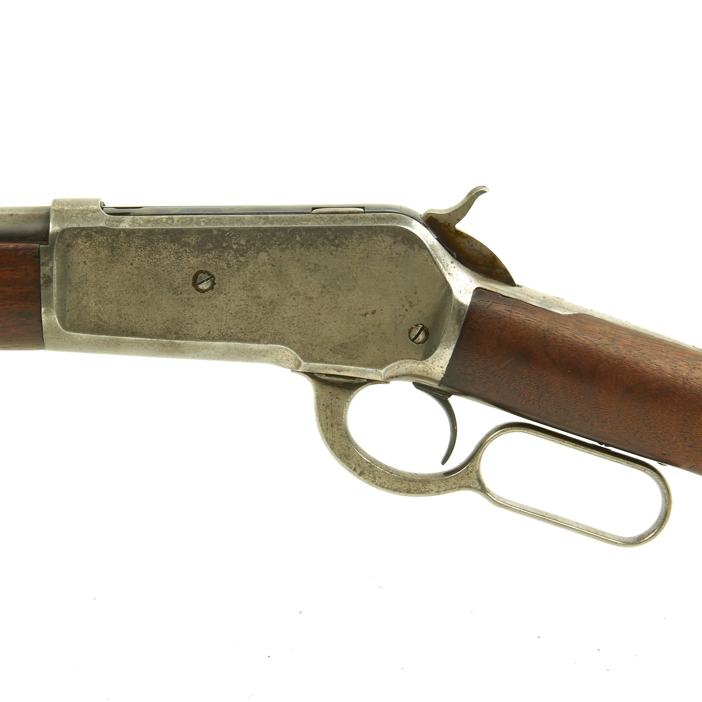 Original Item: Only One Available. This pretty much is the Cadillac of late 19th century big game hunting rifles! Many consider the Winchester 1886 to be the finest lever action repeating rifle ever made! This very fine example is in .45-70 Government caliber (marked 45 - 70 over the chamber) with a long 26" octagonal barrel, and full length magazine tube. It has the classic Winchester "blade" front sight, and the rear sight is a "flip up" adjustable ladder sight. The serial number on the lower receiver tang is 75015 denoting the year of manufacture as 1893.